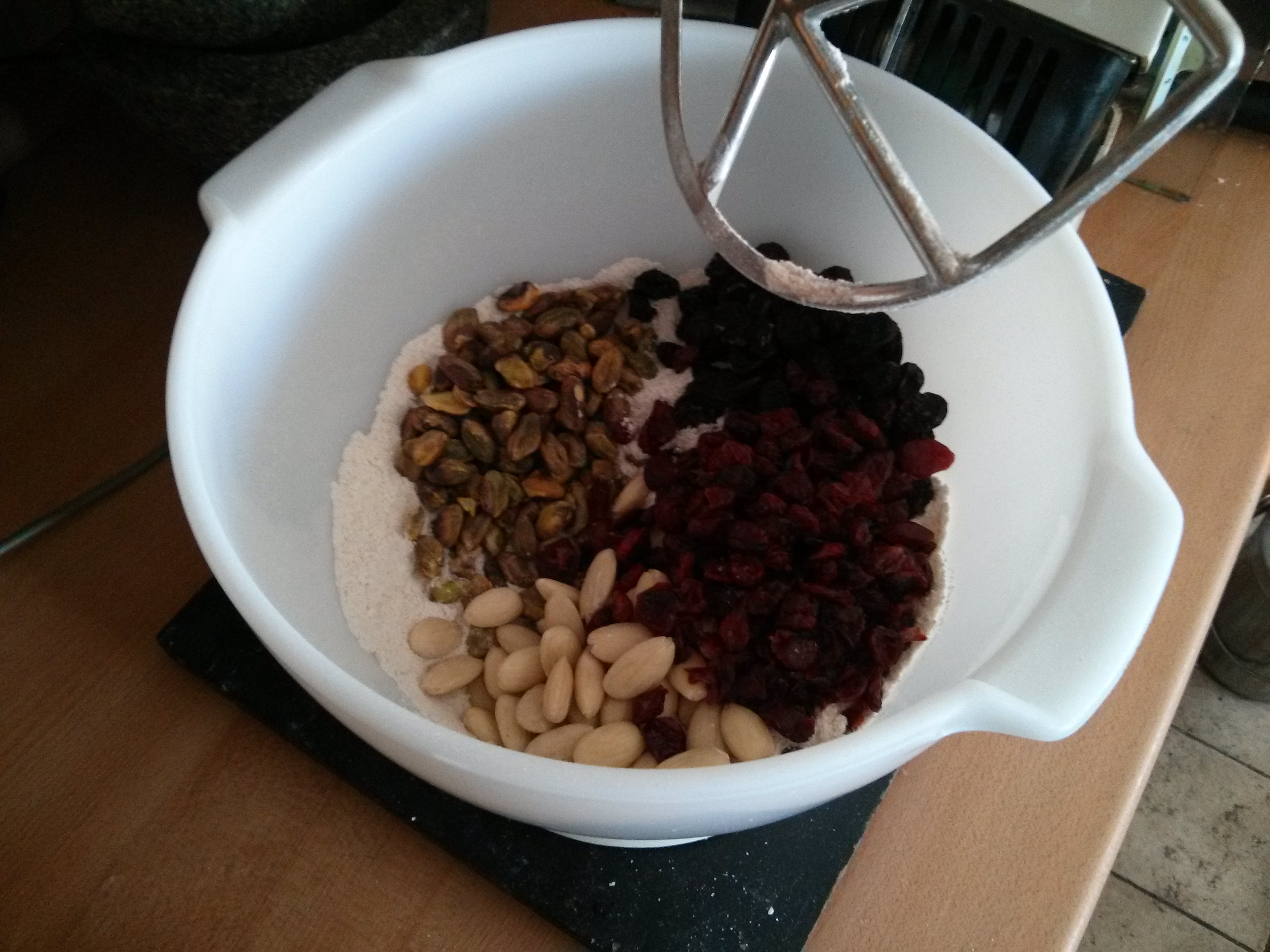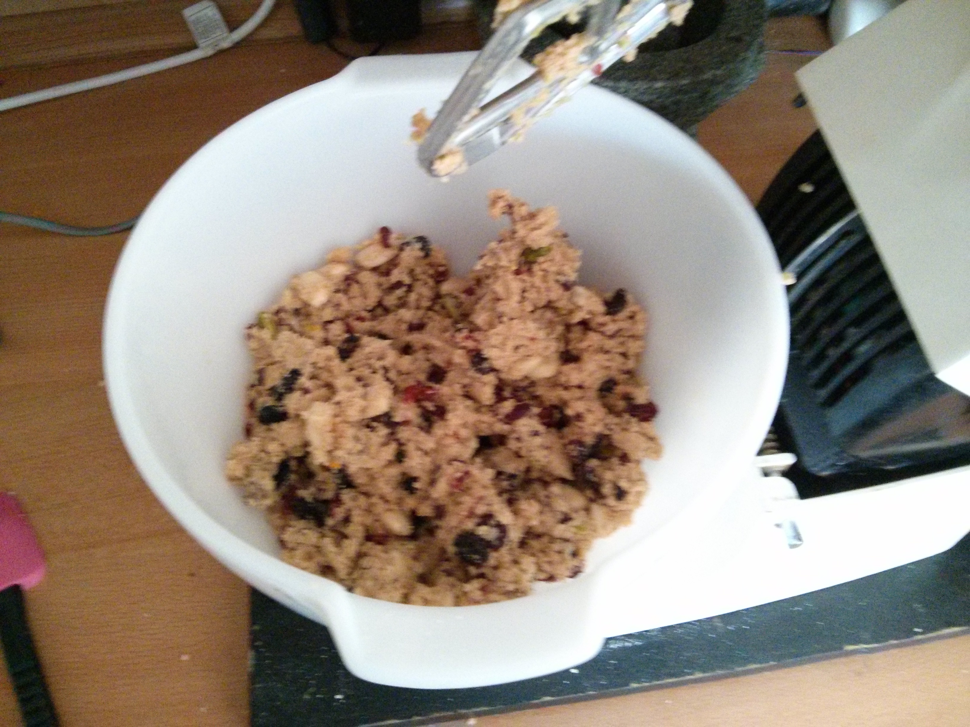 This is one of those recipes ideal for using an electric mixture. Sod kneading nuts into a sticky dough – just bung it all in the mixture and out pops the dough!