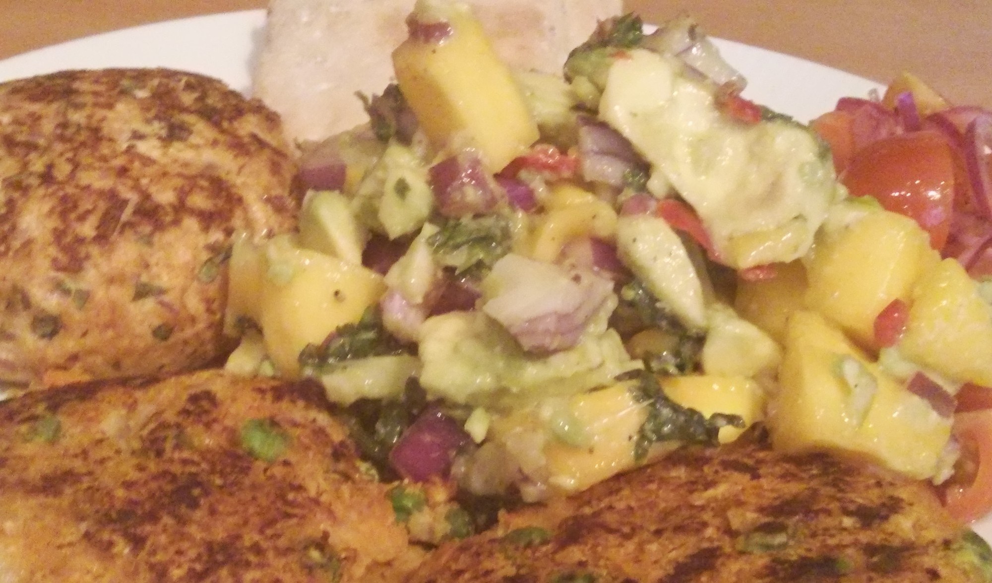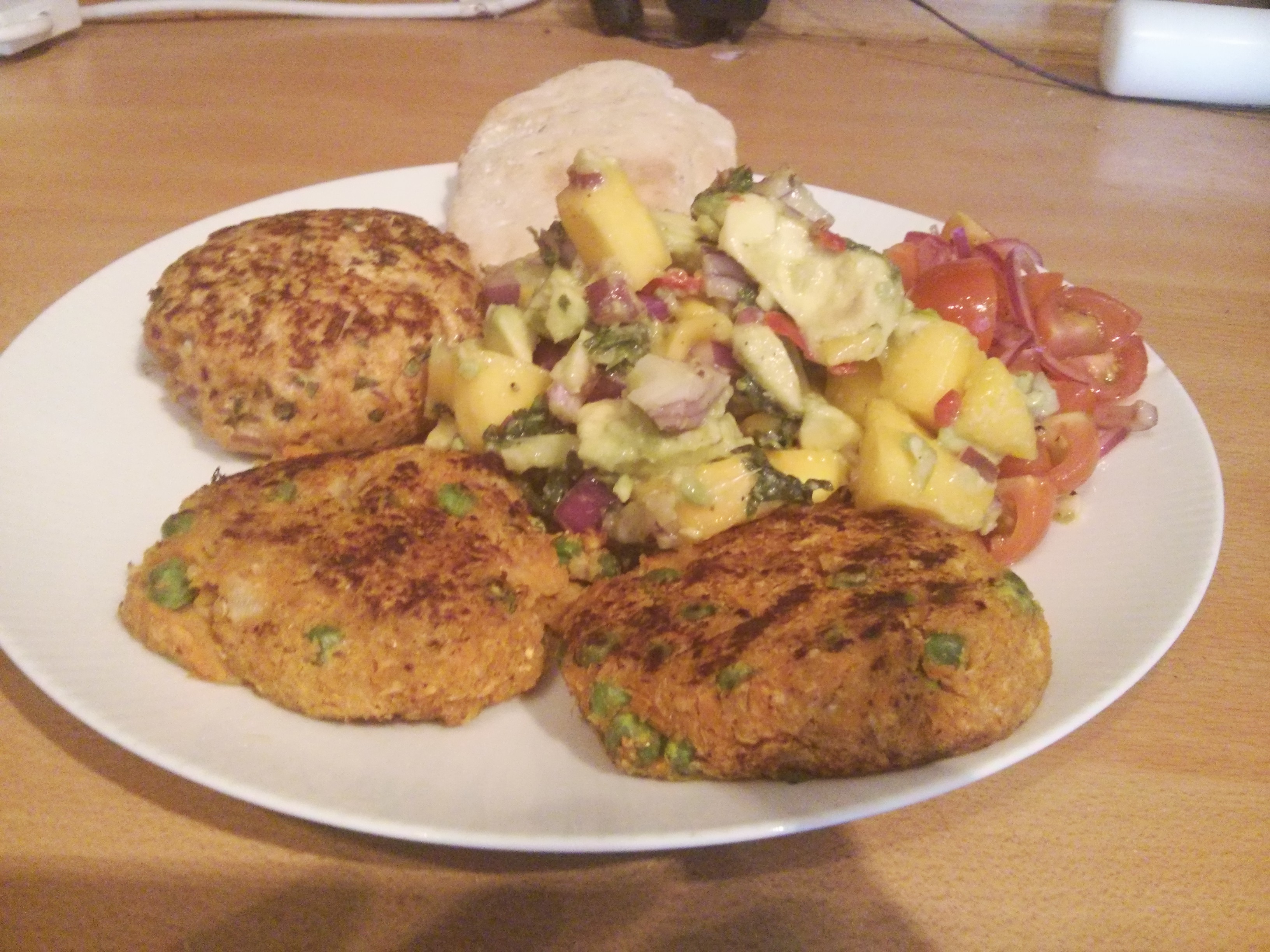 It was delicious. All the flavours worked really well together. Spicy and warm burgers and bread, with tangy and fresh salsas. And all pretty damned healthy to boot!