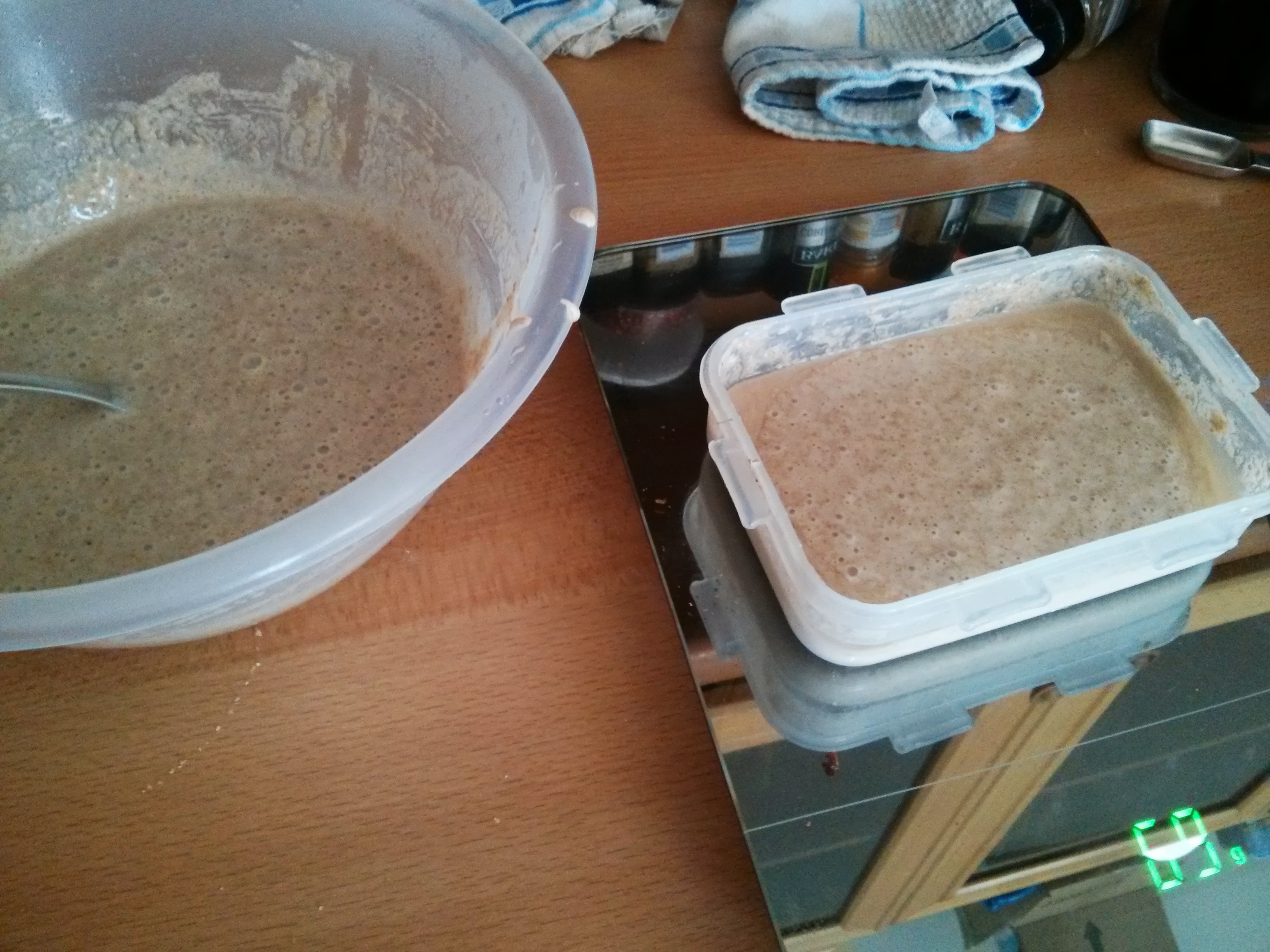 So it all starts with the starter that’s been going overnight. As you can see it looks nice and bubbly and alive :)
