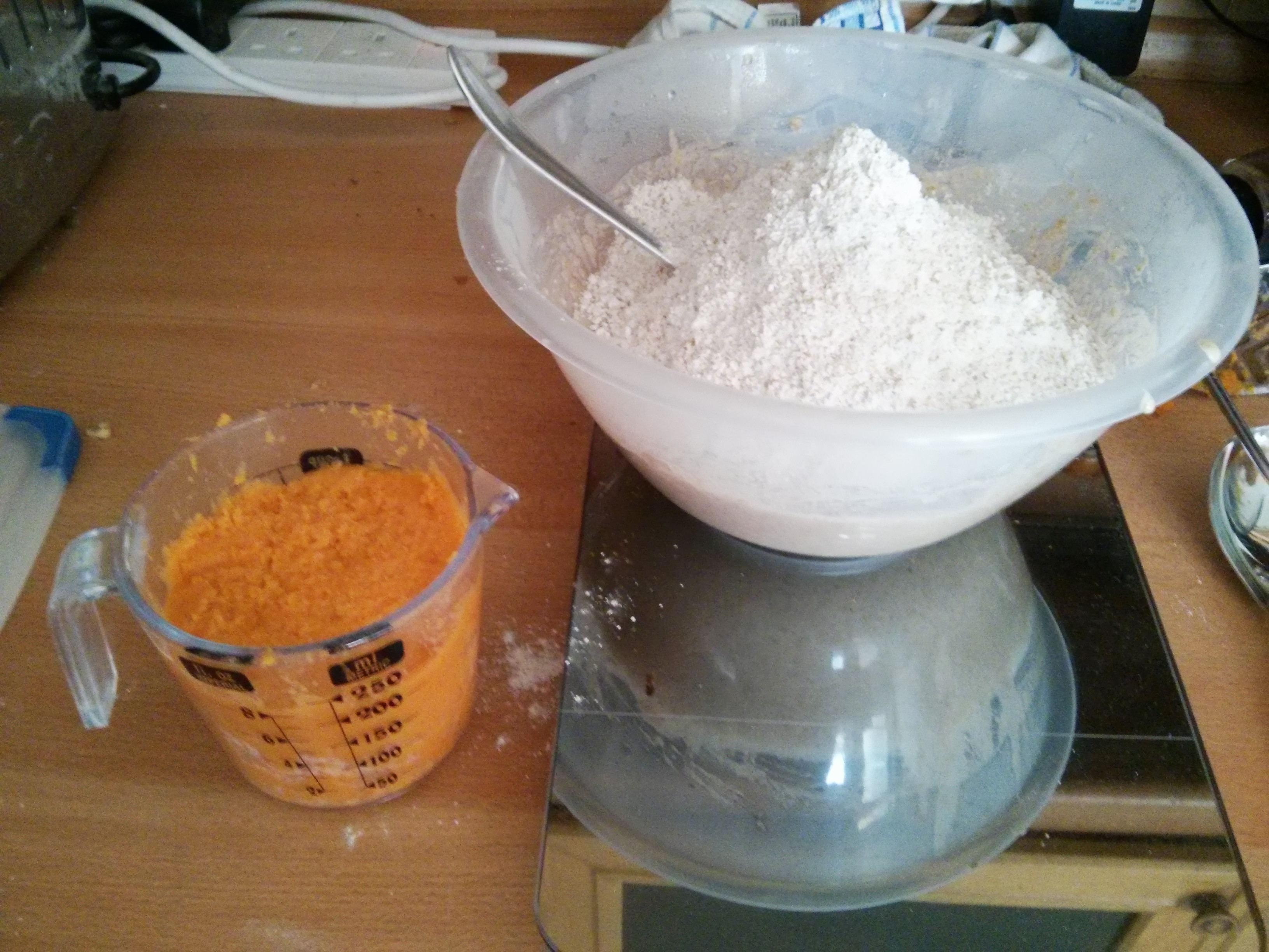 Soph’s away this week so I planned on doing Fennel seed Rye Sourdough again this week (as she doesn’t like aniseed flavours). However while I was cleaning out the kitchen I found we had lots of sweet potato that needed using up. A quick Google and I found recipes for sweet potato bread with cinnamon and ginger. Checking my Flavor Bible I found that Fennel seed wasn’t a bad match for these flavours, so today’s bread is sweet potato, cinnamon, ginger and Fennel seeds.