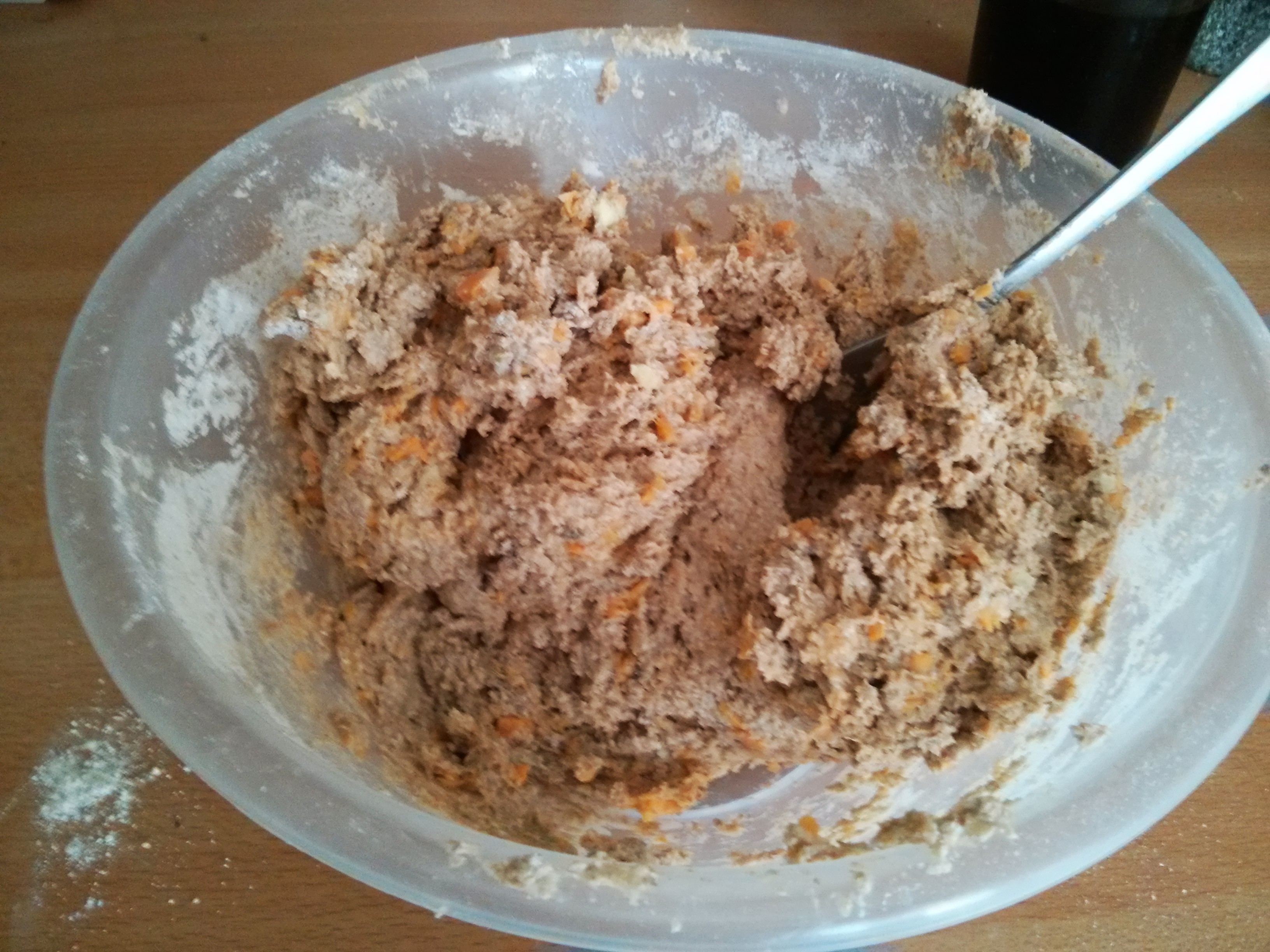 This all gets mixed up. It’s much thicker than usual due to the sweet potato… let’s hope it’s OK!