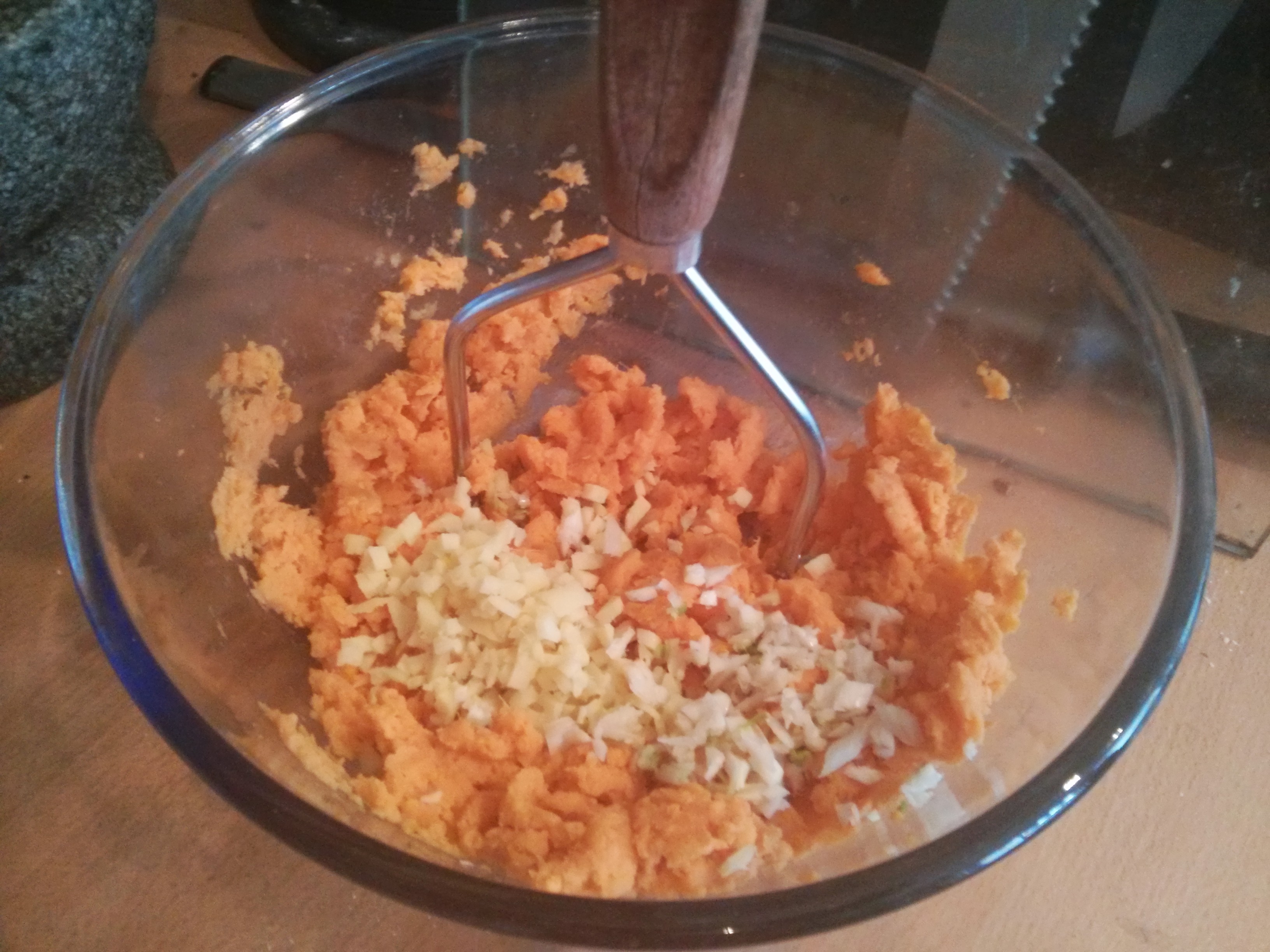 To the sweet potato I added the usual ginger, but also some garlic. Not sure this will work with the cinnamon, but it works with the ginger and sweet potato, so we’ll see…