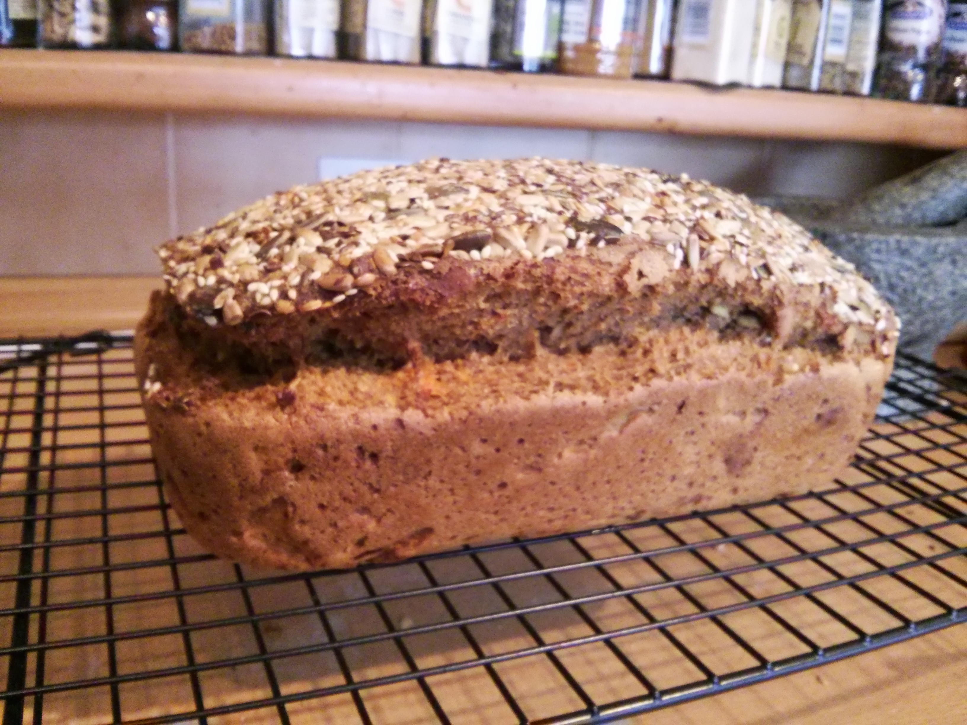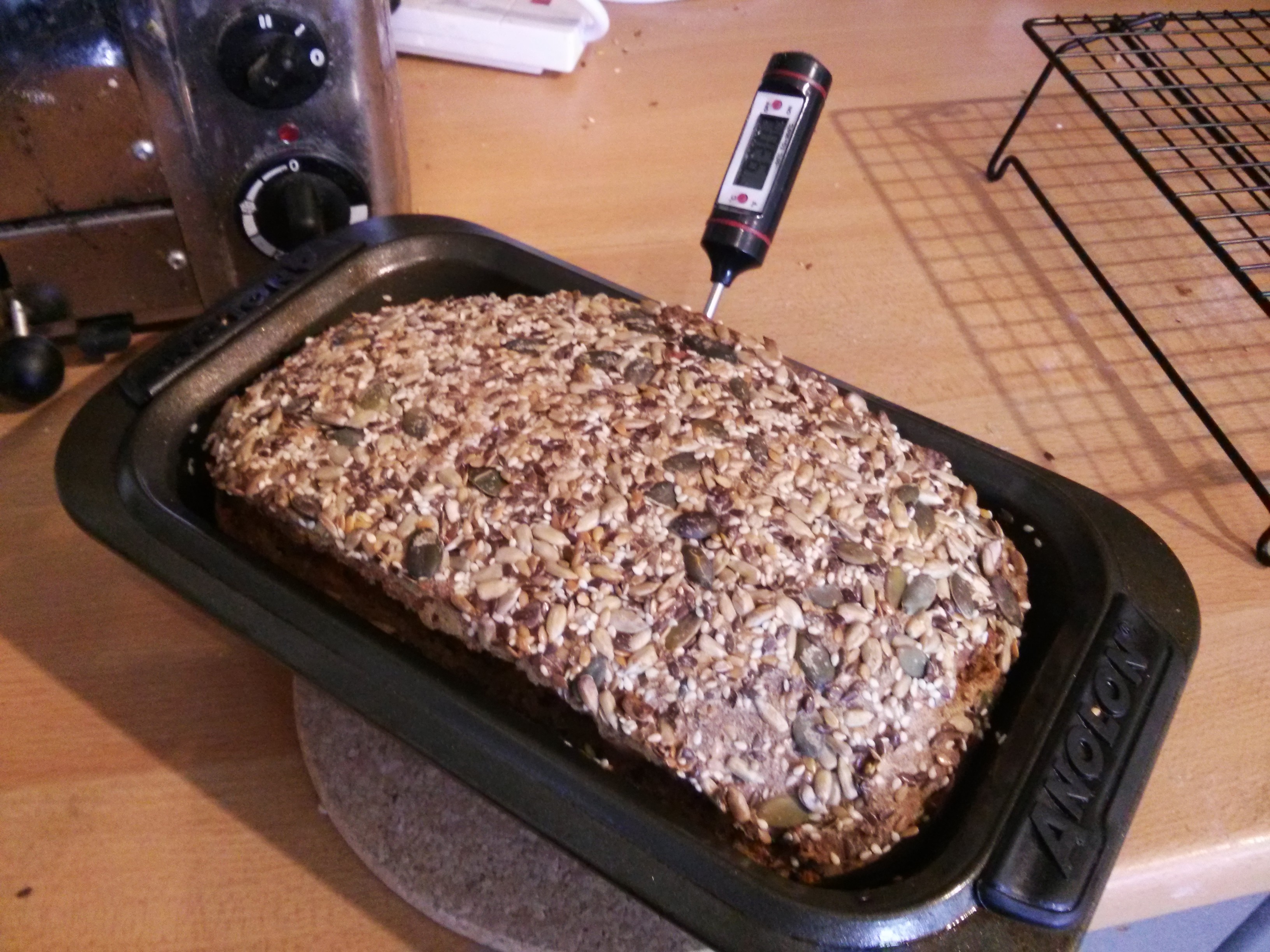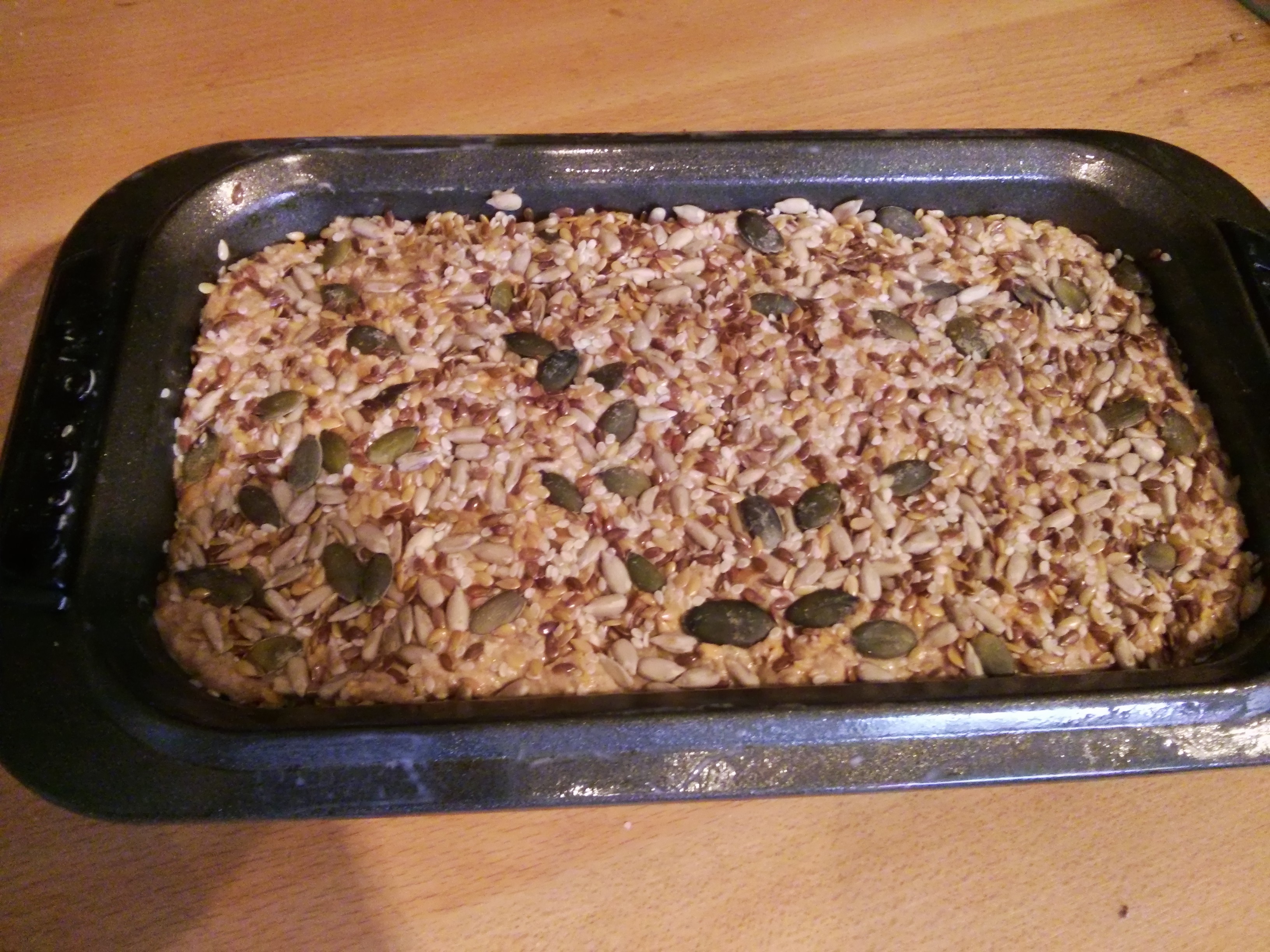 Finally the usual ‘omega 3 sprinkle’ mix on top. I gave it a really good patting down today, to try and reduce the amount that falls off. After about 45mins proving it was ready for the oven.