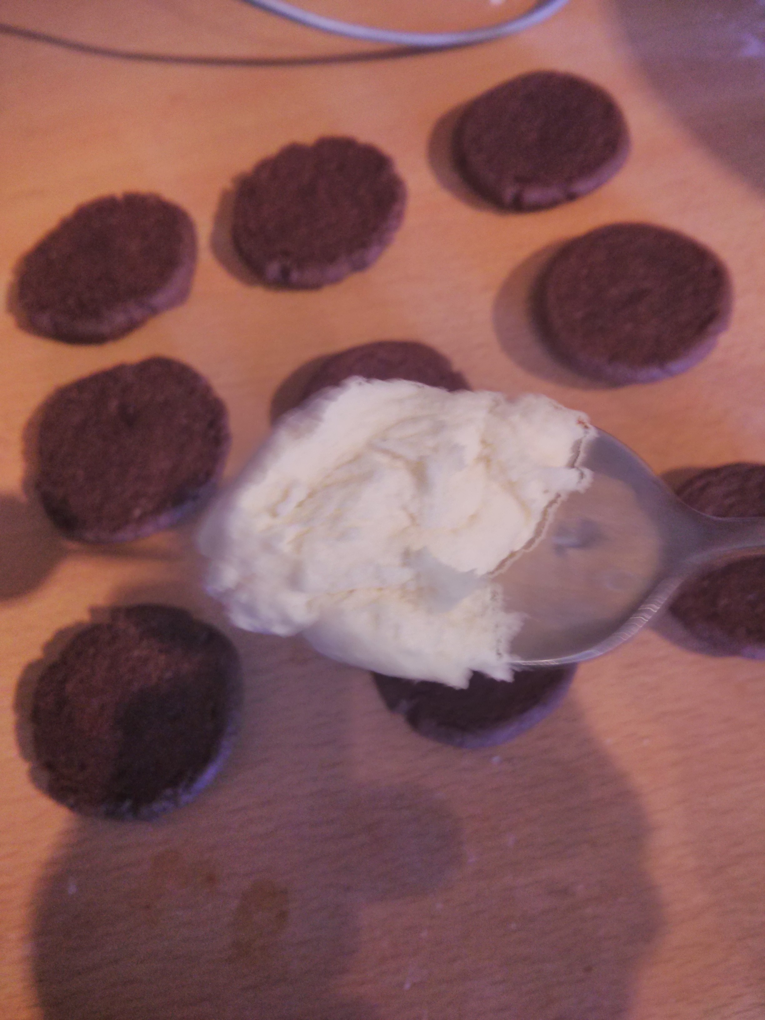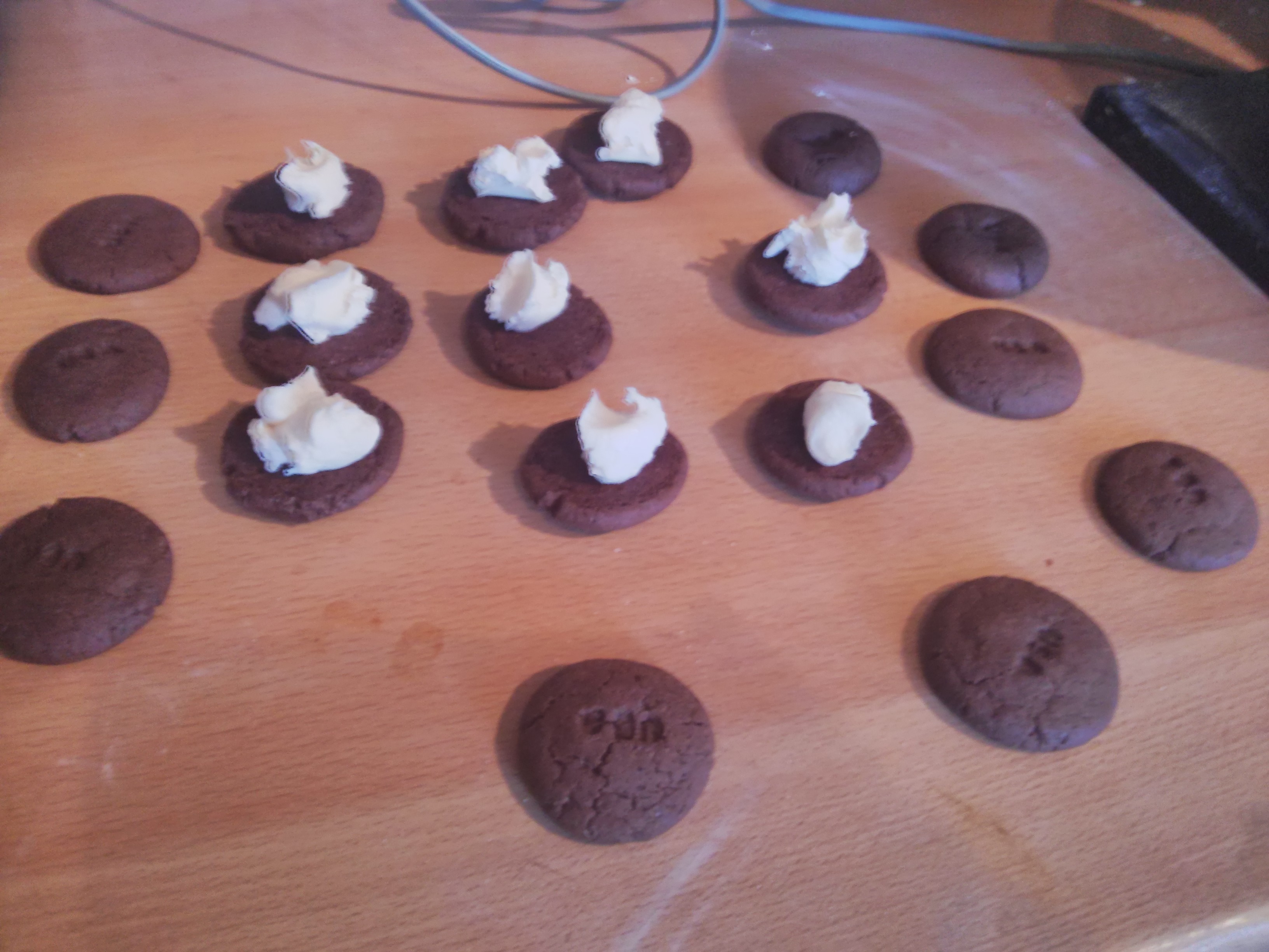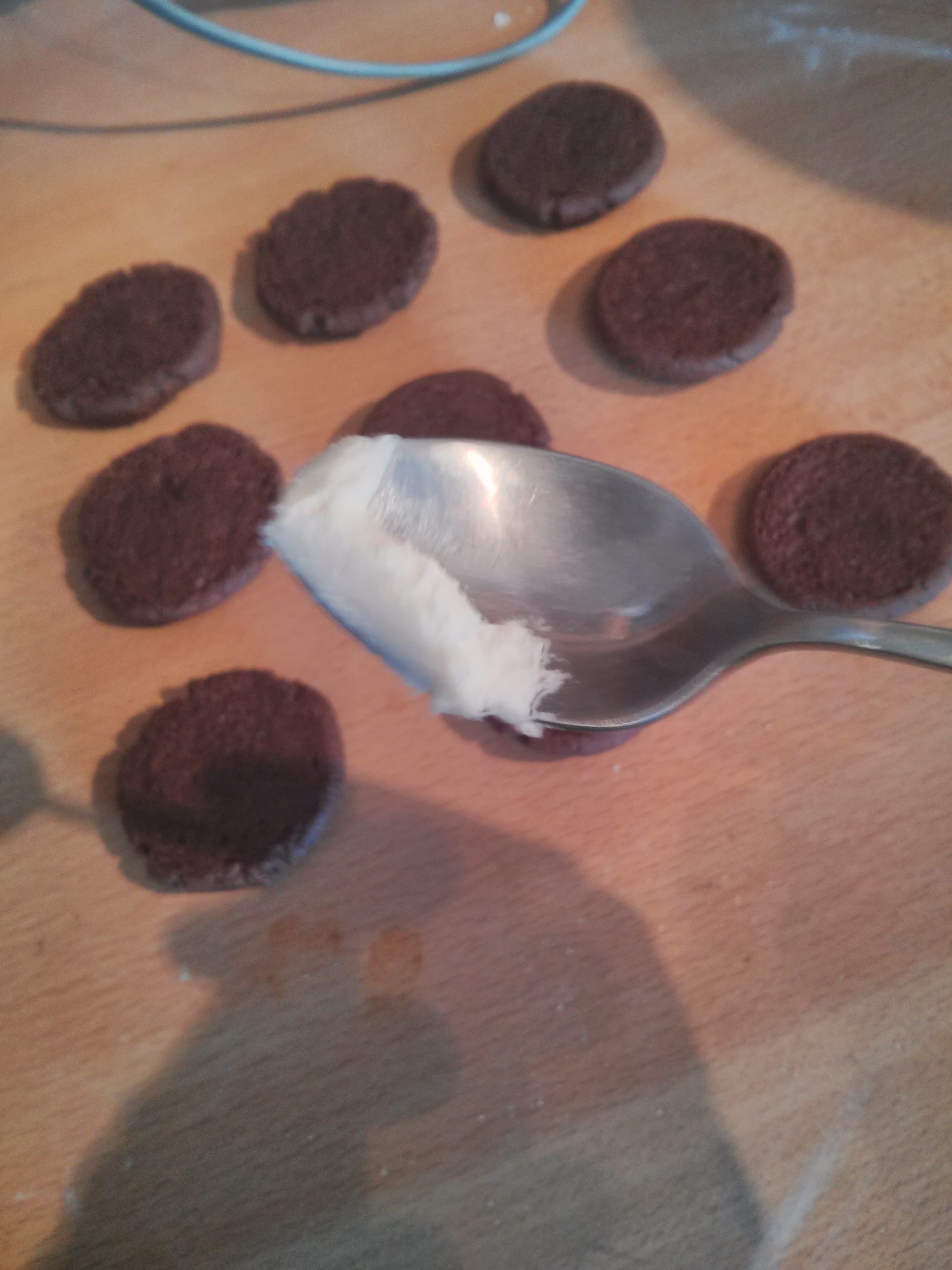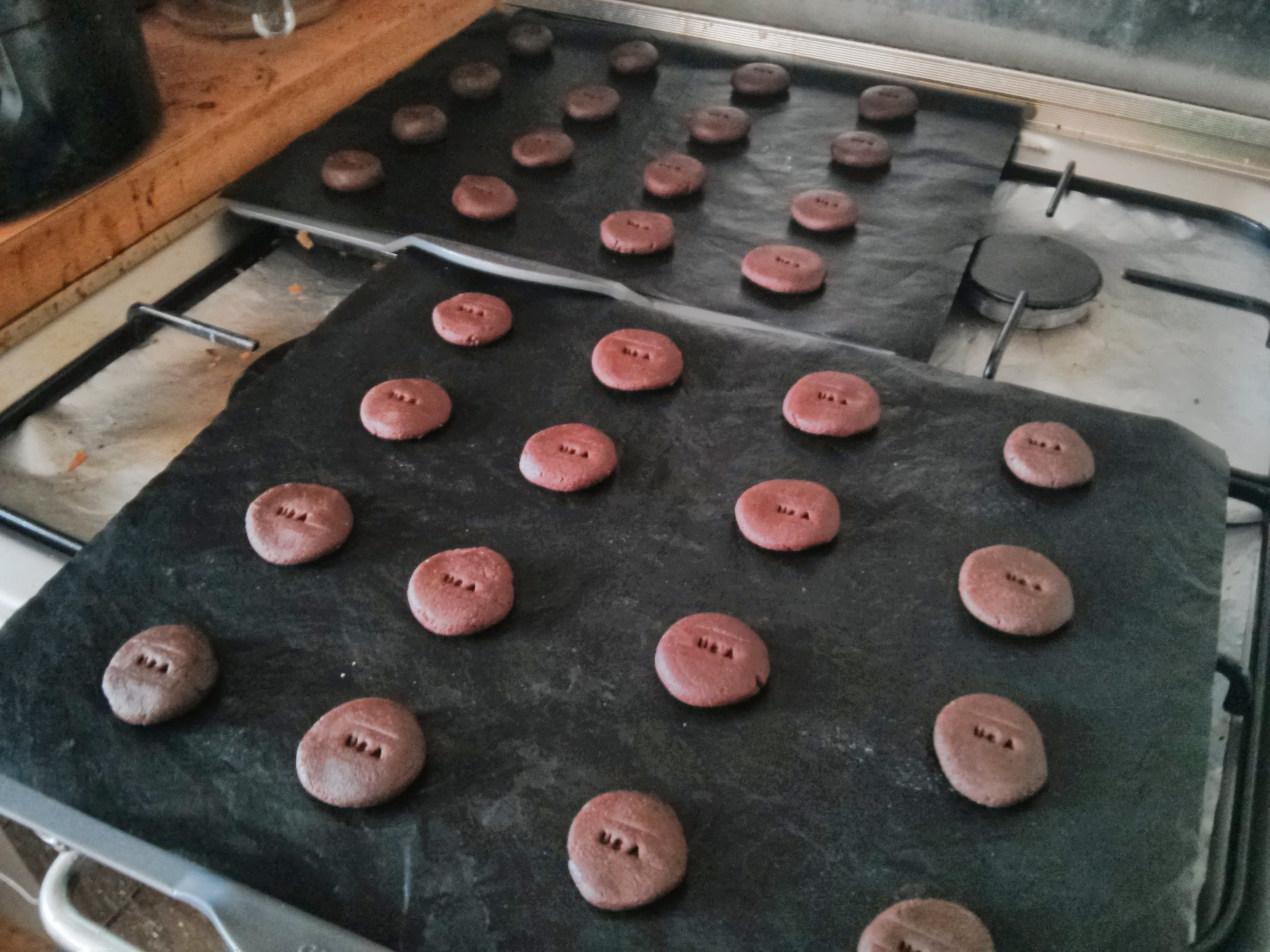 And cook for 5 mins, then switch layers, then 4 more minutes, and we have some cookies. Looking rather puffy for an O… erm…. Faux-reo. Next batch will get flattened more.