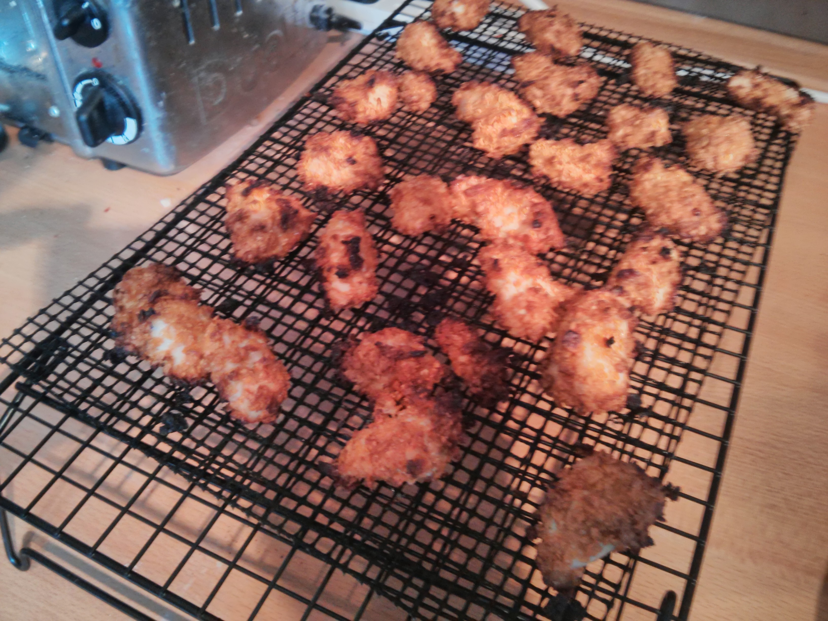The main trick to making this healthier is baking the chicken rather than deep frying it. The secret to faking the crispiness of deep frying it to coat the chicken in crushed cornflakes. I actually used crunchy nut cornflakes, both because that’s what I had, and because I liked the idea of the nutty taste with the chicken.