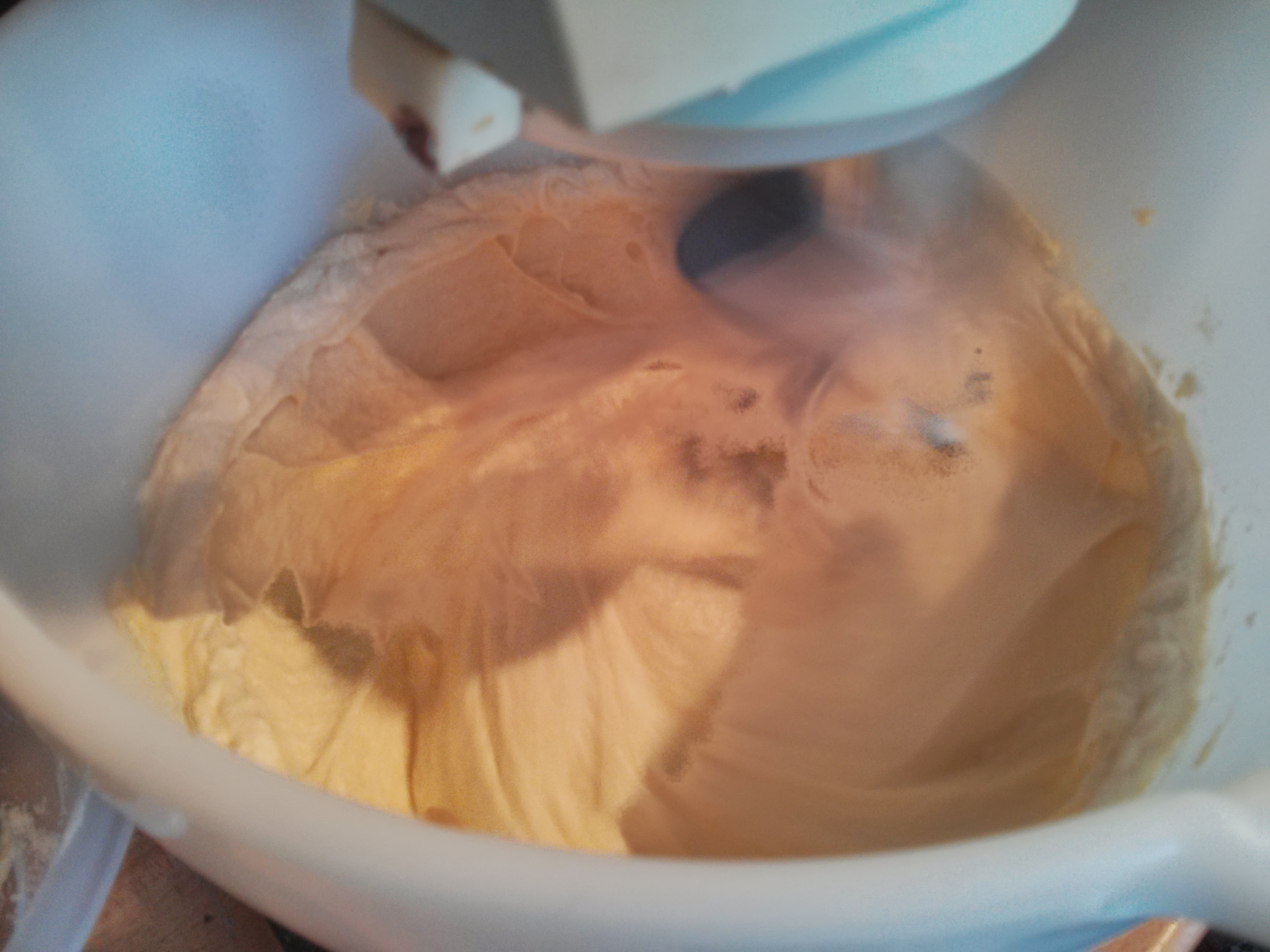 This gets mixed up, and the extra liquids (vanilla extract and milk) mixed in.