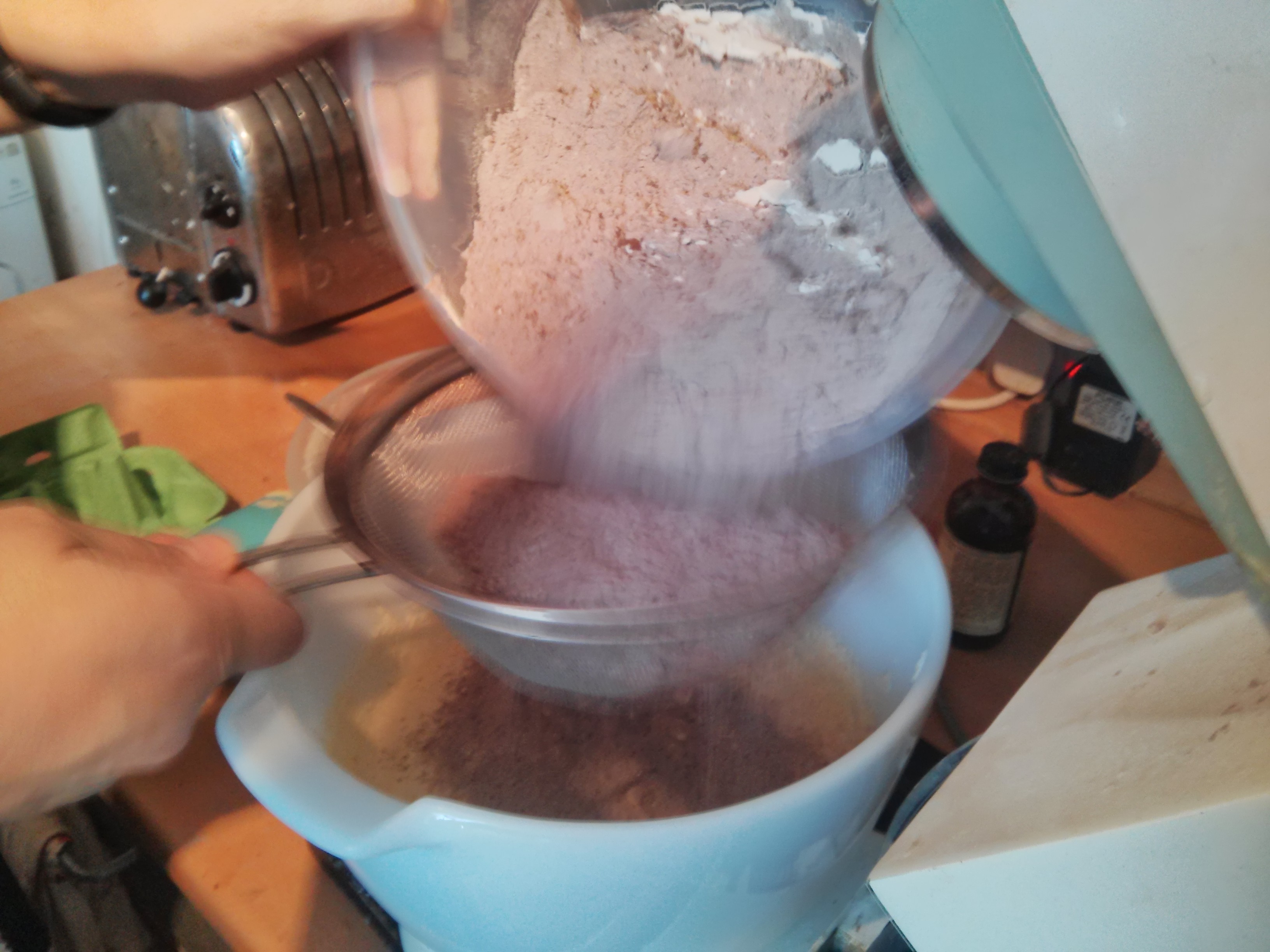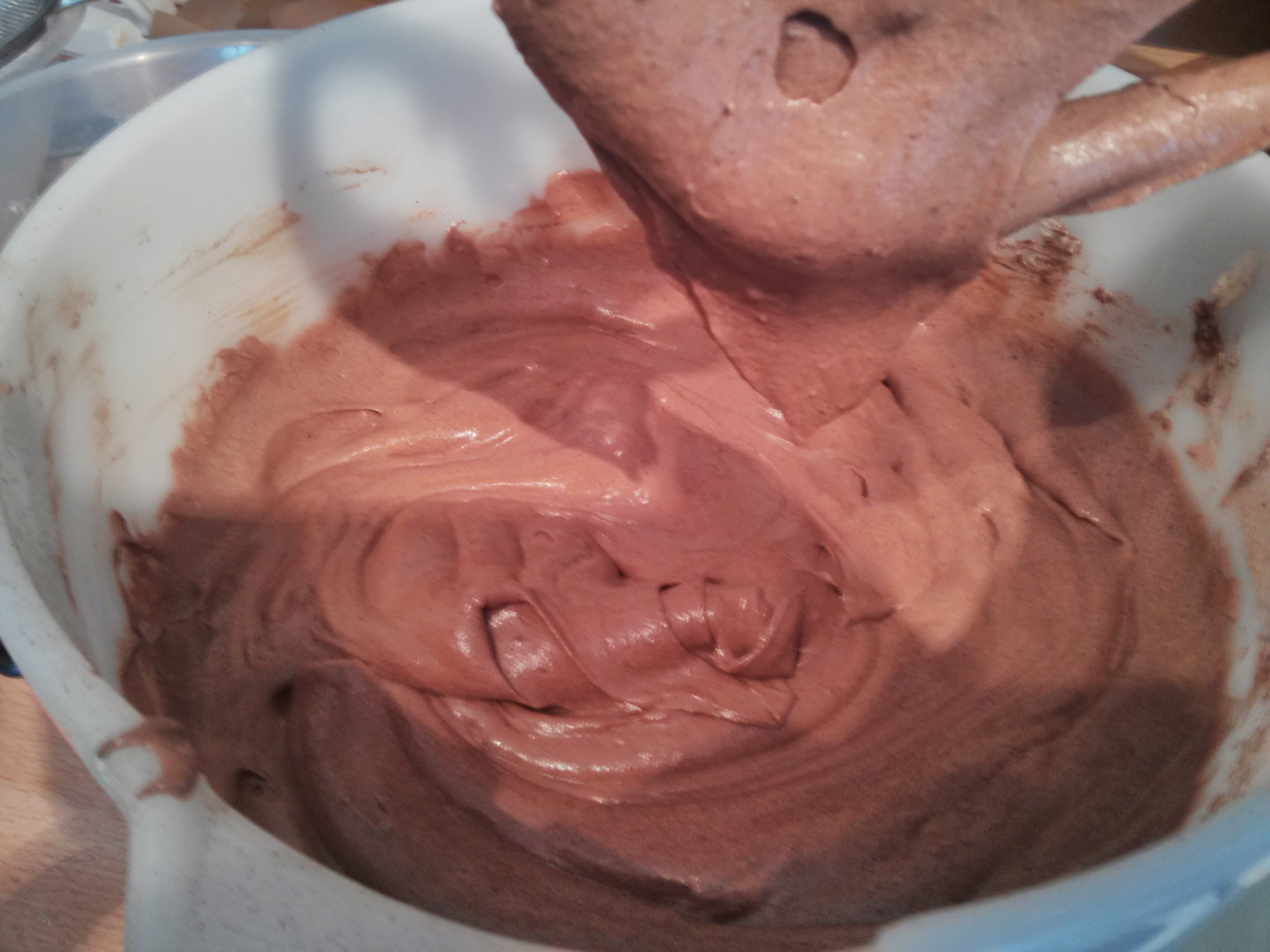 Then the dry ingredients get sieved in, due to the cocoa powder which clumps up.
