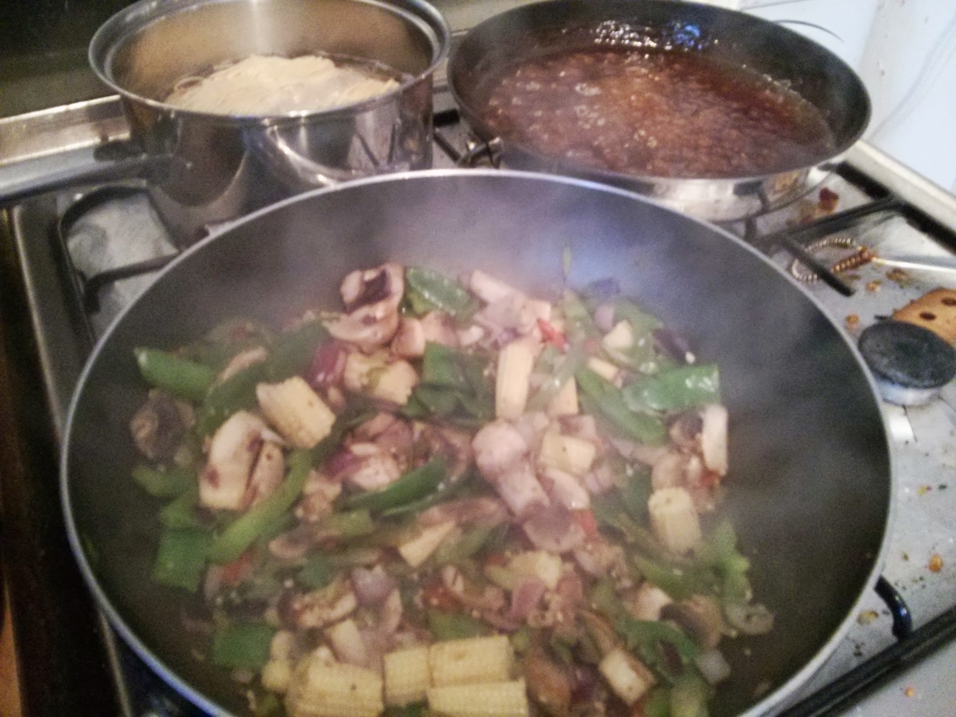 Given the success with the healthy makeover of sweet and sour chicken, I thought I’d try the same on crispy chilli beef. Basically as I’d already upped the chilli in the sweet & sour… I used exactly the same recipe on beef, but chopped the veg smaller and server with noodles!