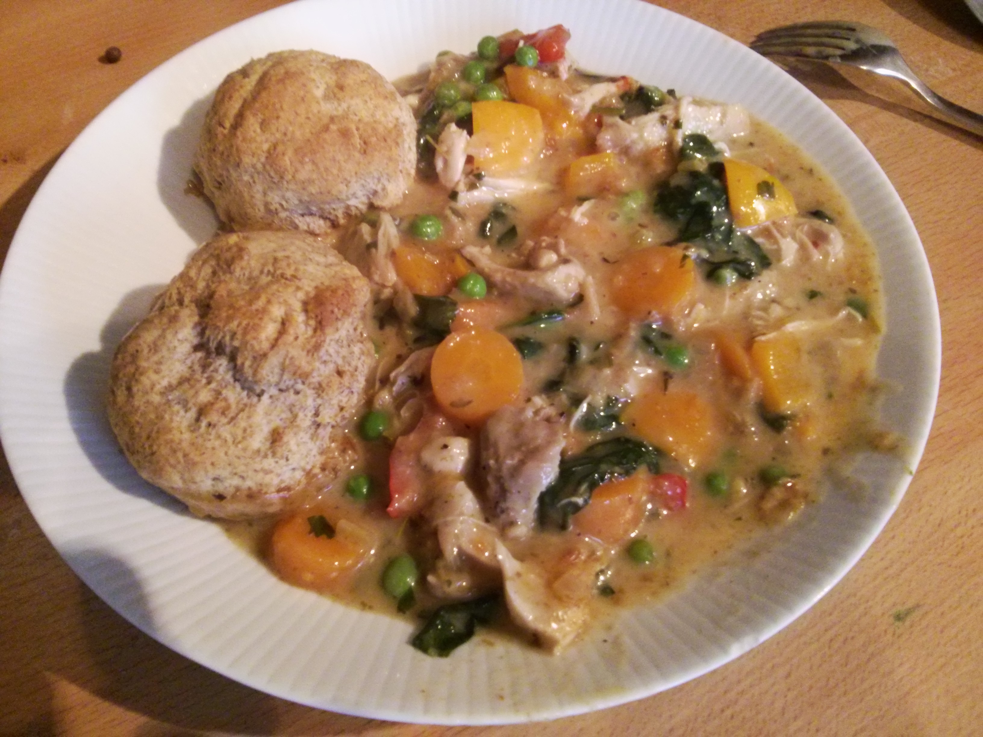 I’ve been wanting to try making something with what Americans call biscuits for a while. They like to have these scone-like things with chicken, and I’ve been intrigued as to what all the fuss is about.