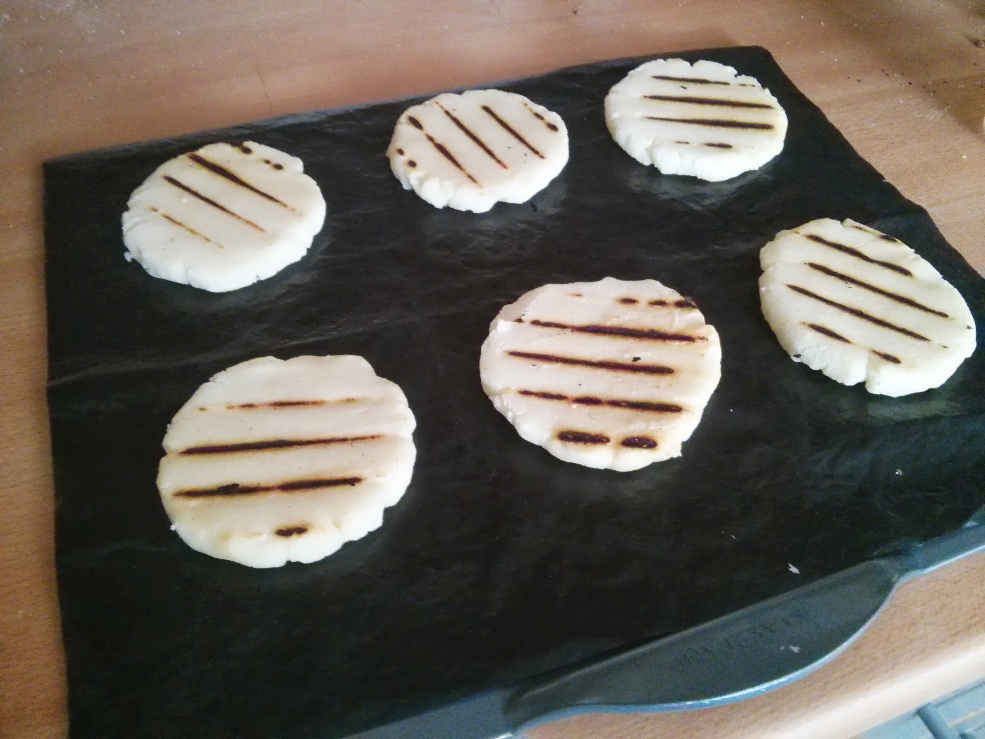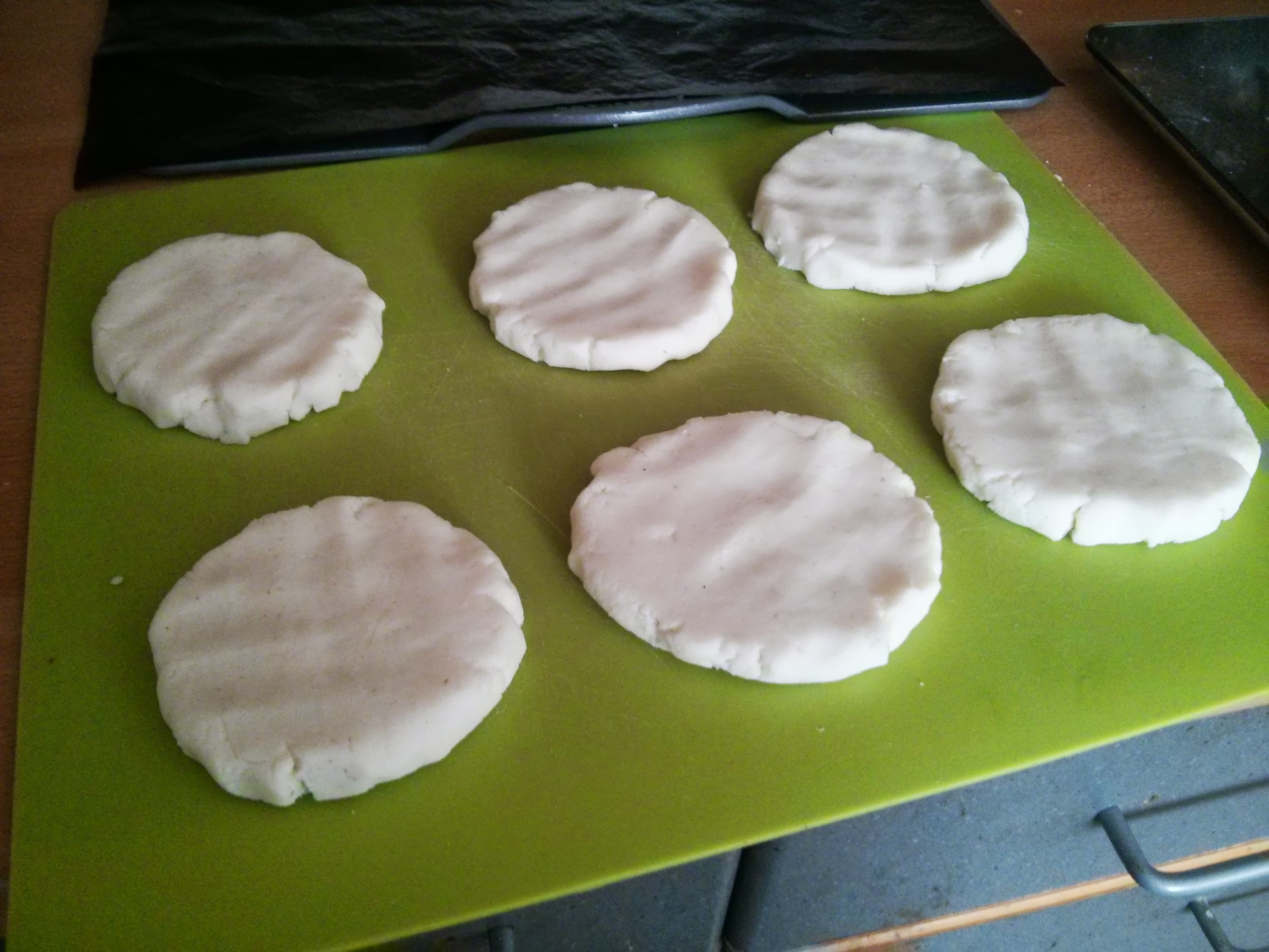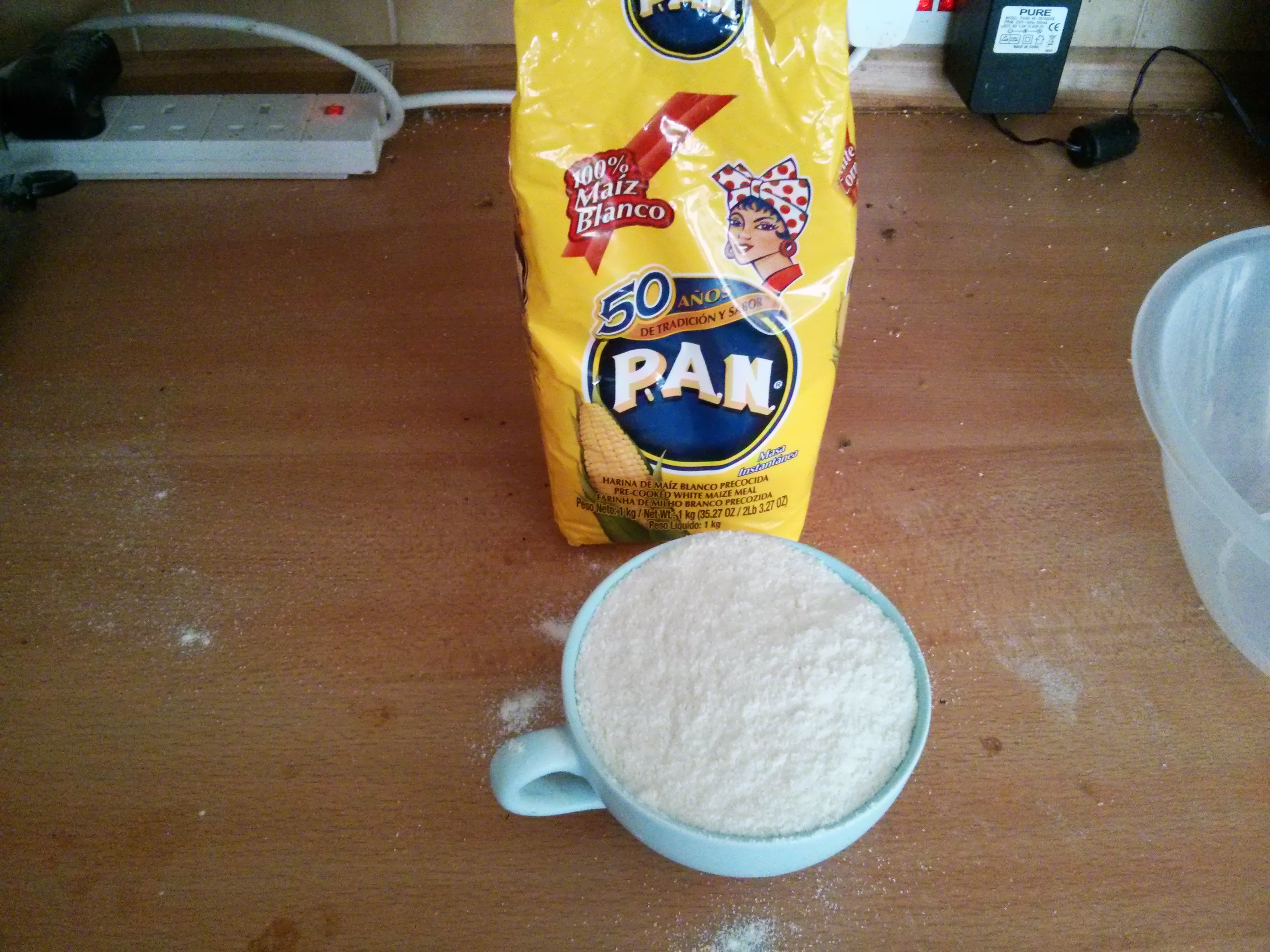 I tried making these corn-muffin things called arepas, as I’d mistakenly bought some maize flour thinking it would do for corn tortillas (but I need masa harina for that apparently – no substitutes).