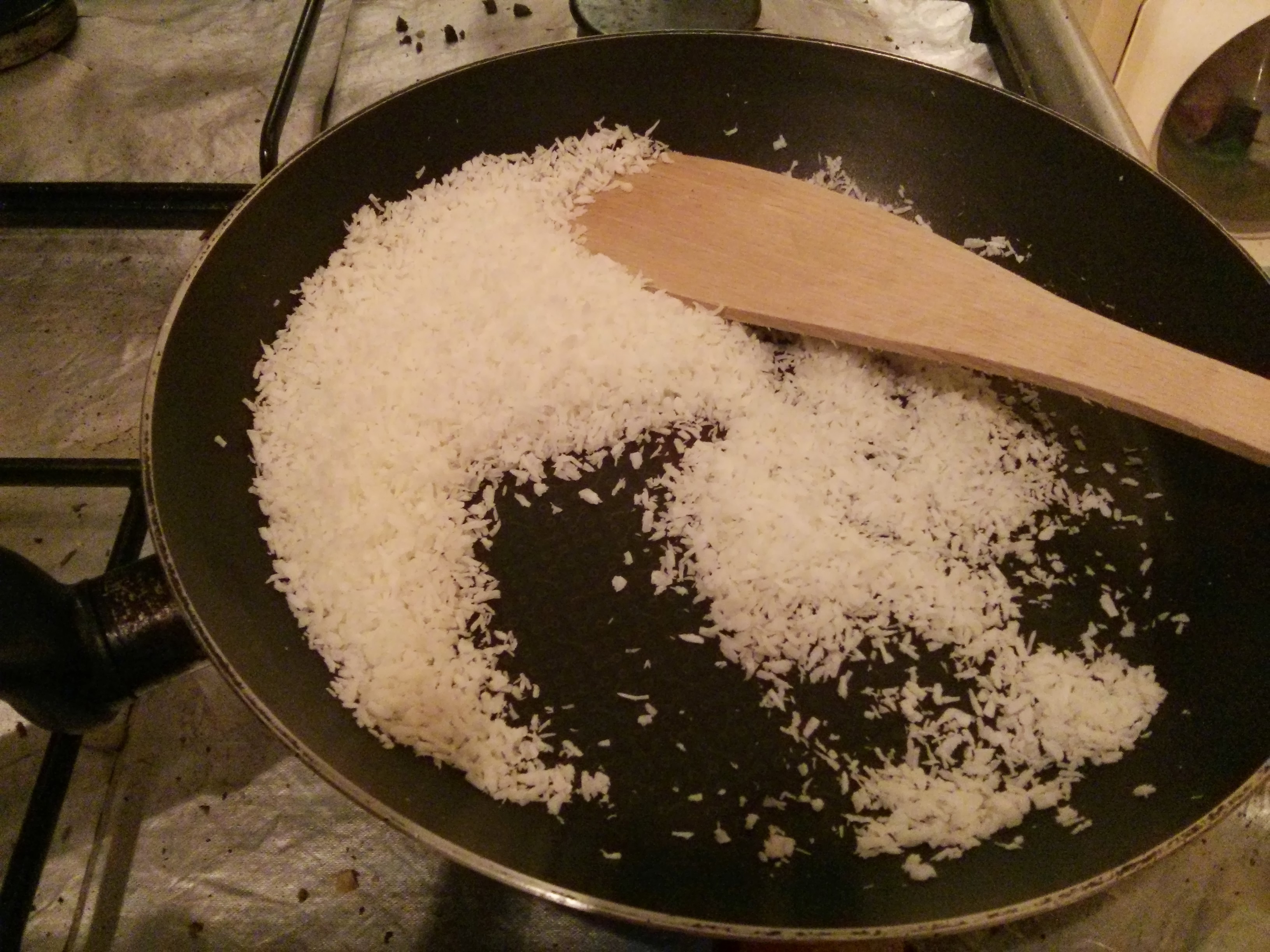 CameraZOOM-20130906204603451Oh… then I decided I really wanted to toast some desiccated coconut and throw that over the top. So dry frying pan until it just starts browning…
