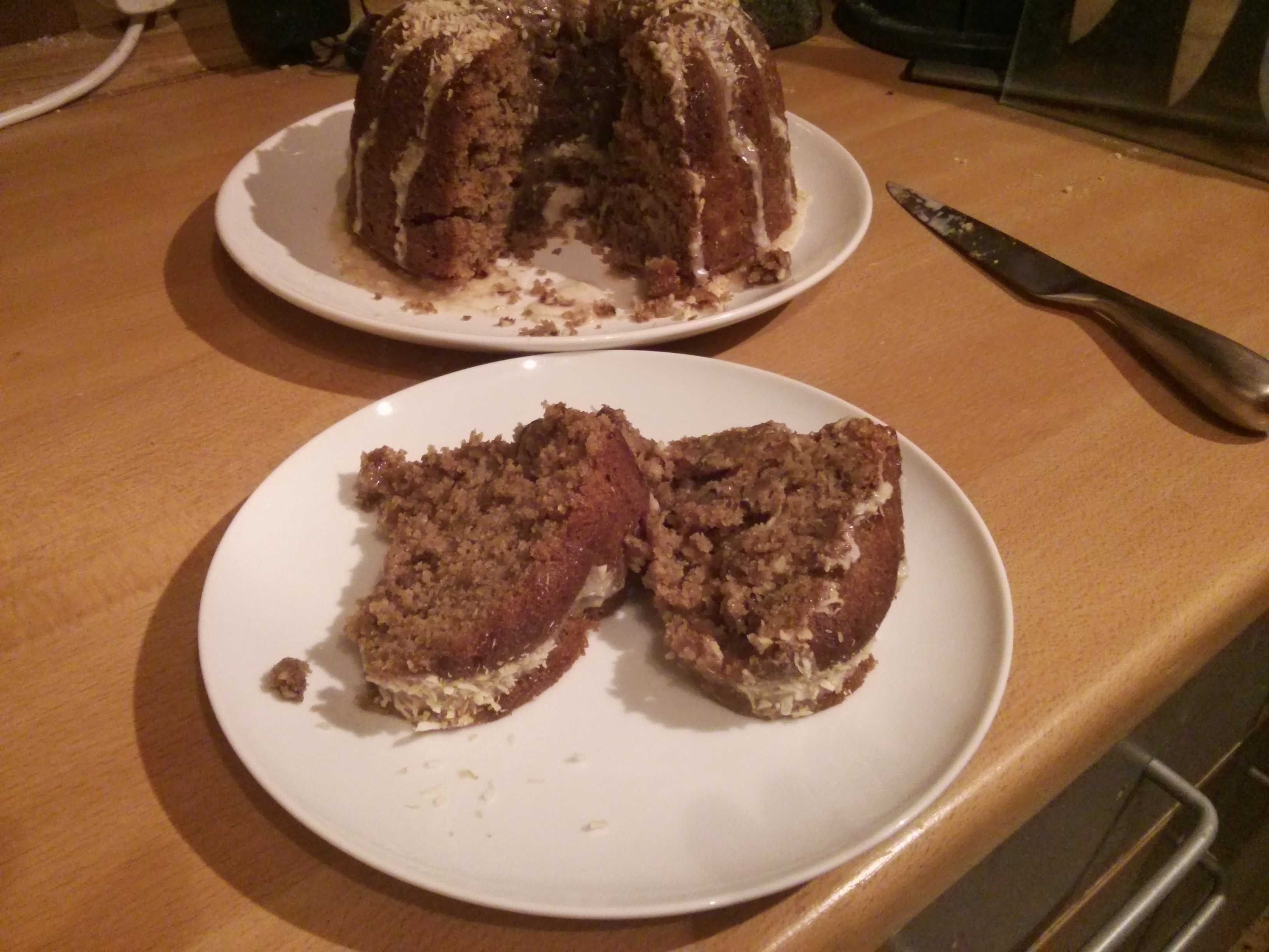 CameraZOOM-20130906205530686Turns out you couldn’t taste the coconut, or the marrow for that matter! But apart from that it was really good. OK it was a bit fally-aparty, like carrot cake but without the cream cheese icing to hold it together! But… erm… CAKE!