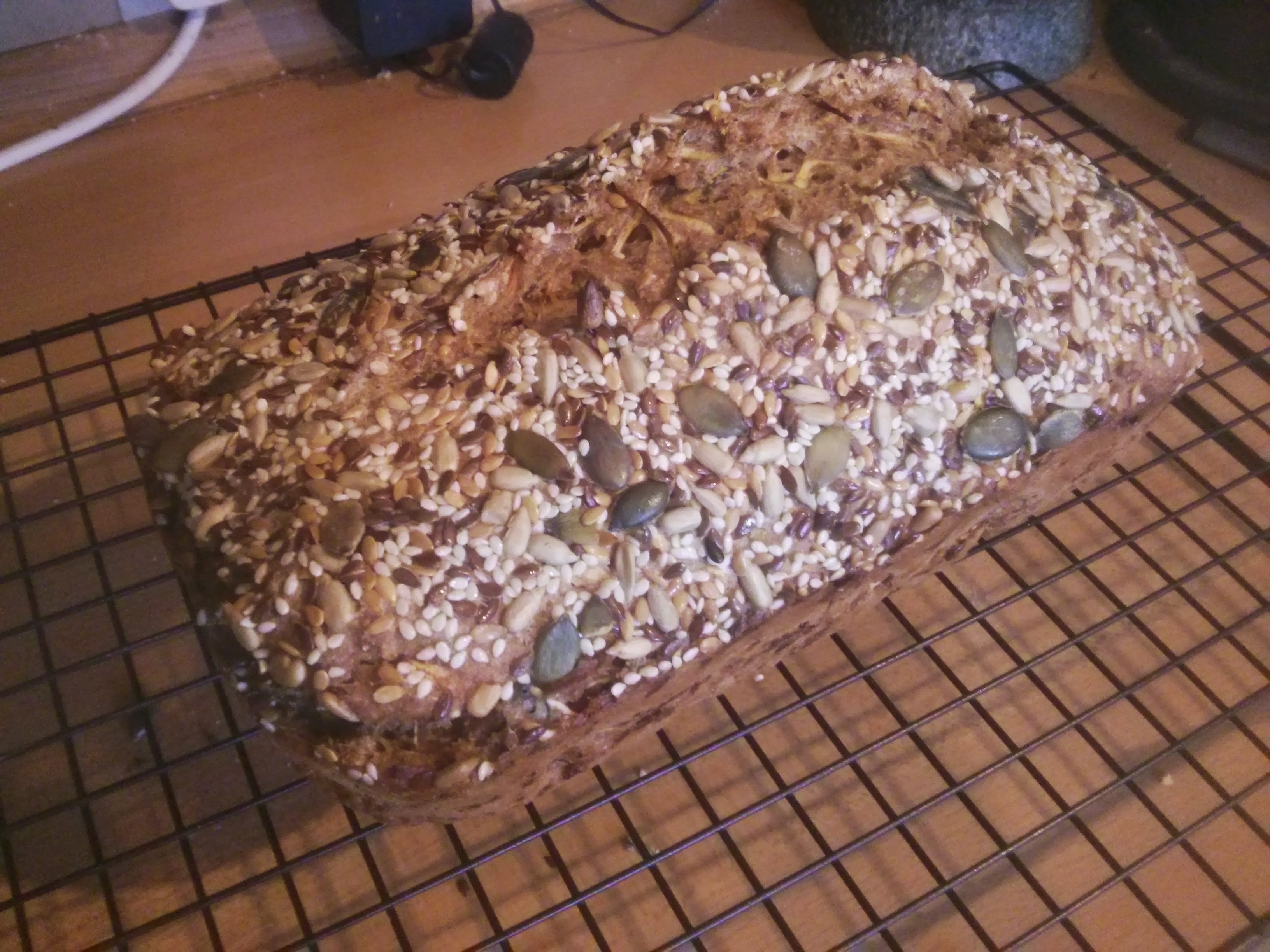 With lots of marrow to use this week’s bread had to use it. So on the second day I added 300g of grated marrow to the mix, and put in only a splash of water not the full 200ml (as marrow is mostly water).