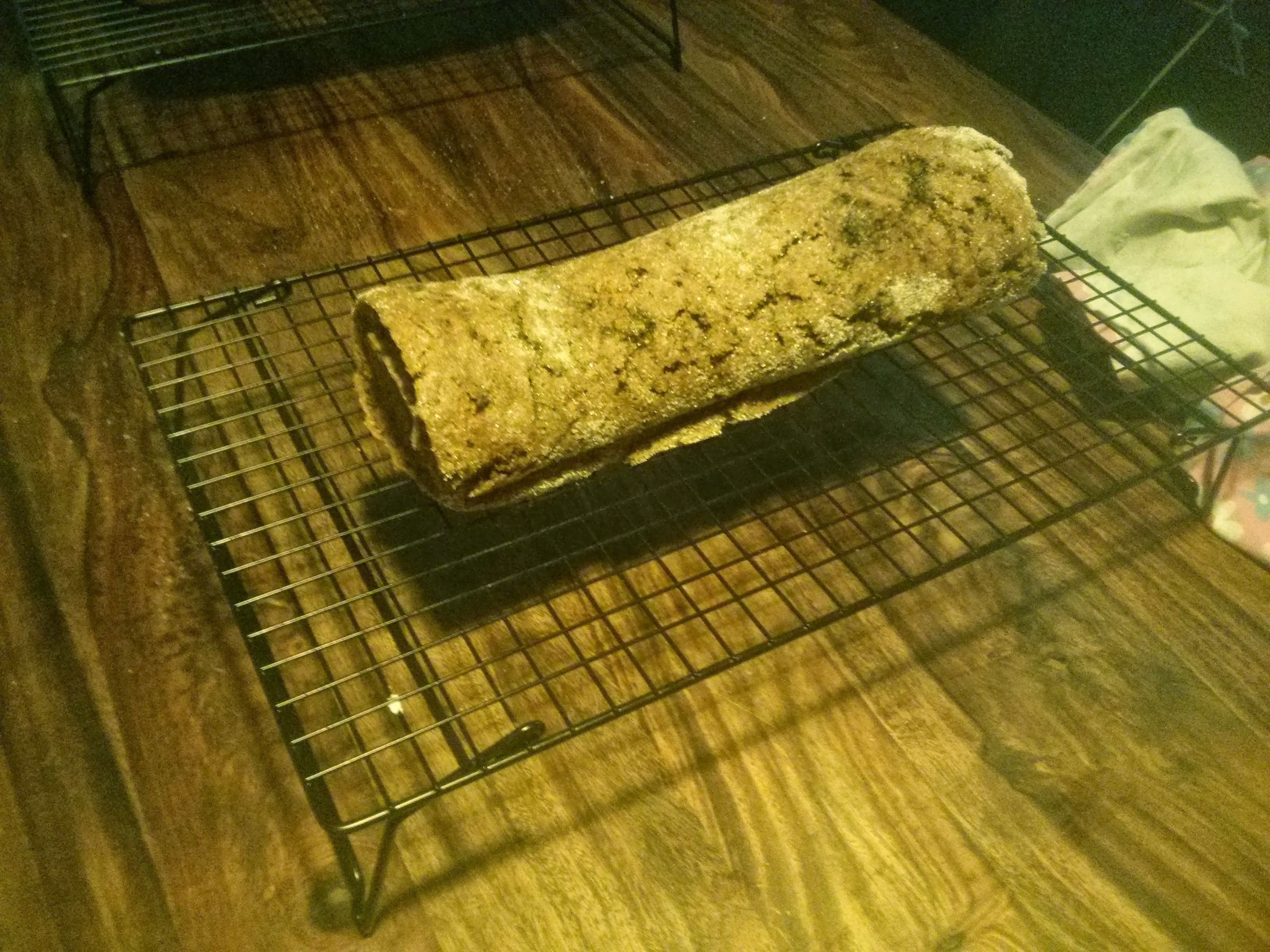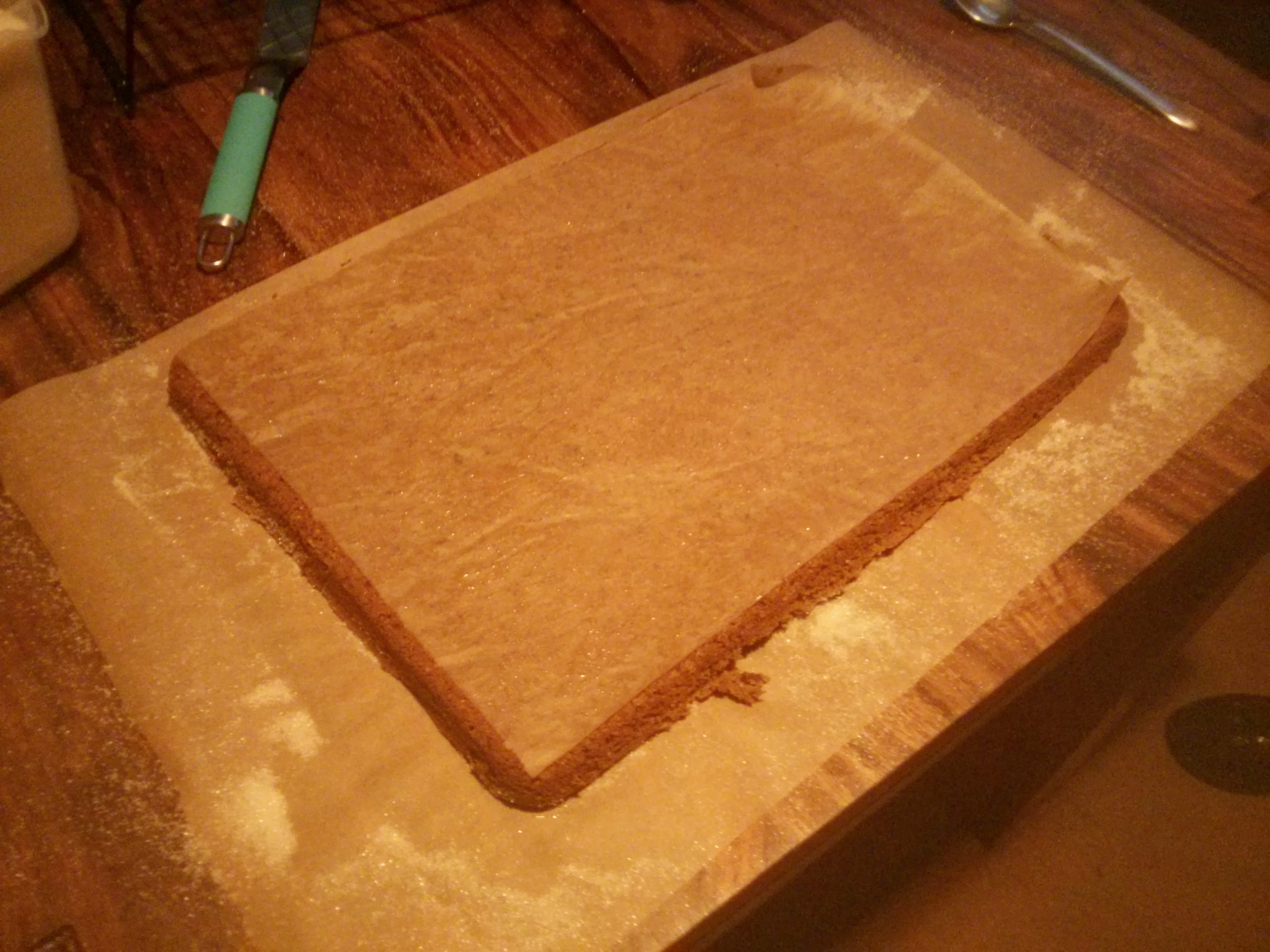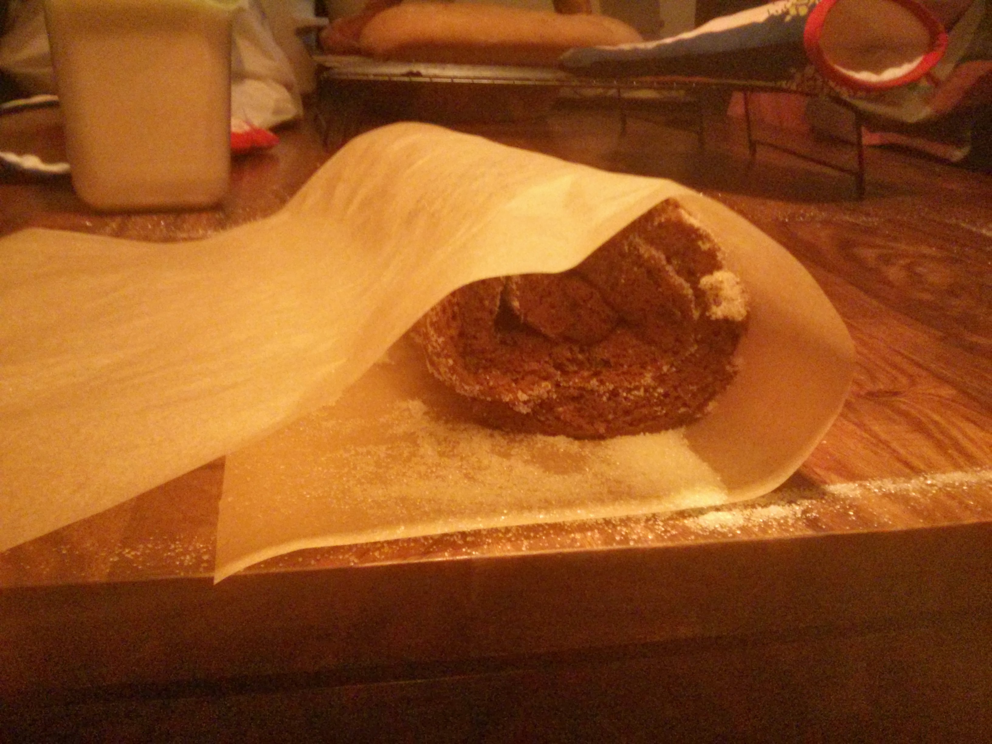 Once cooled it gets unrolled. This wasn’t easy. The fig mix makes it really sticky, so there were some holes…