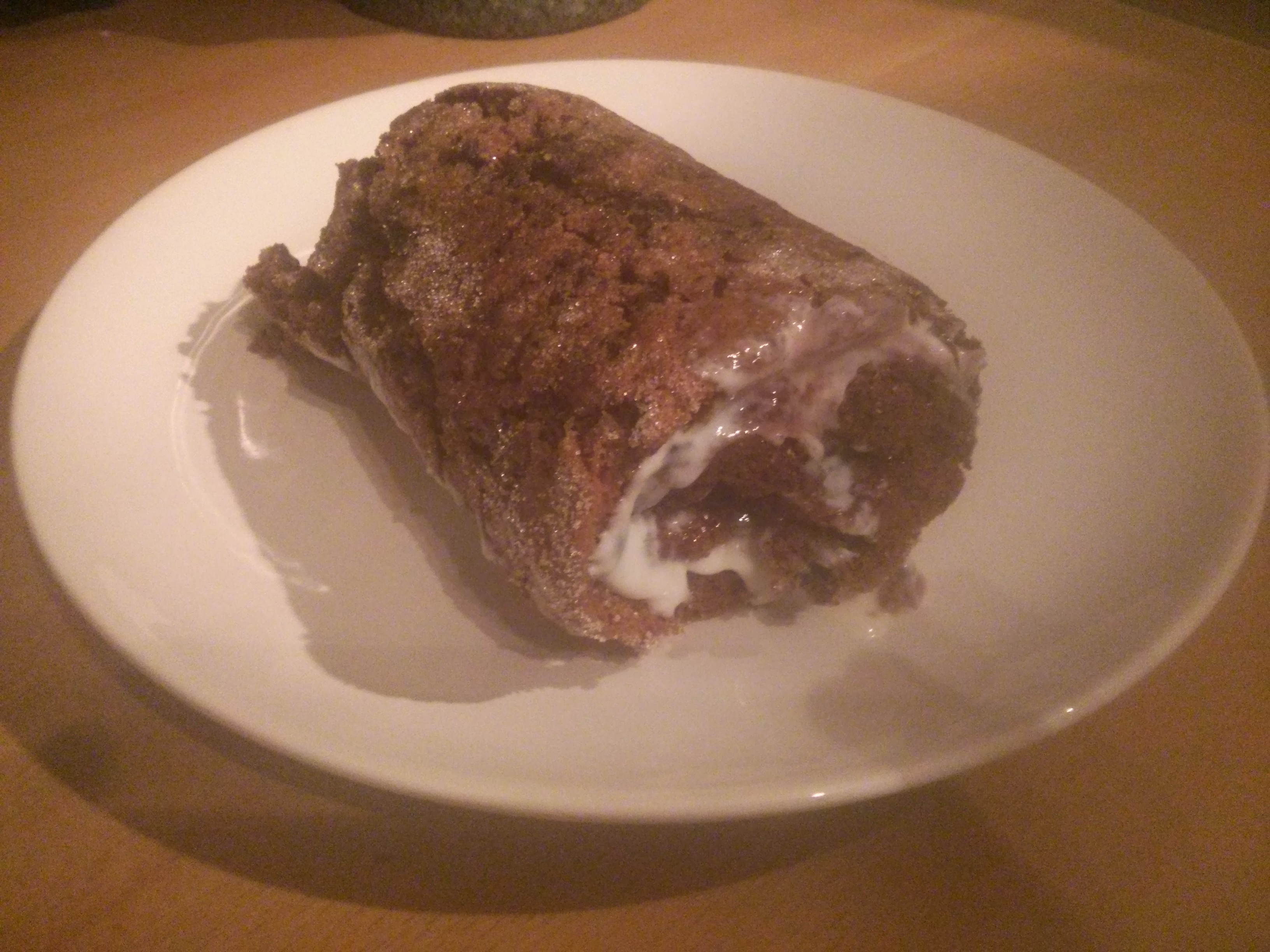 CameraZOOM-20130921182303714This then gets rolled up. The filling doesn’t go in yet as it’s still hot and would melt the creme fraiche.