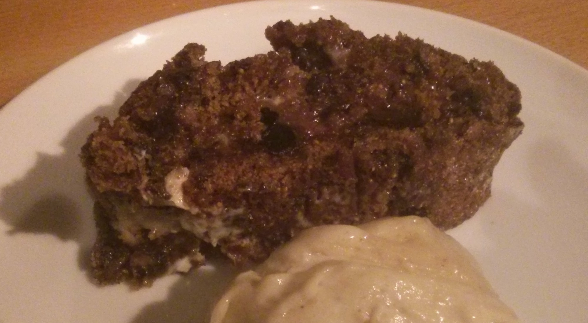 CameraZOOM-20130921194325595By the time we ate it the creme fraiche has seemed into the cake and made this lovely gooey texture. We served it with banana fake ice cream in a failed effort to reduce calories :)