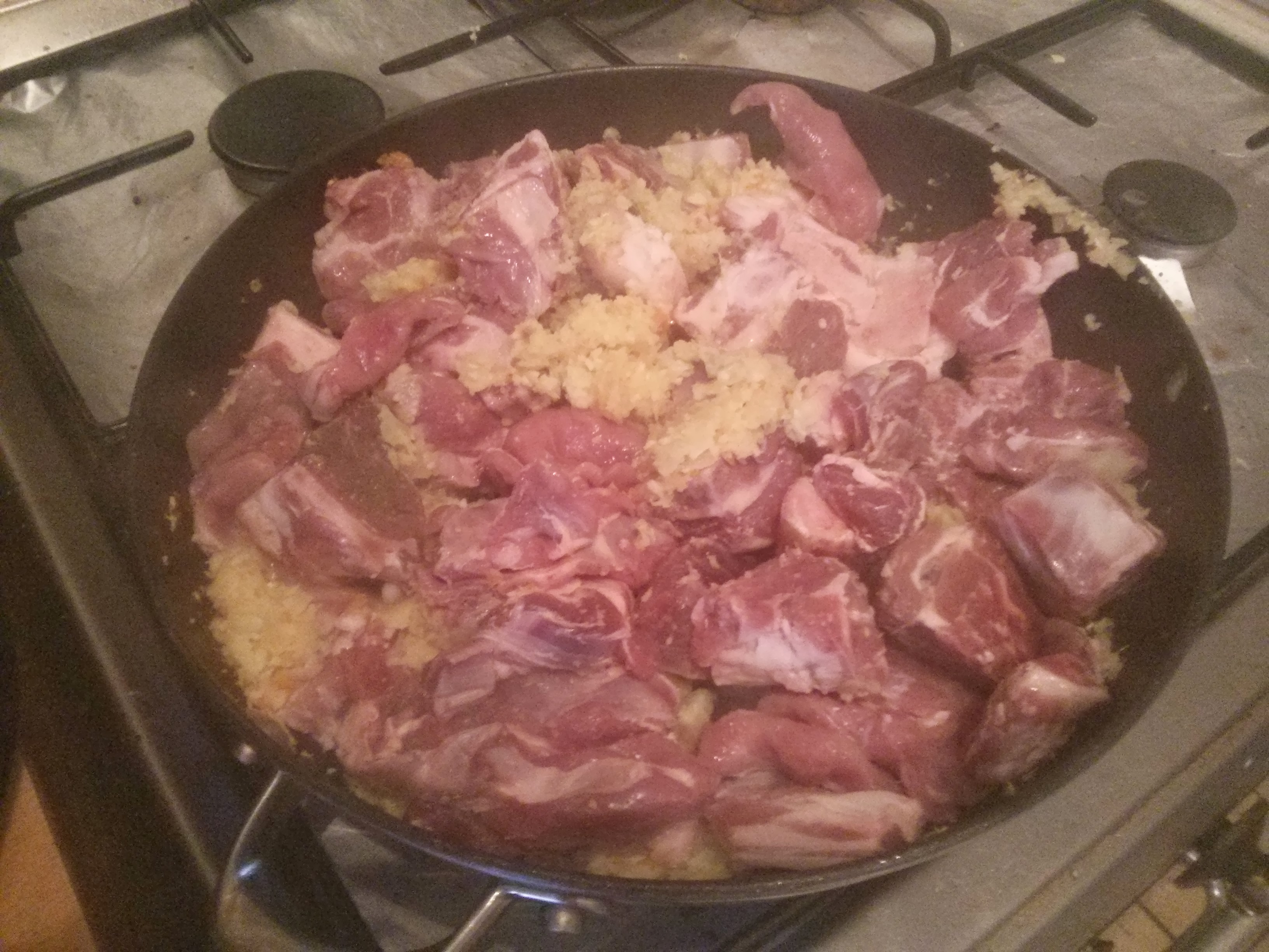At this point I was supposed to add spices… but I forgot and added the meat first! It shouldn’t be a problem as all I’m doing here is browning off the meat, and it’s got 9 hours in the slow cooker for the flavours to mix!