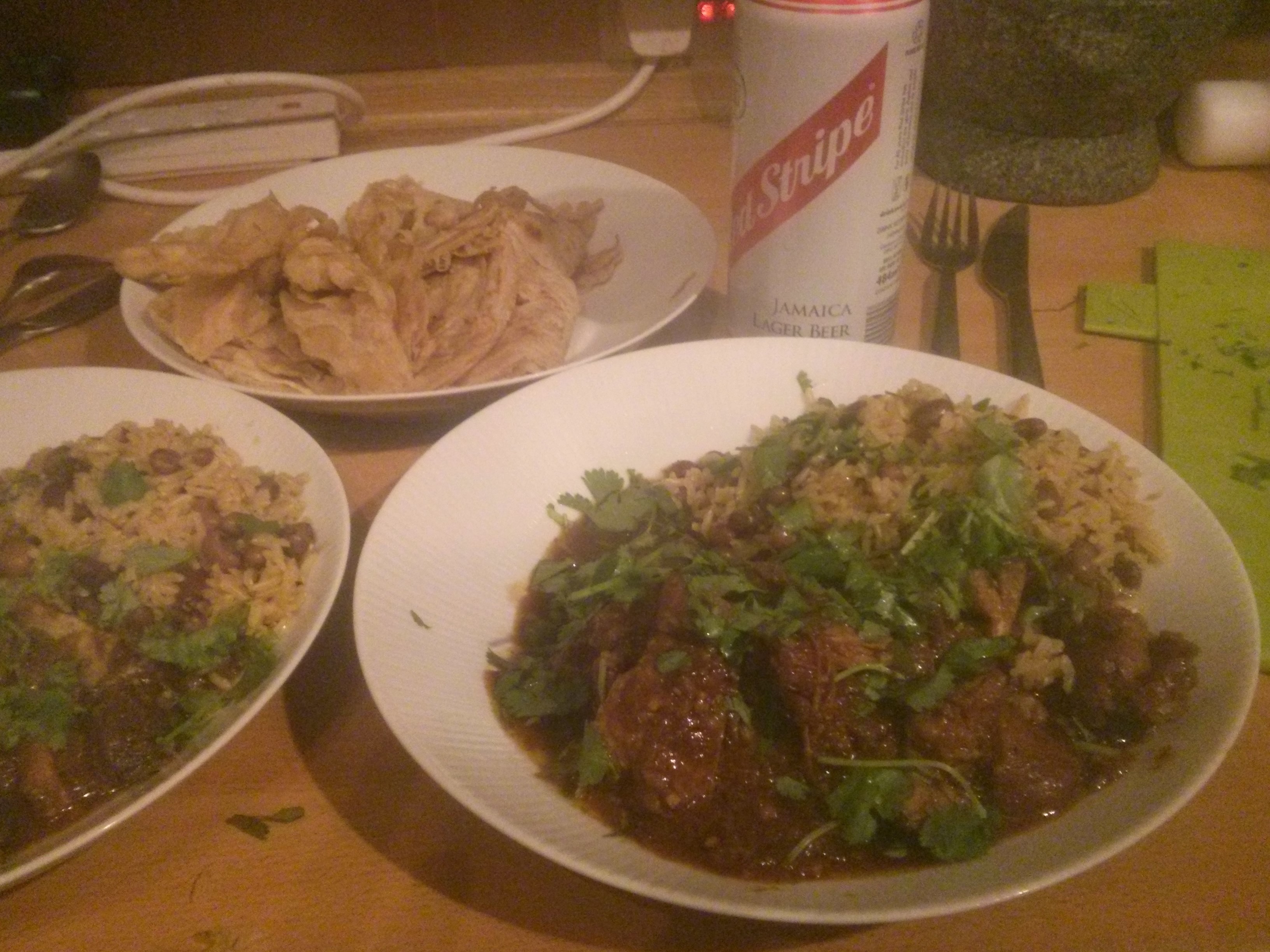 So as mentioned… rice & peas and roti. Oh and Red Stripe of course!