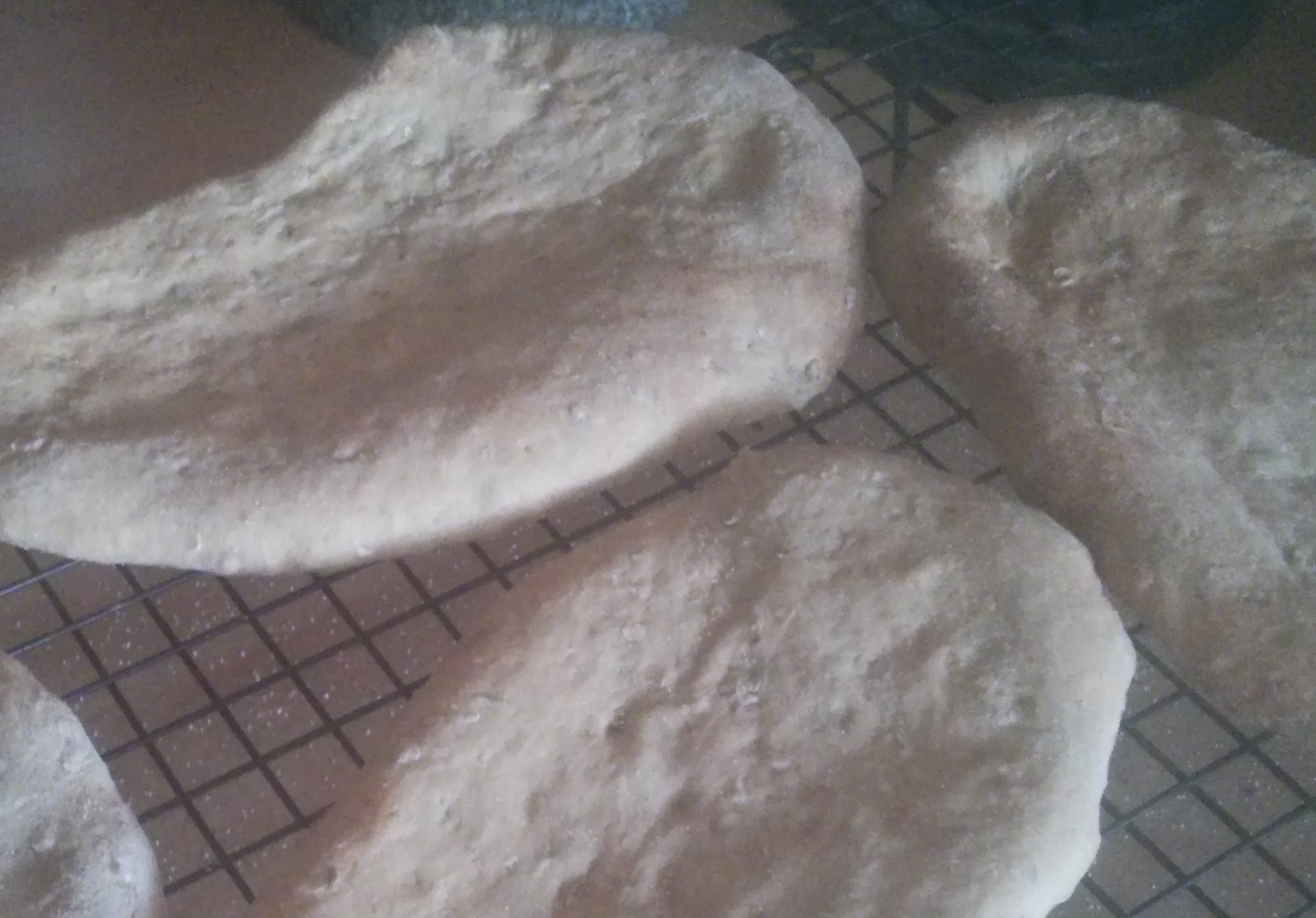 So I split the dough into 4 rather large balls, and roll then out into rough oval shapes.
