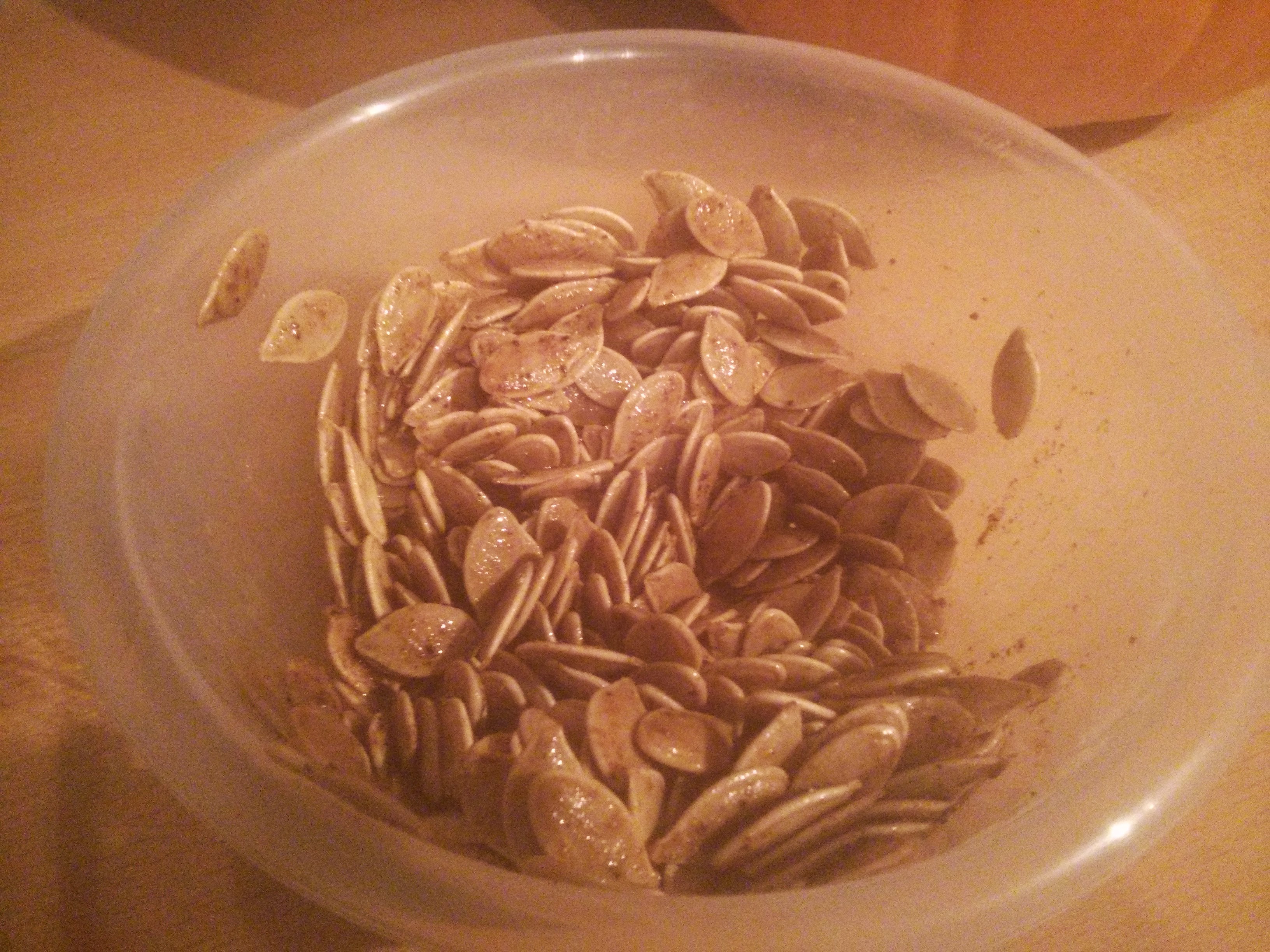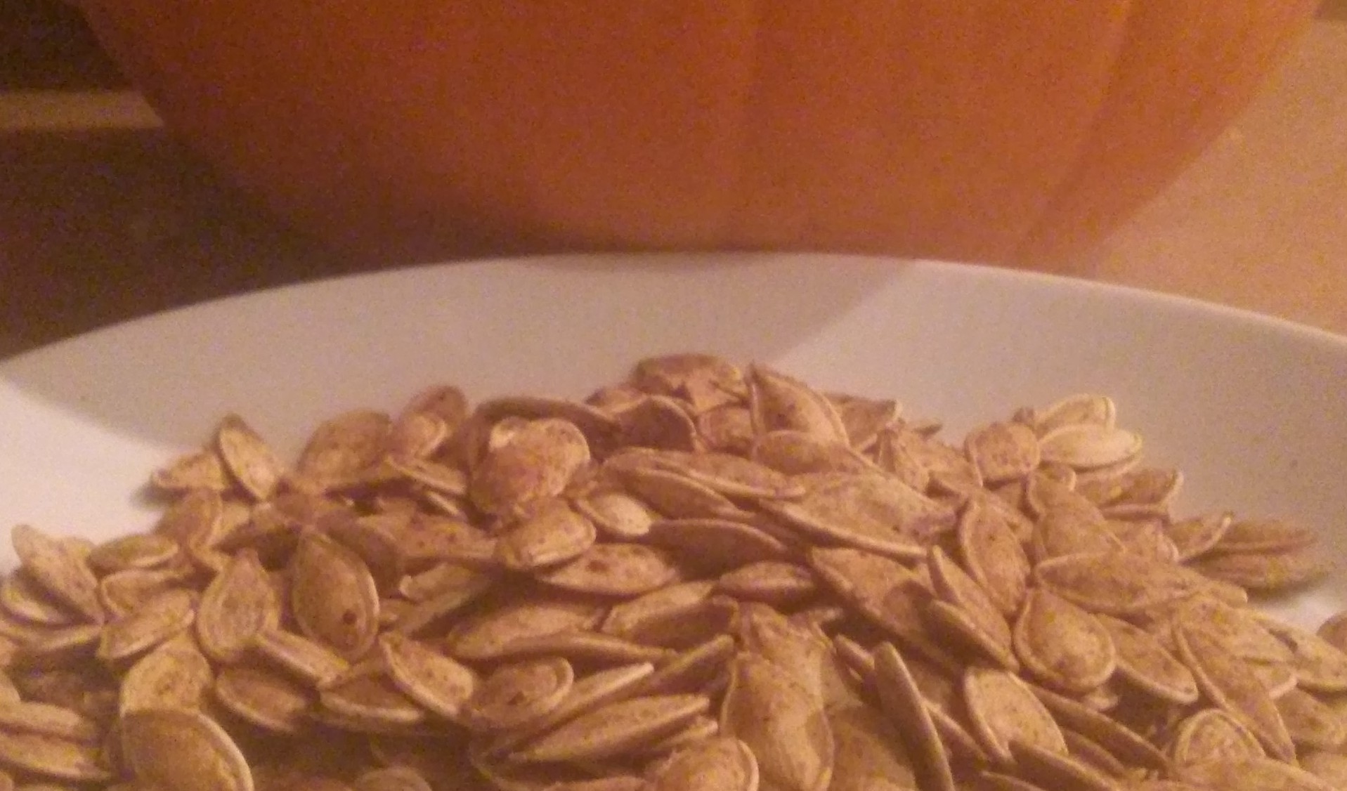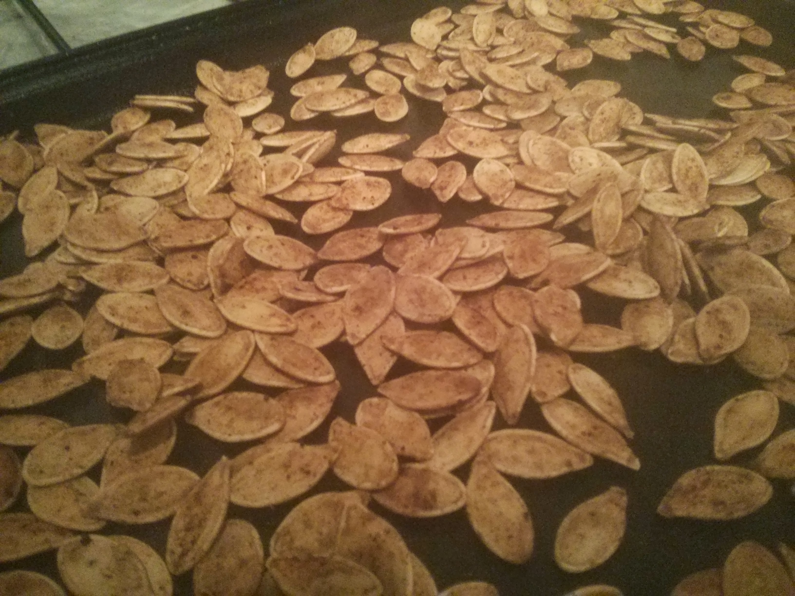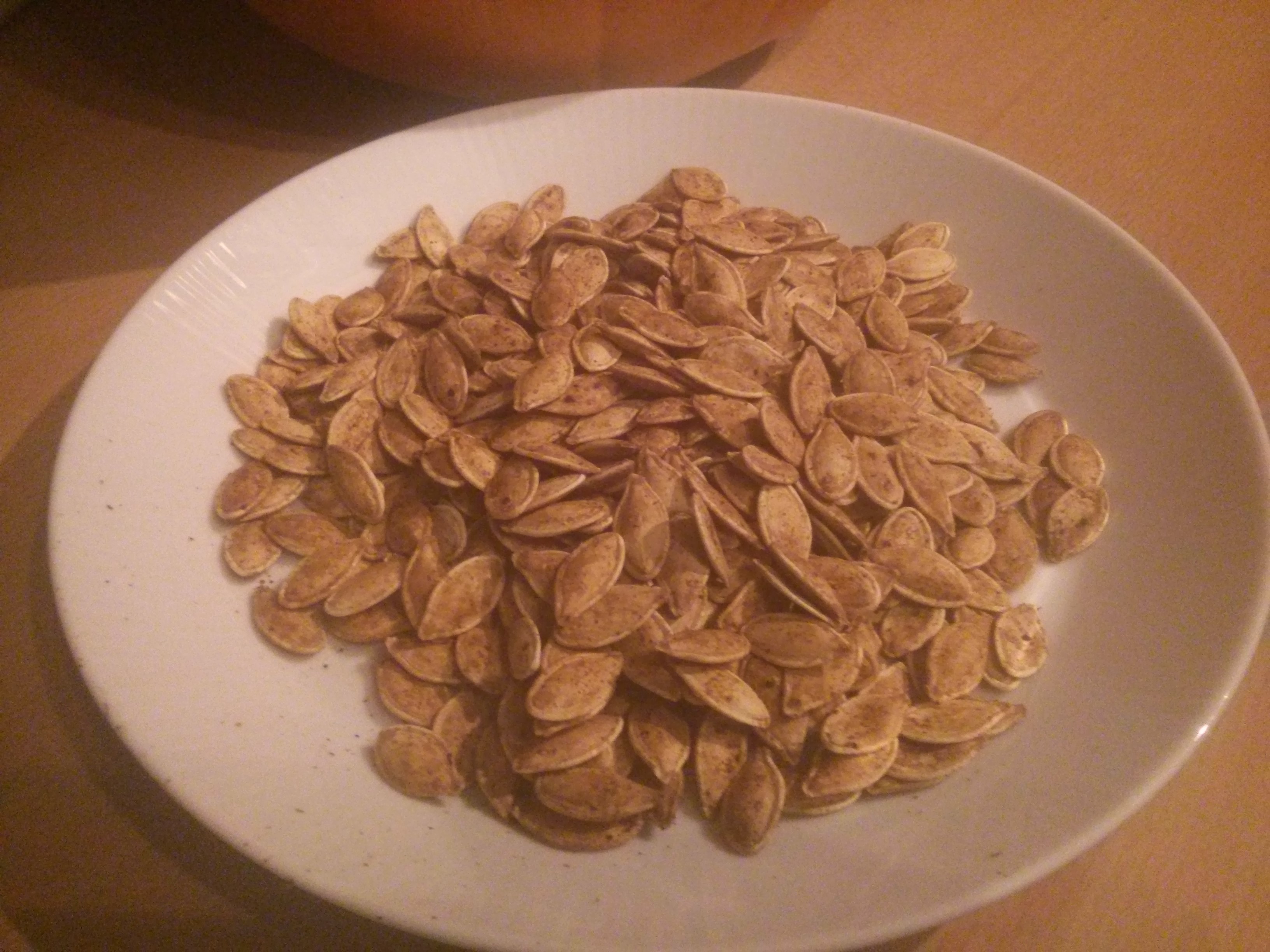 With Halloween coming up, and a pumpkin being carved, there are seeds to be used up! So why not a healthy spicy snack?
