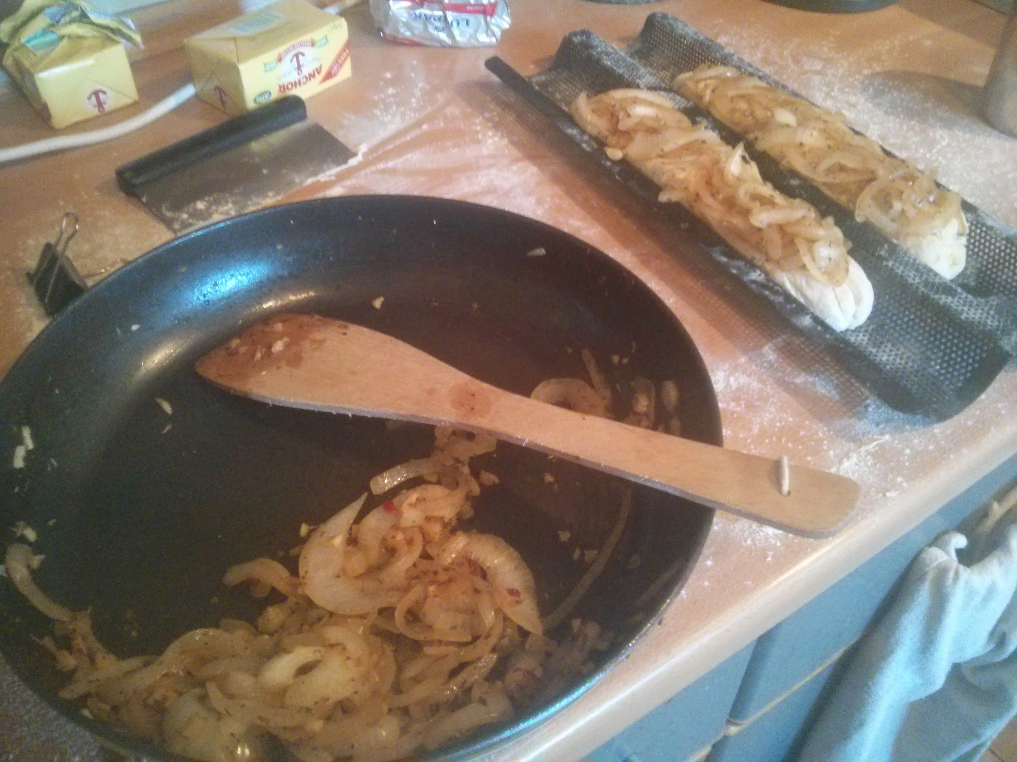 Then following the Jamie Oliver recipe I cooked up a couple of sliced onions with garlic and Italian herb seasoning.