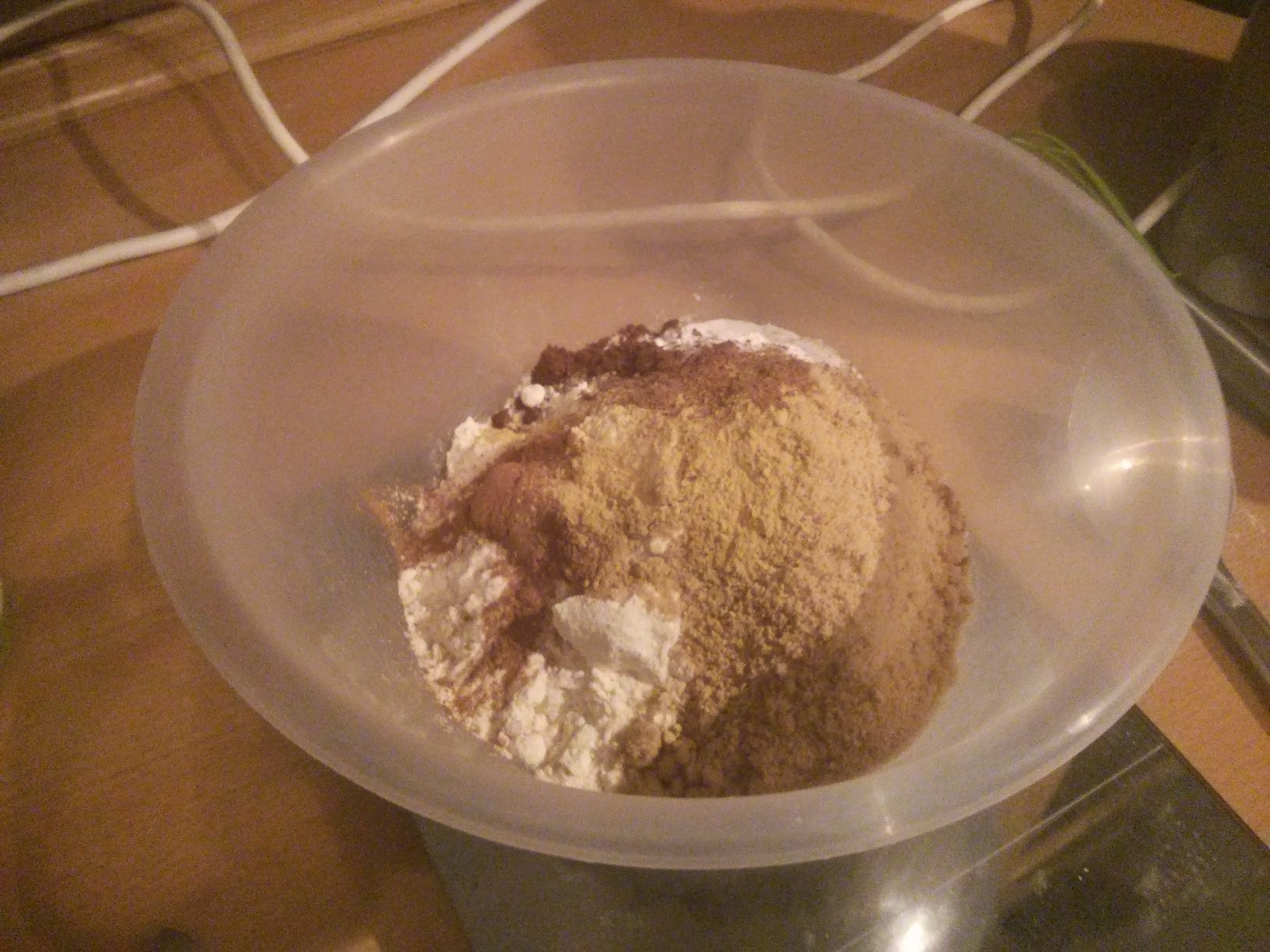 This is a nice easy food processor recipe. All the dry ingredients, plus the sugar, go into the bowl. The cloves were a bit overpowering here… maybe only 1/4 tsp next time.