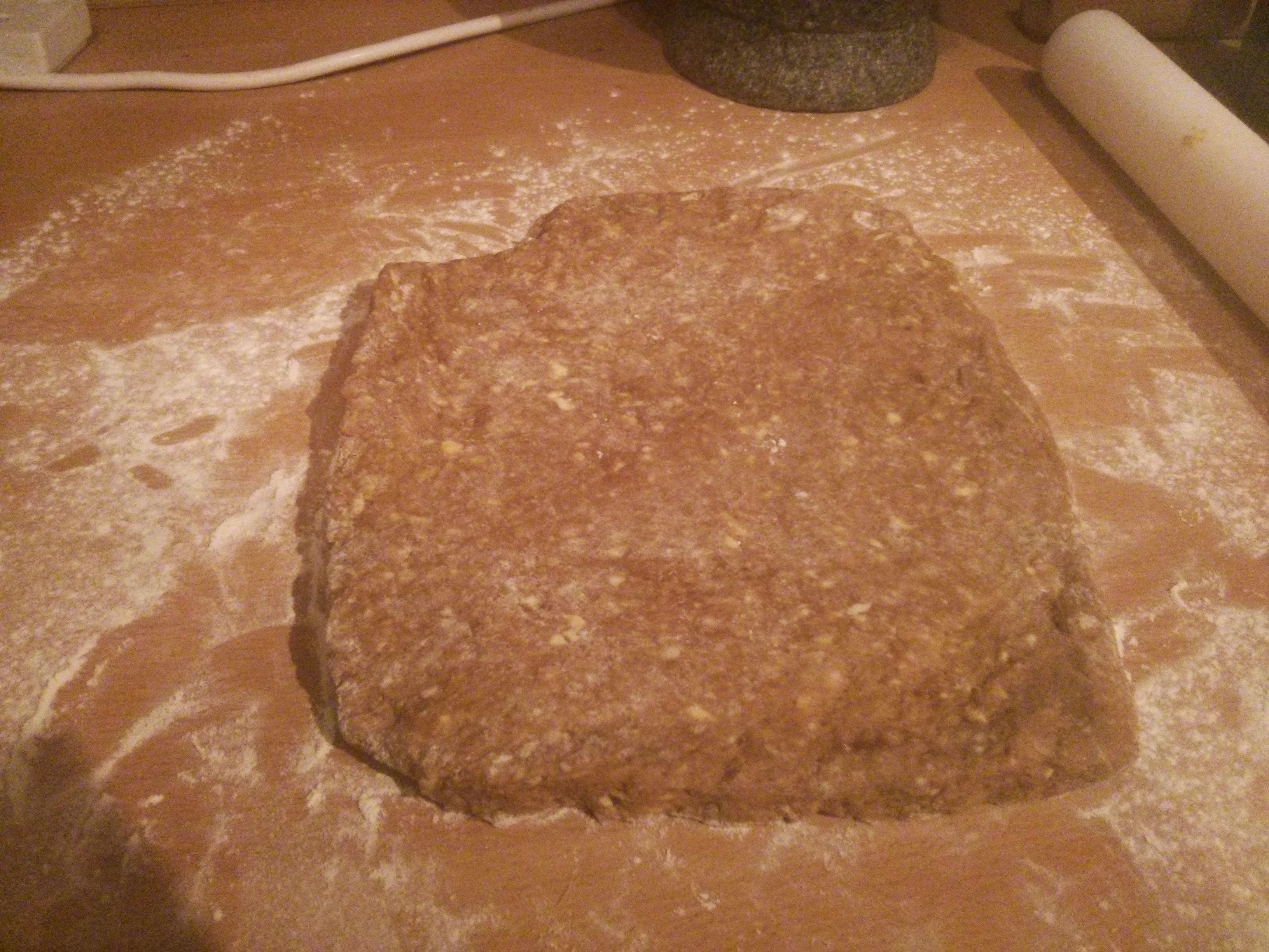 CameraZOOM-20131103181324914The dough is rolled out into roughly a rectangle.