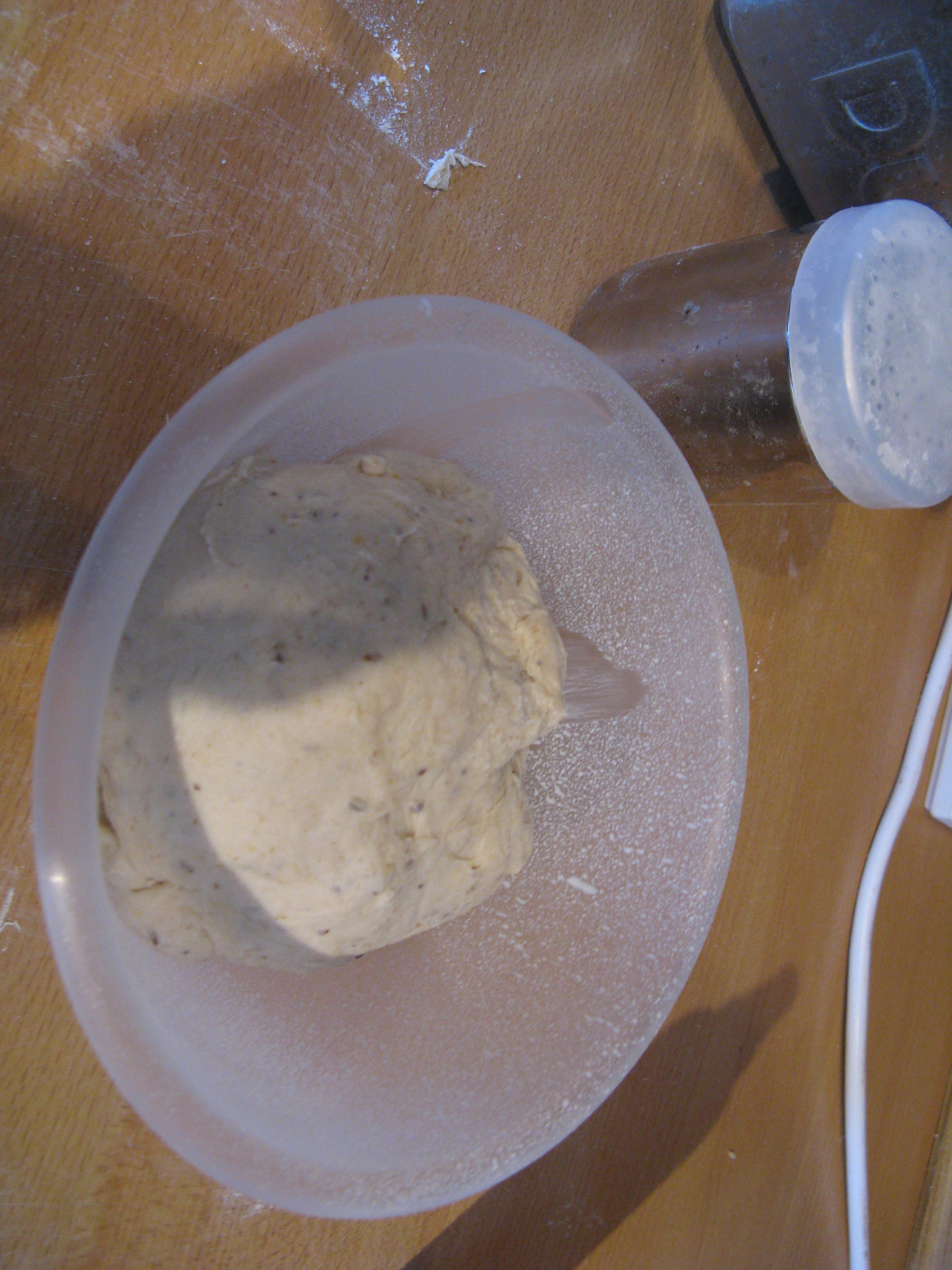 This then stands for 10 minutes to let the yeast get started before salt is added and it’s formed into a dough ball. Unfortunately I had a hiccup with the food processor and the dough managed to escape down the middle tube somehow…
