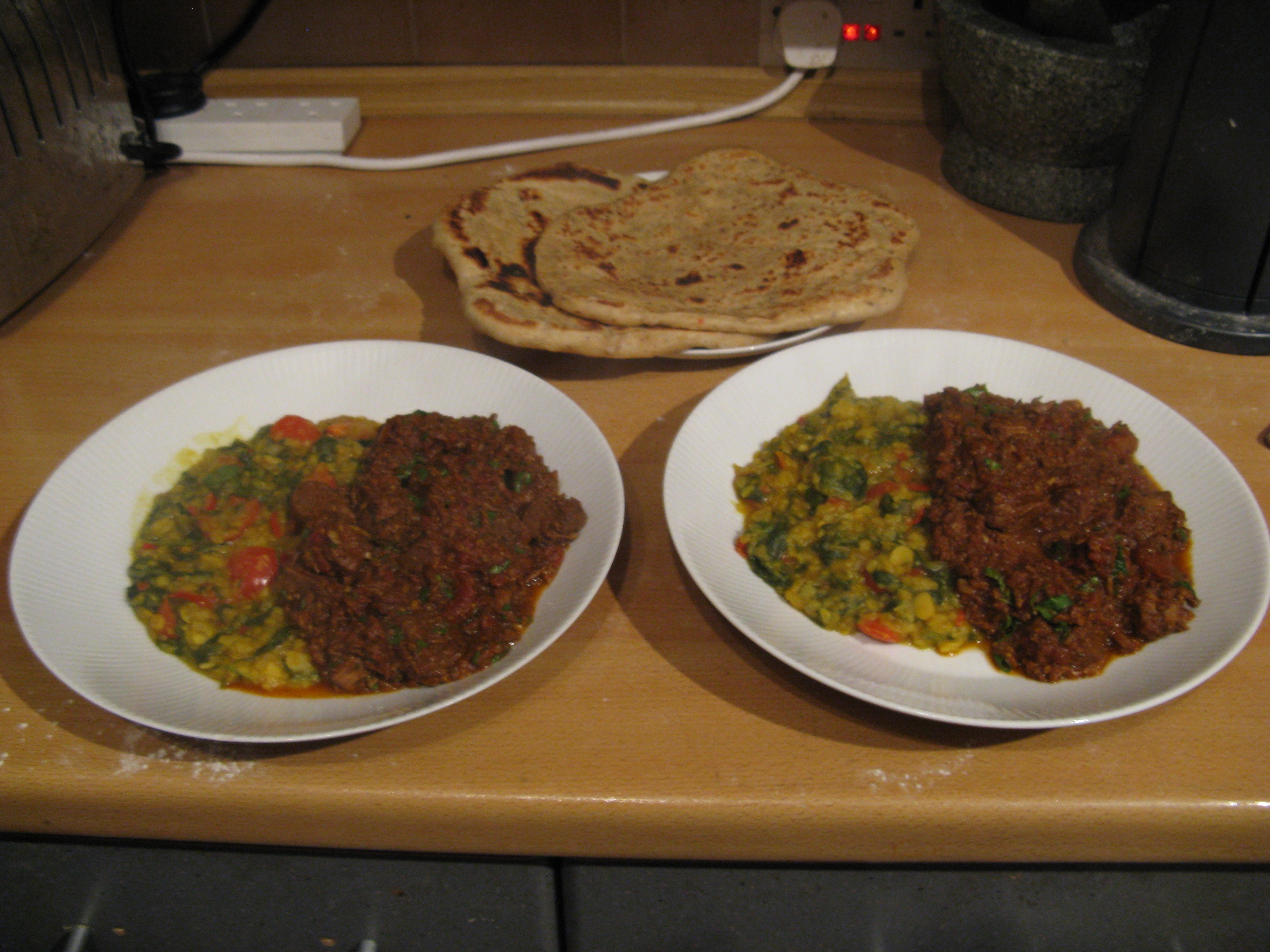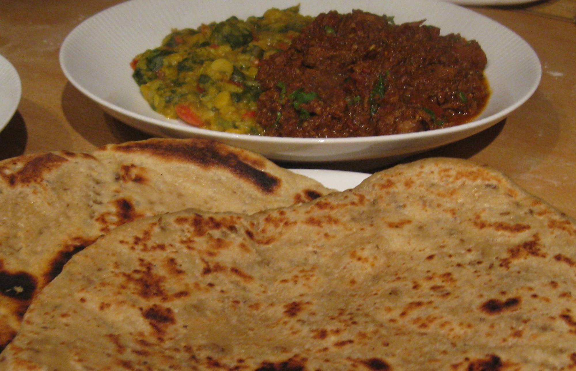 This weekend Soph cooked a lamb vindaloo, with a spicy dhal on the side, so I made naan bread to accompany it.