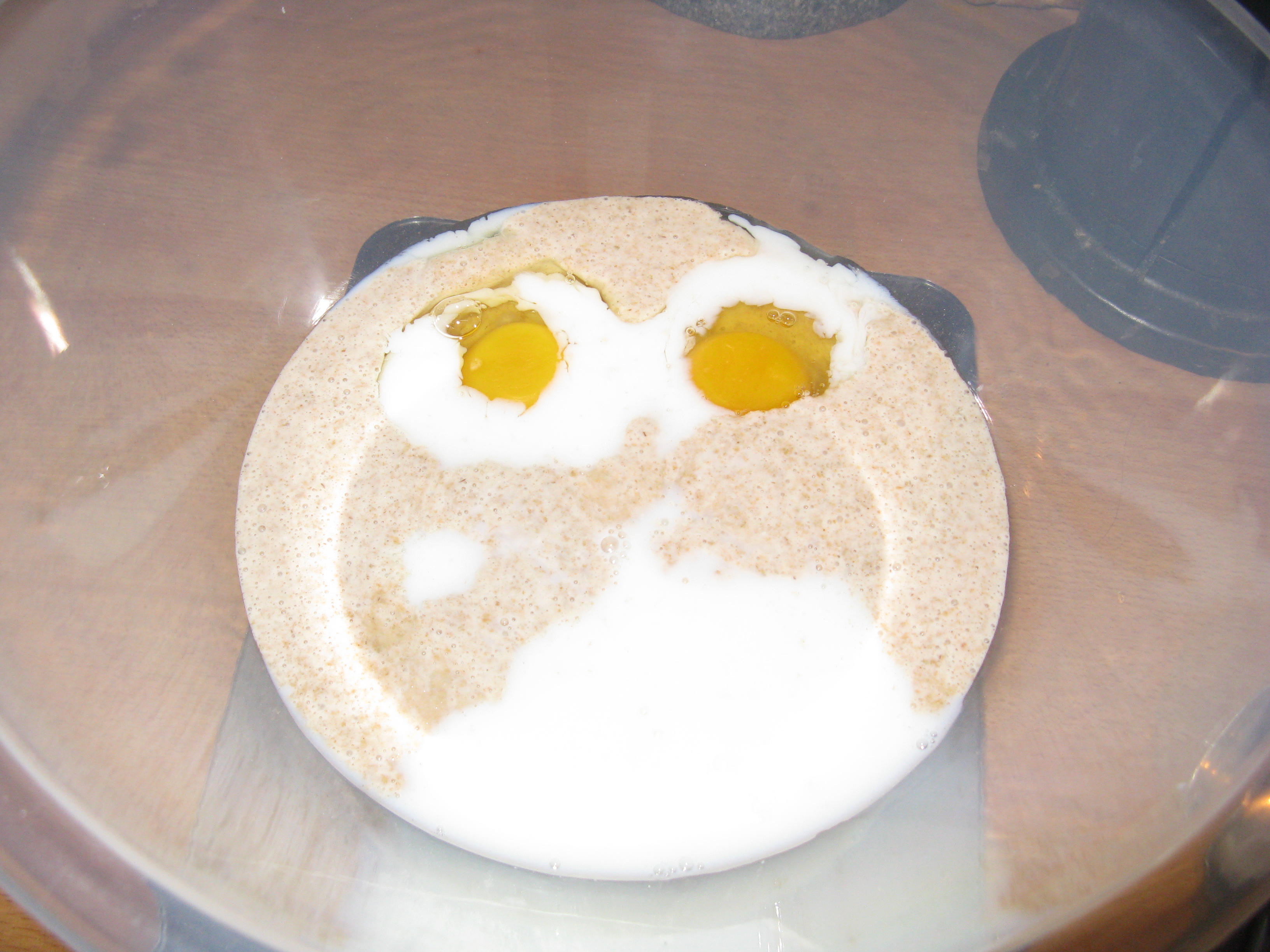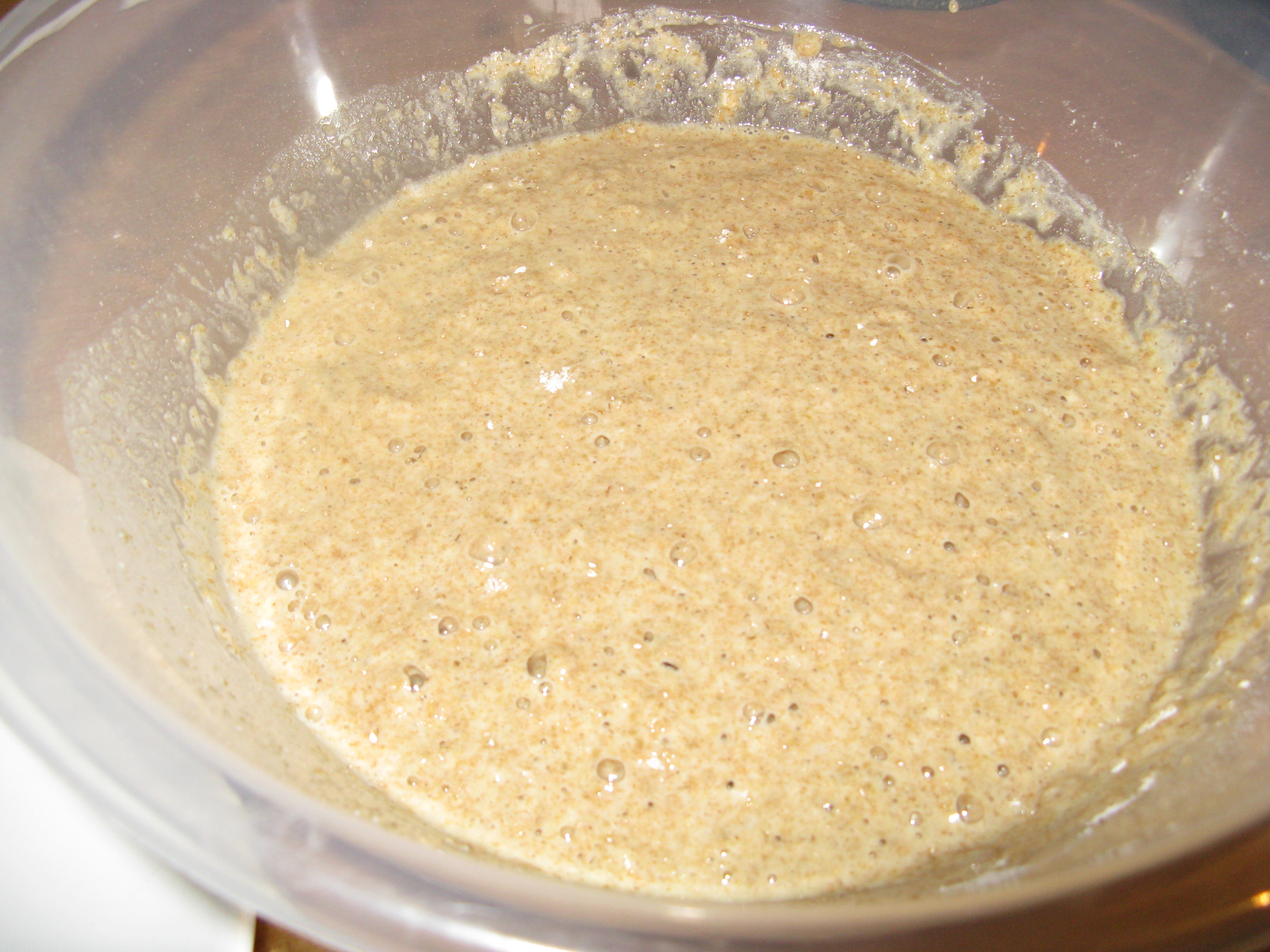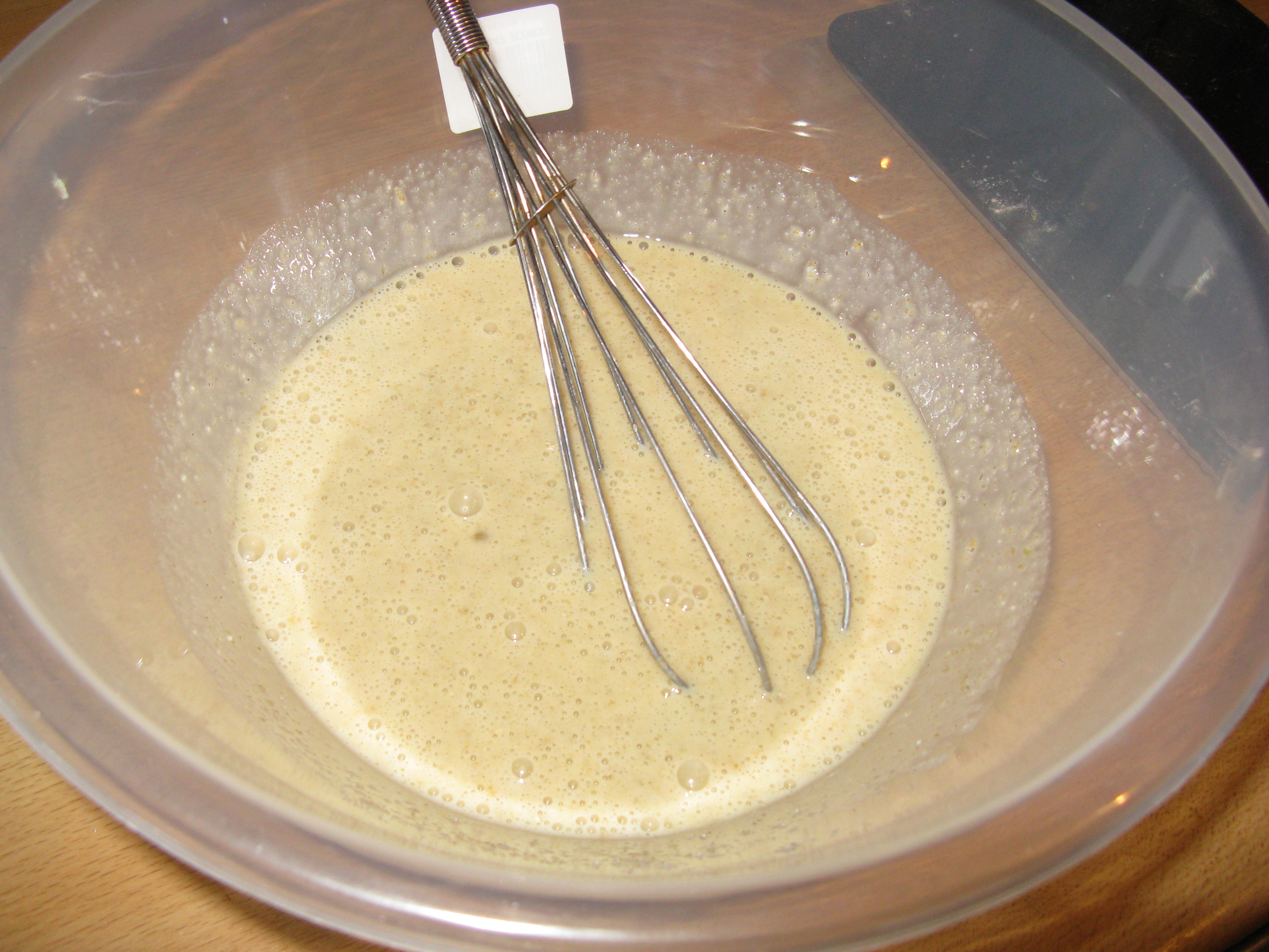 This then gets mixed briefly into the liquid, just enough so most of the flour is incorporated, but still with a few lumps (the less mixing at this point the better).