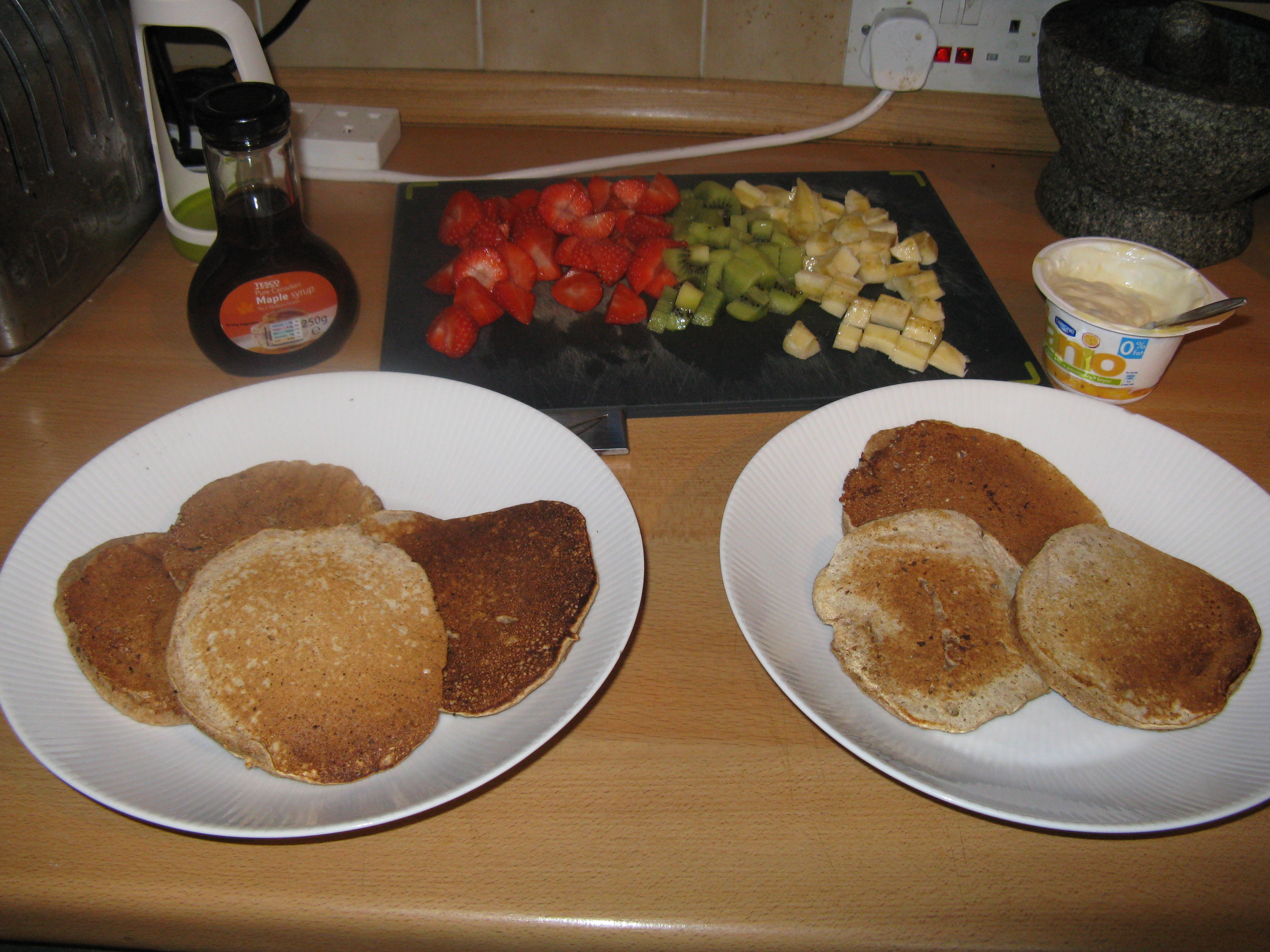 Mmm pancakes! They tasted great (helped by maple syrup of course!) and had a lovely fluffy texture. I’ll definitely be doing these again when I want a break from my daily bread.