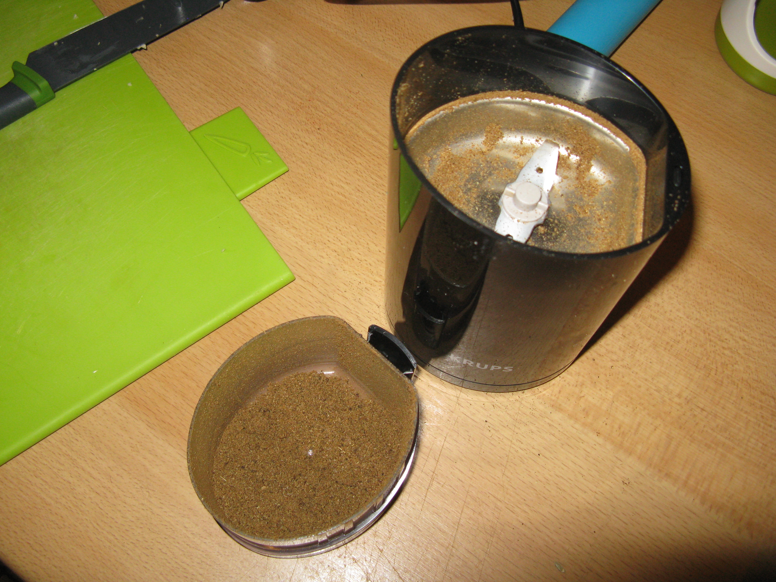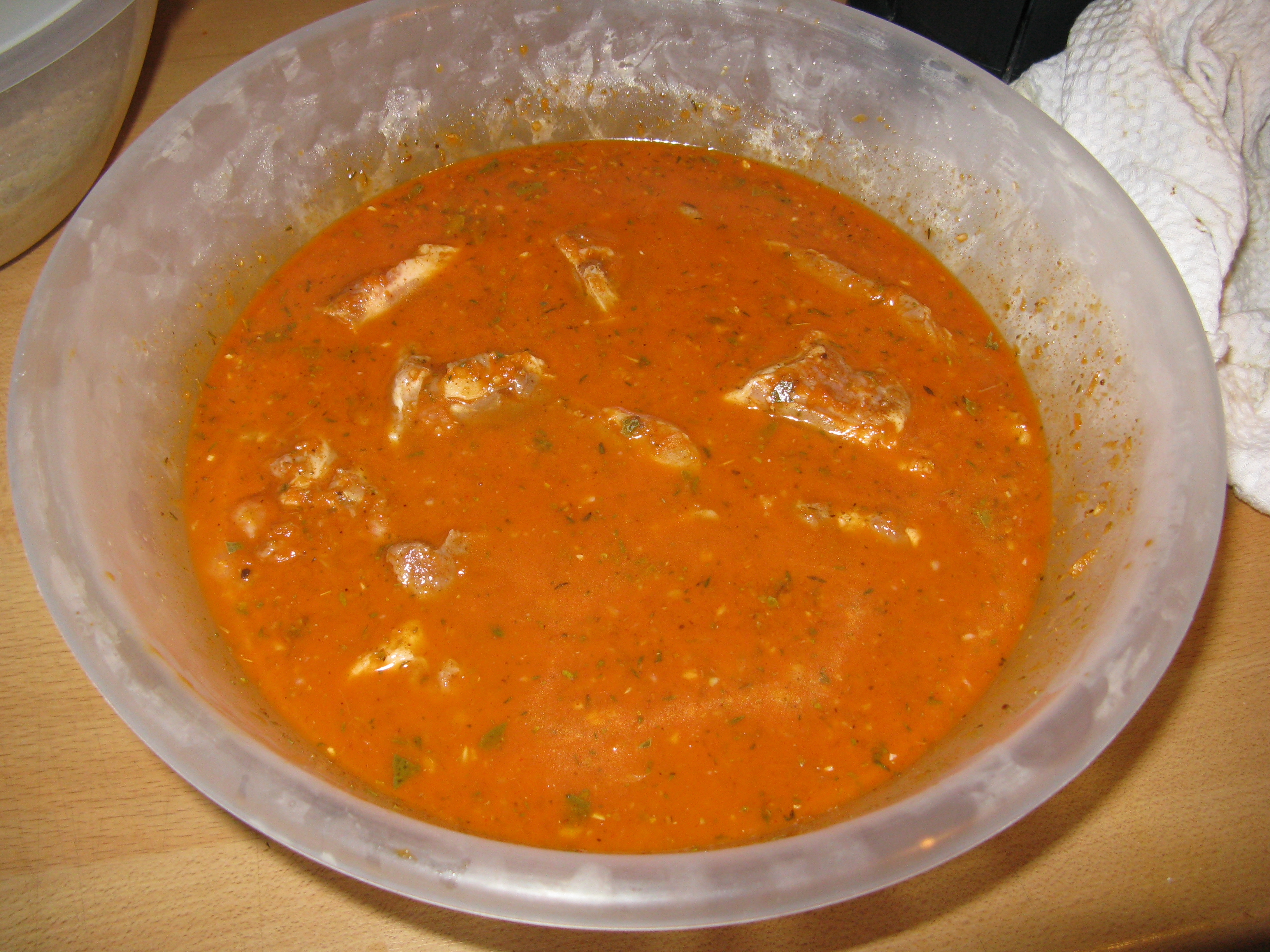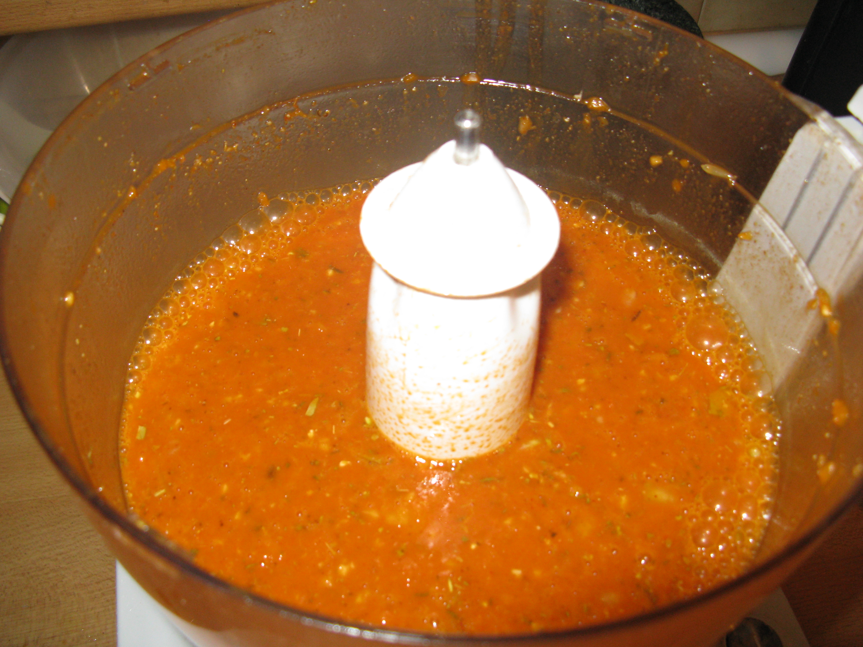 The rest of the marinade ingredients (everything but orange juice, butter & chilli) goes in the food processor.