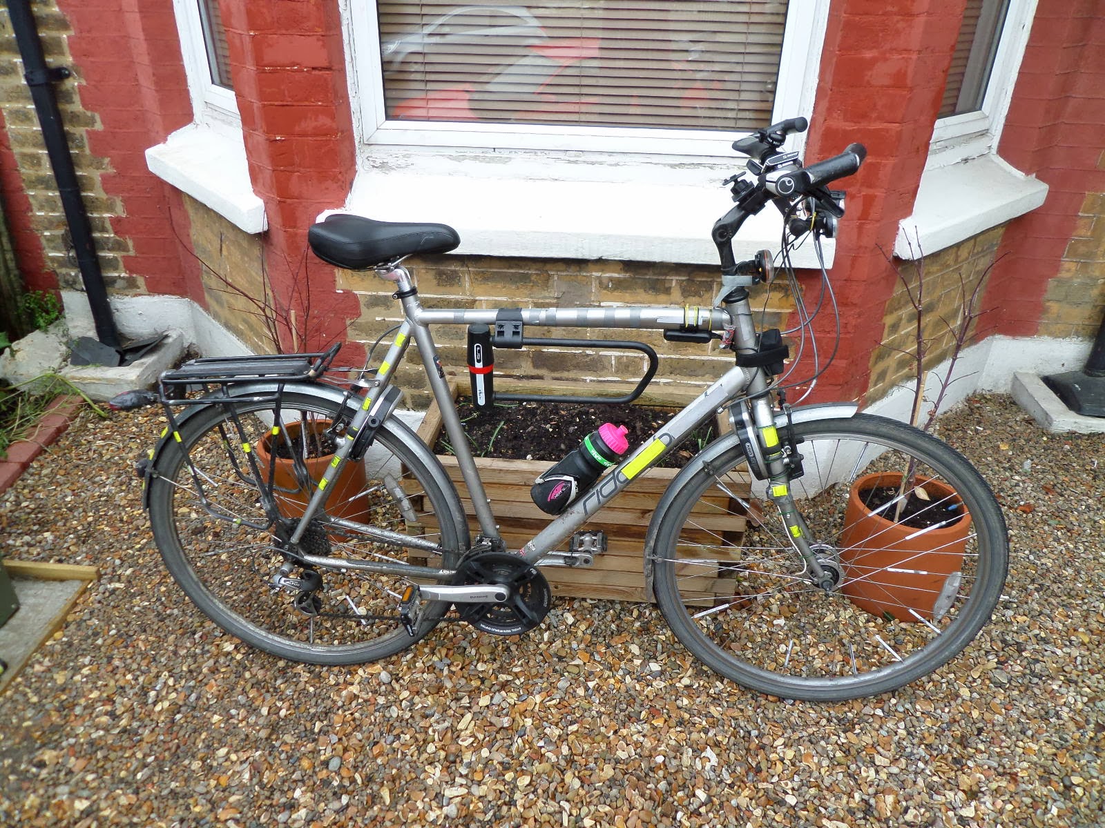 This is the main bike: a Ridgeback hybrid, and it’s marked and registered with the local bike shop.