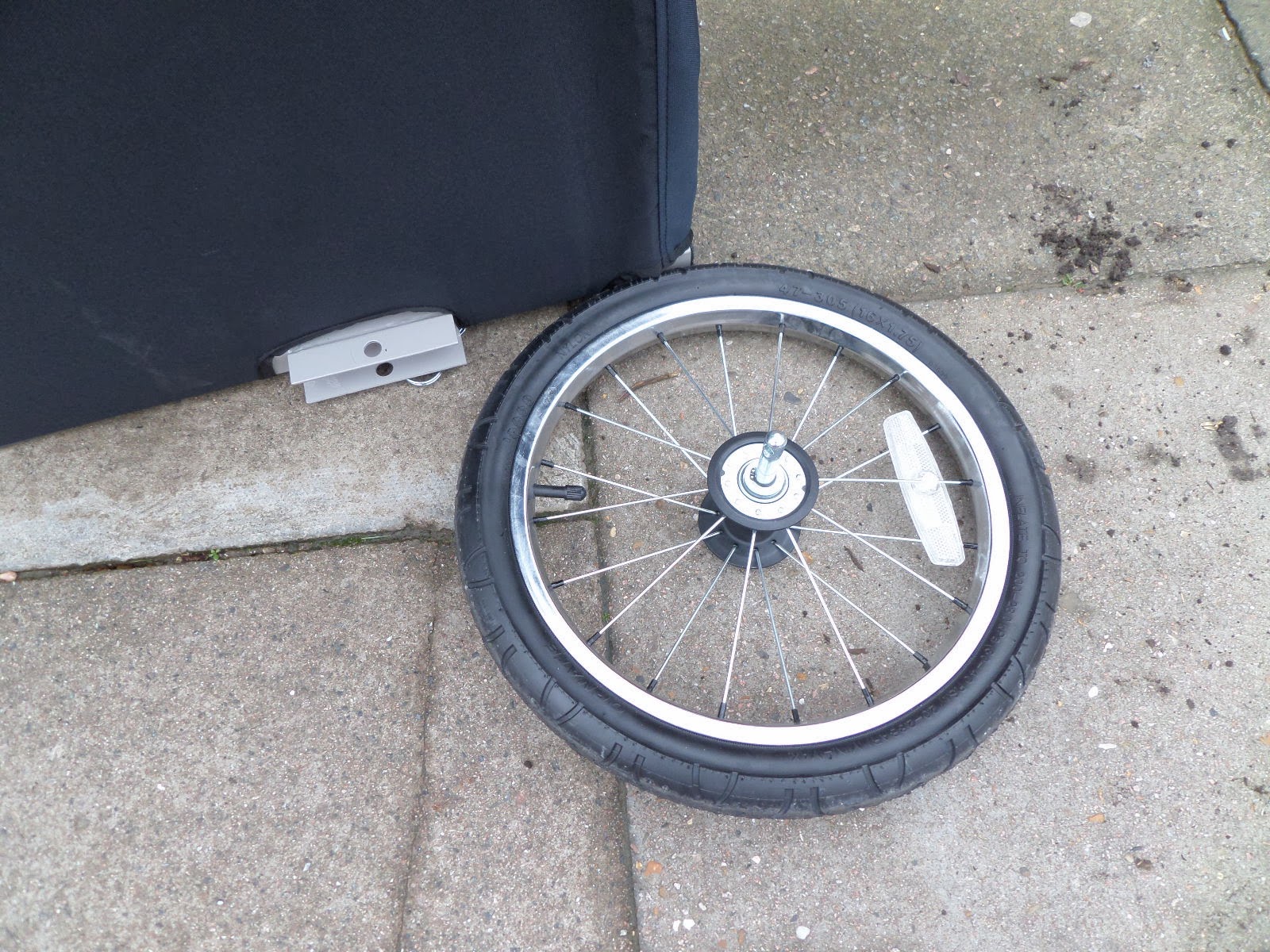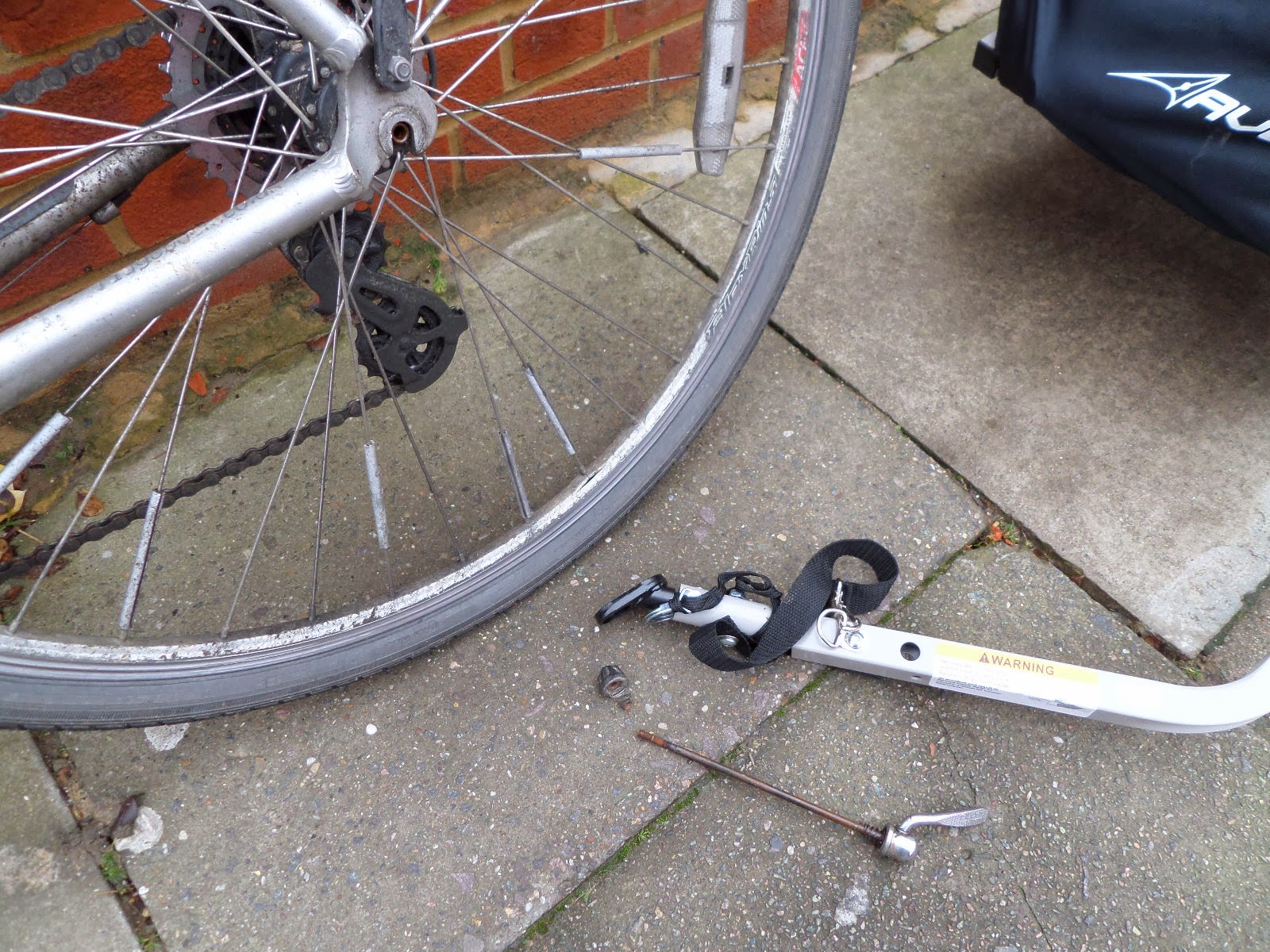 Now I’m not sure if my rear axel has seized up, or if it’s supposed to work like this, but the quick-release part stays attached to the axel, so I have to remove the entire axel to attach the trailer.