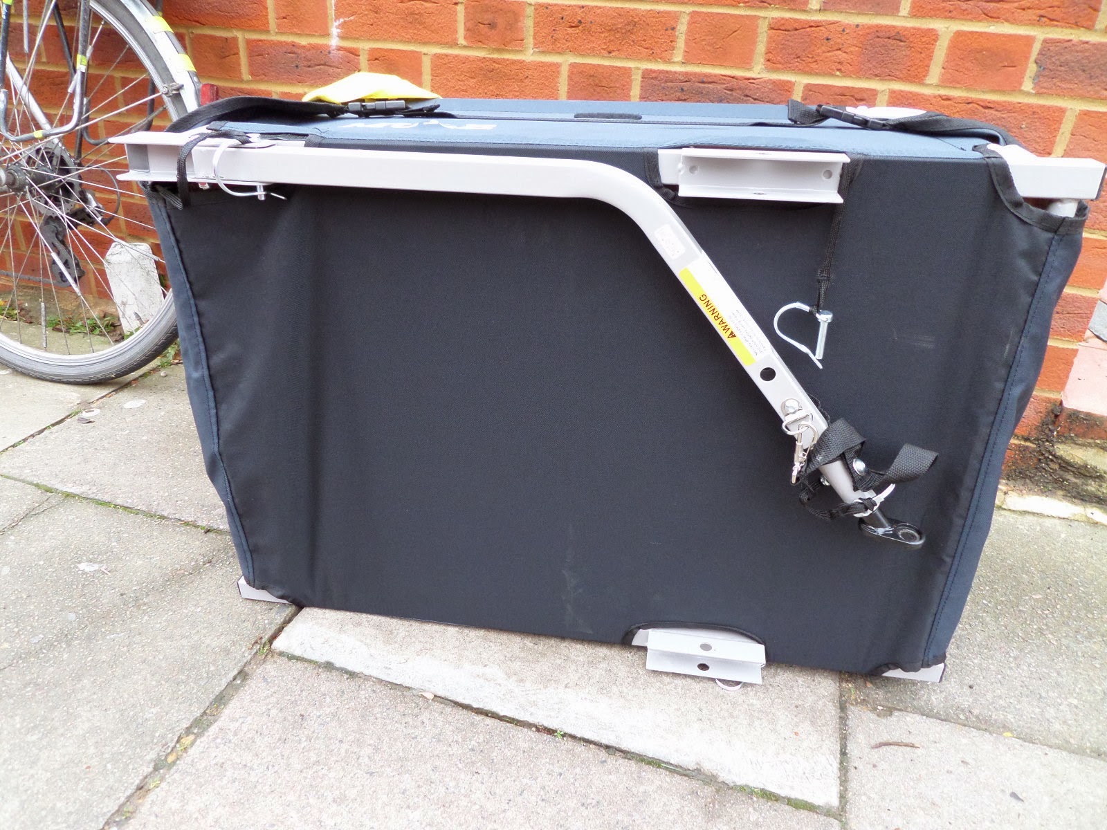 With both bars fixed, it’s on to the arm that attaches to the bike. This folds under the trailer for storage, and is clipped into place.