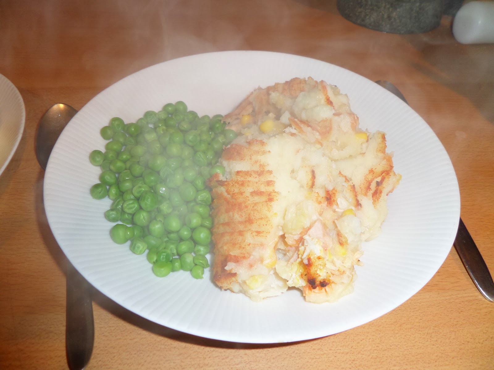 I was home late today, so Soph popped the pie in the oven: 200c fan for about 40mins, and we served it up with peas.