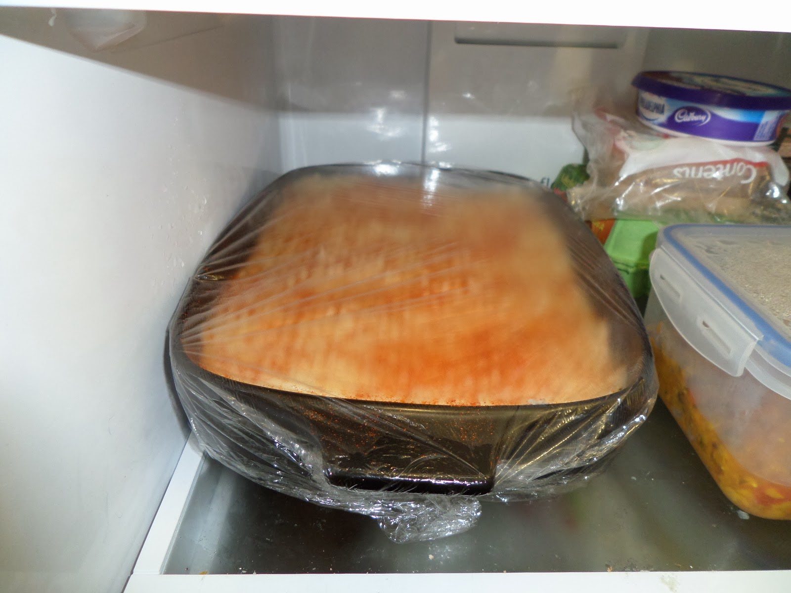 With those problems overcome I made up the dish. There was more potato in the chowder than I remembered, so it’s going to be a very potatoey pie! I forked the top, so hopefully we’ll get some crispy bits on top, and then sprinkled with paprika. Then it’s into the fridge until we cook it tomorrow.