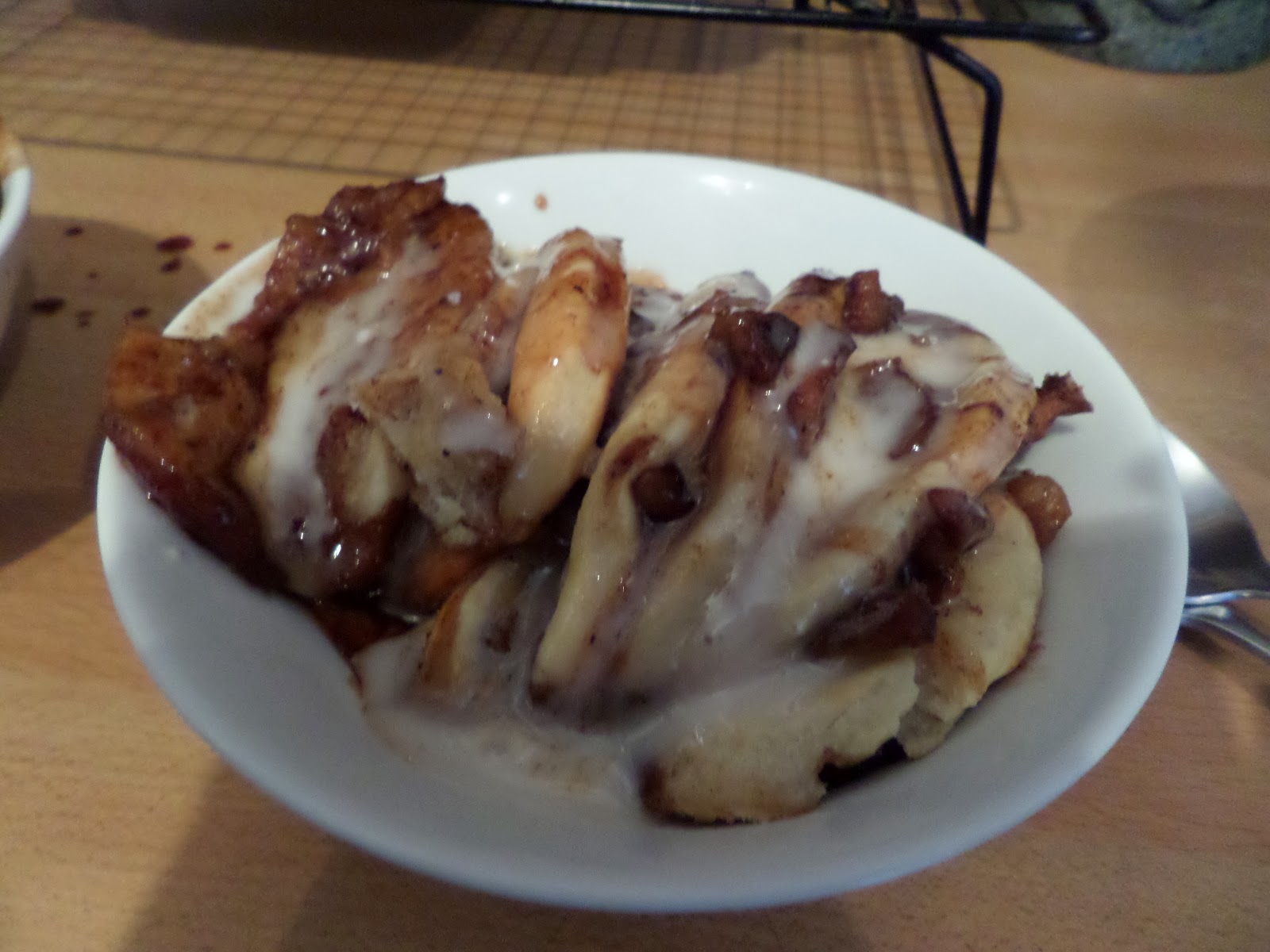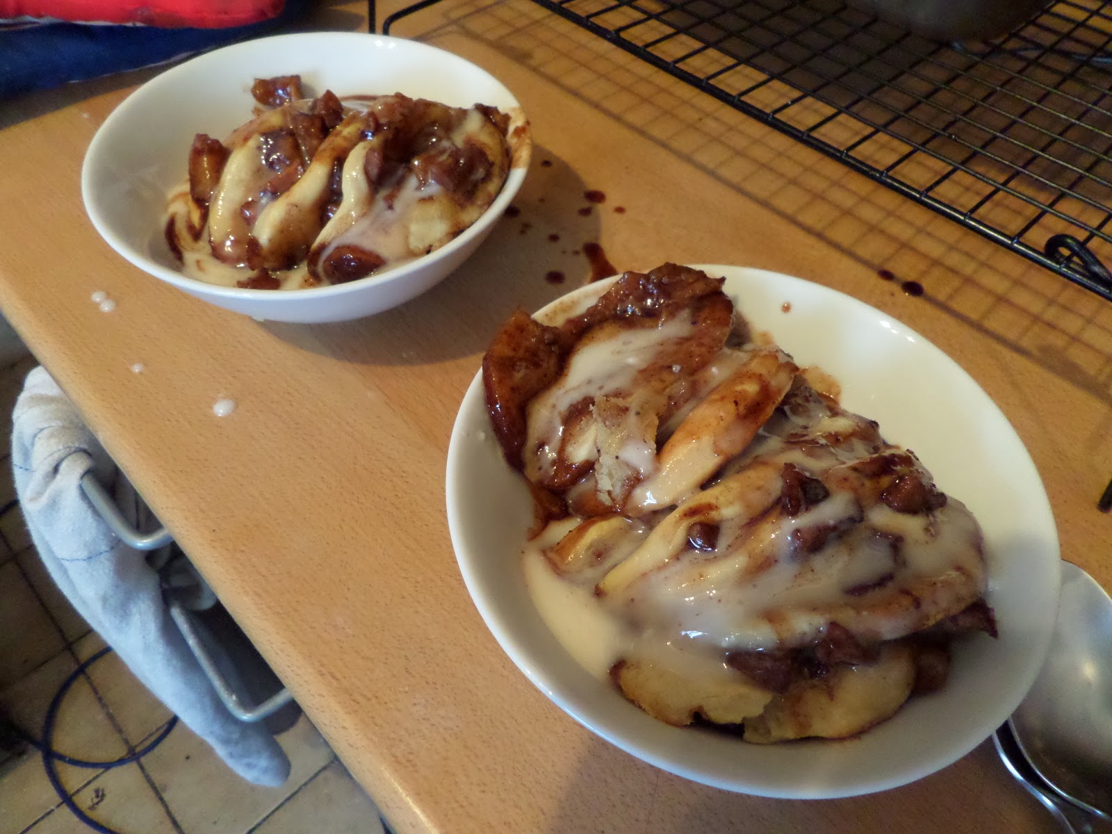 Then you’re supposed to let it cool, then glaze. We can’t wait for that, so we just serve it up hot and add the glaze into the bowl, where it becomes more of a sauce…