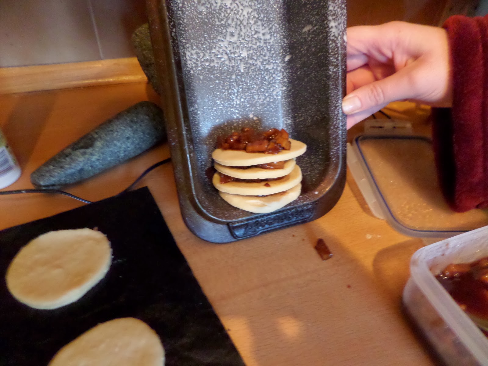 As I don’t want to be making things while hungover I’m making the biscuits and filling the day before and keeping in the fridge over night, so all I need to do on the day is assemble and bake. The bread recipe uses 8 biscuits, each halved and then flattened to the size of the tin, but it doesn’t look like the whole tin gets filled… So I’m going to make enough for 16 biscuits, but roll them thin and cut to the correct size to begin with.