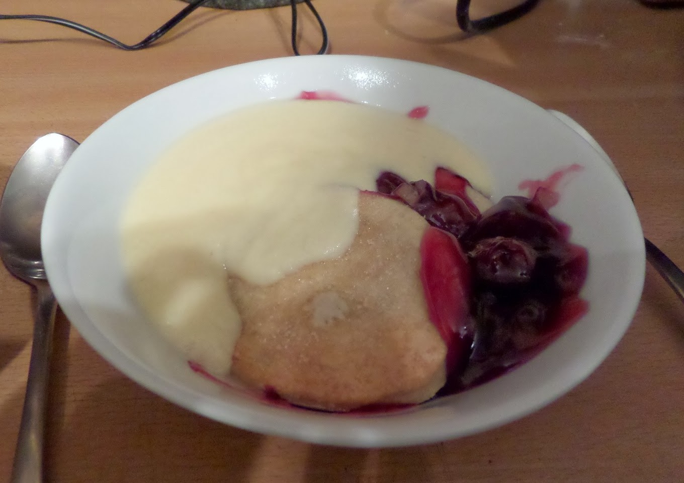 Well… what can go wrong? Extra sugary cherries, cobbler topping with more sugar, and custard with extra egg yolks. Of course it was an amazing pudding!