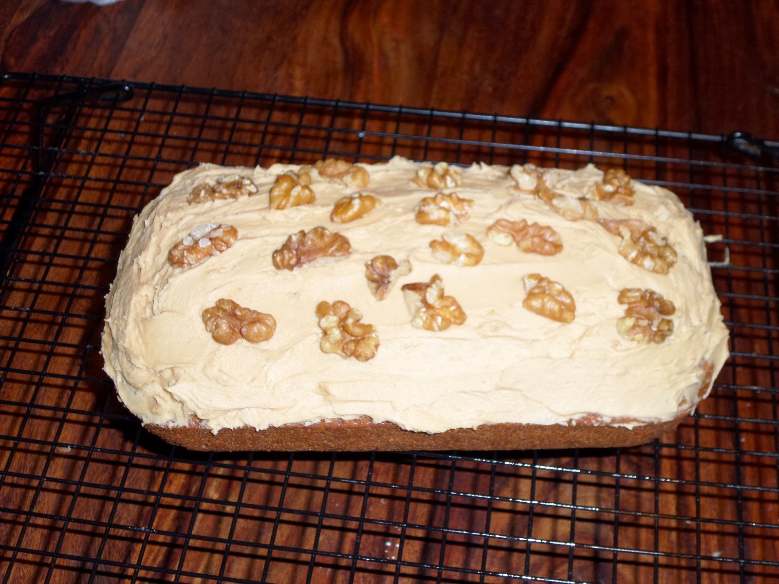 Unsurprisingly it’s delicious! The cake is lovely and moist, with a good walnut taste and a nice crusty top. The cake itself doesn’t have much coffee flavour, but the icing makes up for this, and is a lovely creamy contrast to the crisp top of the cake.