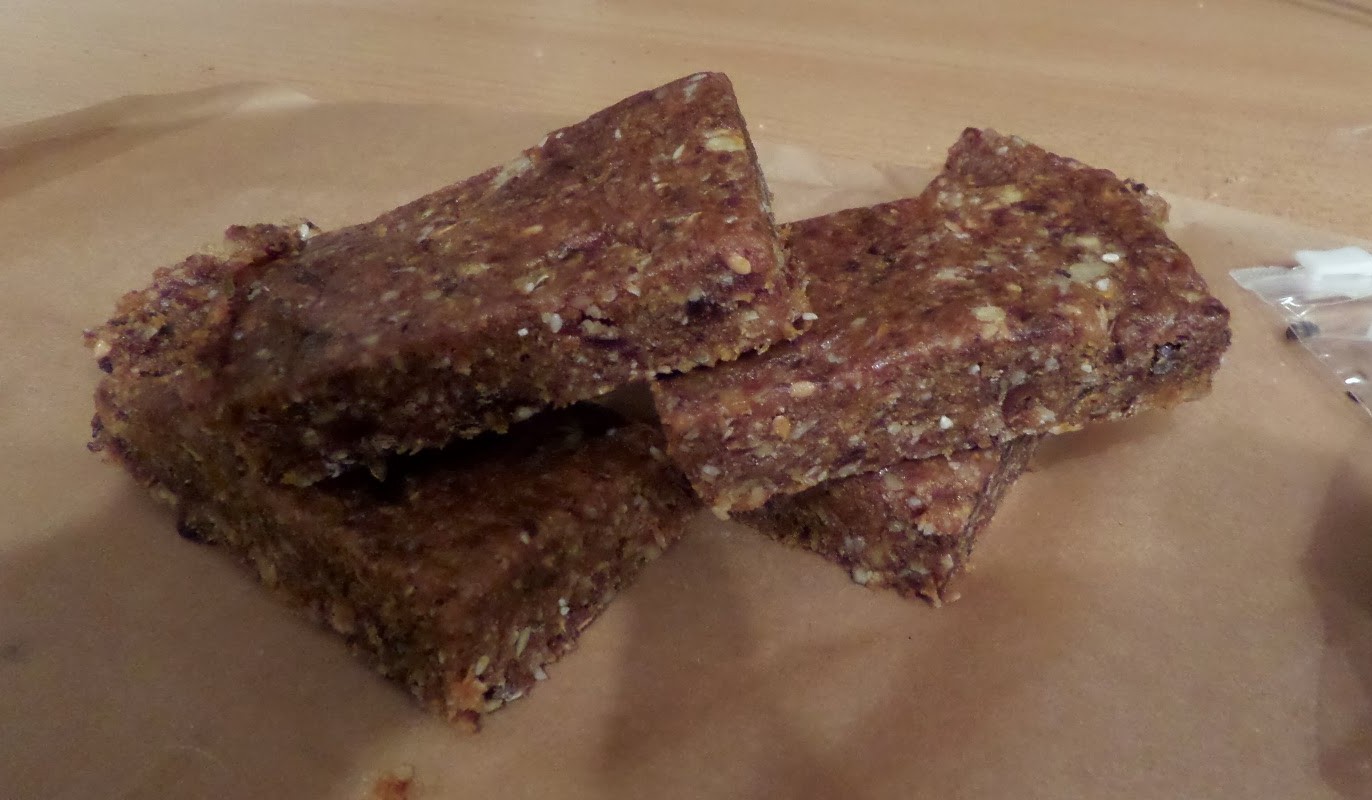 I packed myself some Eat Natural bars as an energy snack to be had at the half-way mark out and back. It struck me as I was snacking on these that I could make something similar myself by using up the various dried fruit and nuts we have lying around.
