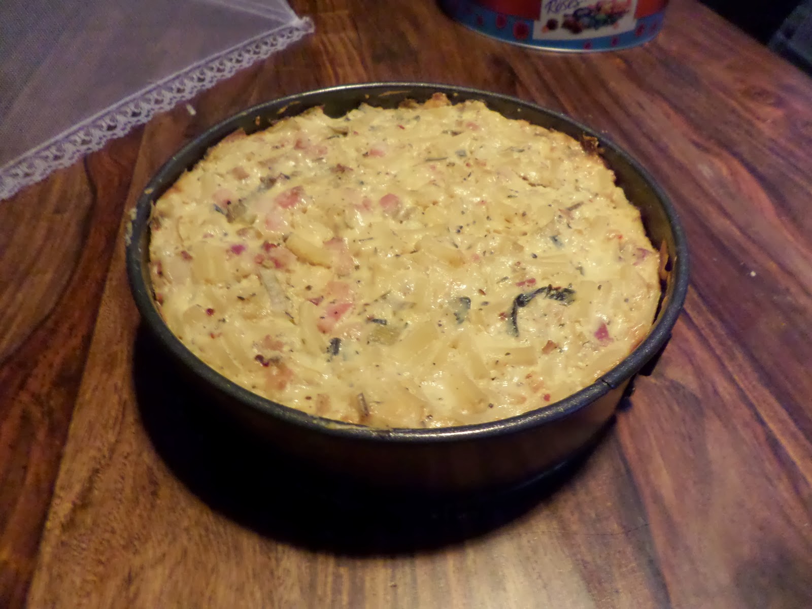 So the cheesecake mix goes on the breadcrumb base and cooks long and low in the oven, and comes out… looking like a cheesecake!