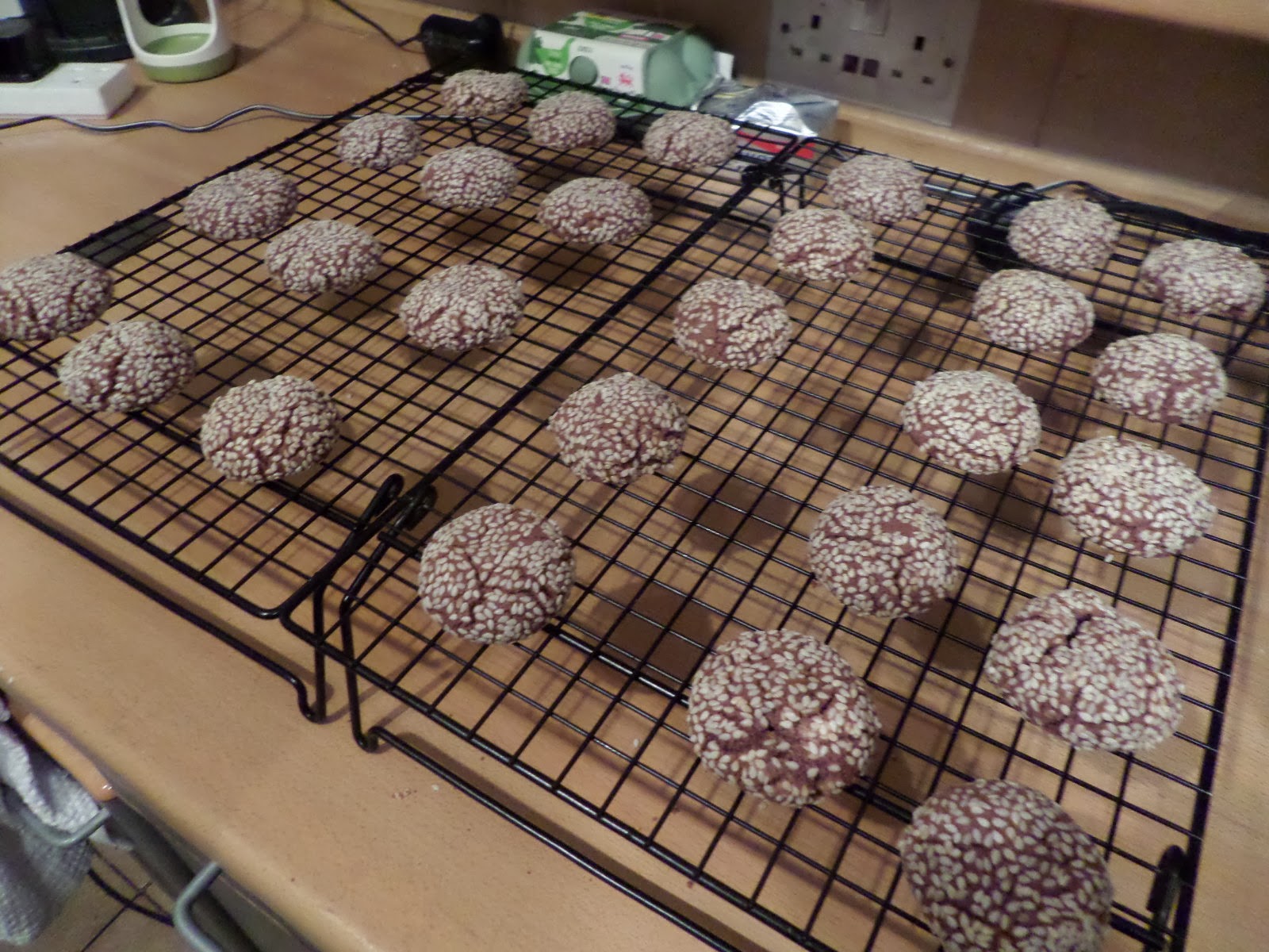 Bake cookies for 14 minutes, rotating halfway through, until puffed and starting to crack. Well… after 14 minutes mine were just stating to crack, so I gave them a couple of extra minutes, and I think they could have taken more as they weren’t that cracked. If I did them again I’d do them for 16 minutes before checking.