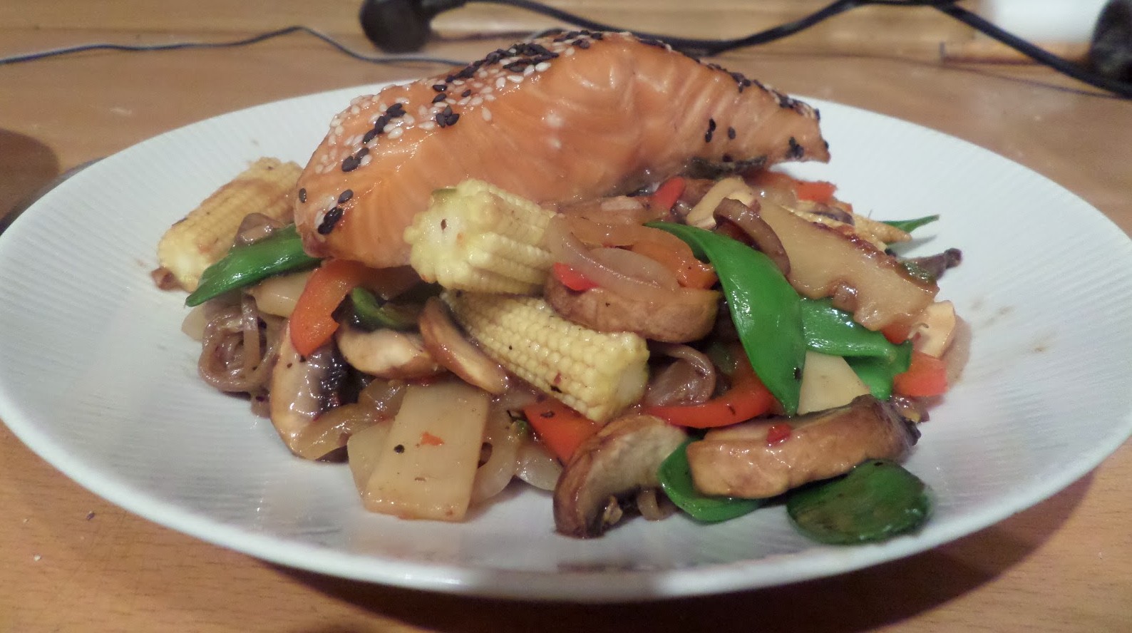 I think this might be our best Stir Fryday. The salmon, while slightly overdone by our standards (so probably perfect according to the hoi polloi :P ) tasted great with the teriyaki sauce and crispy veg. The soba noodles, unlike regular noodles, actually had a taste! We’ll be using soba noodles again.