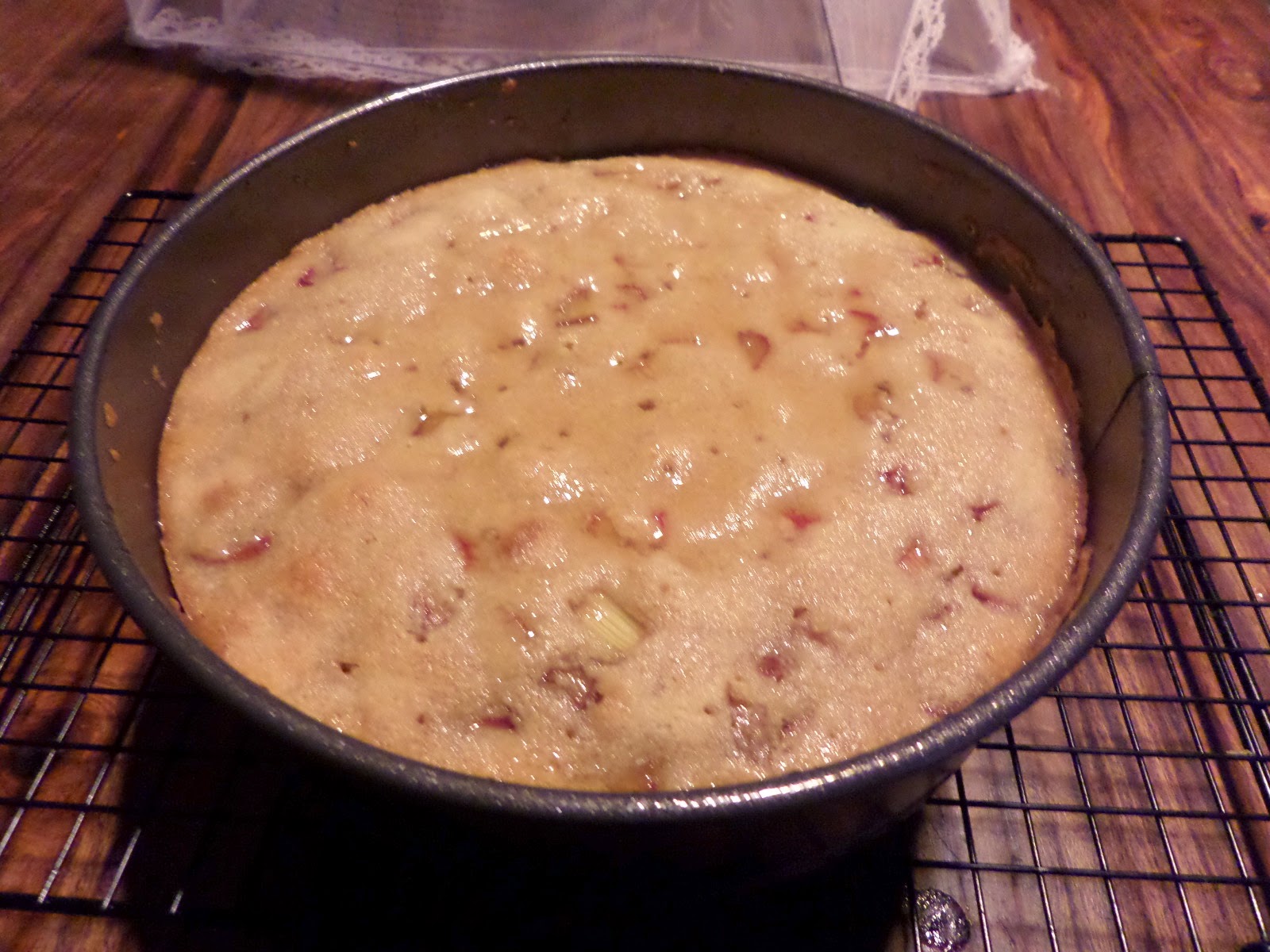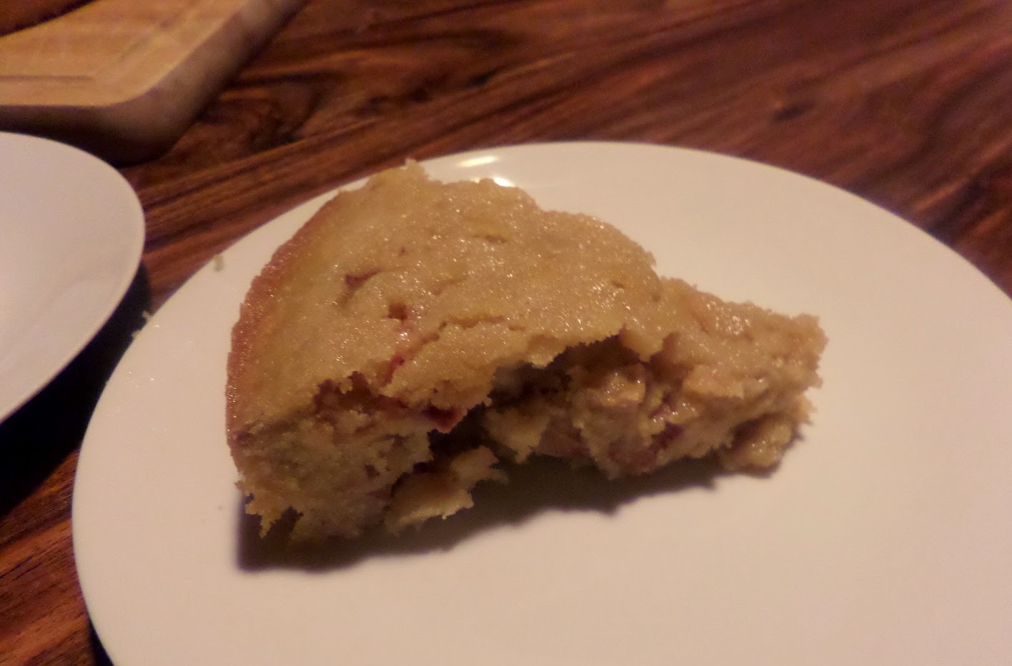The rhubarb really works to cut through the sweetness of the cake. However it’s only really cake for a outer few centimetres: the middle was clearly more of a pudding. A few more minutes in the oven are clearly required to make it into an actual cake. But the flavours are great, and I wil be having another large slice soon!