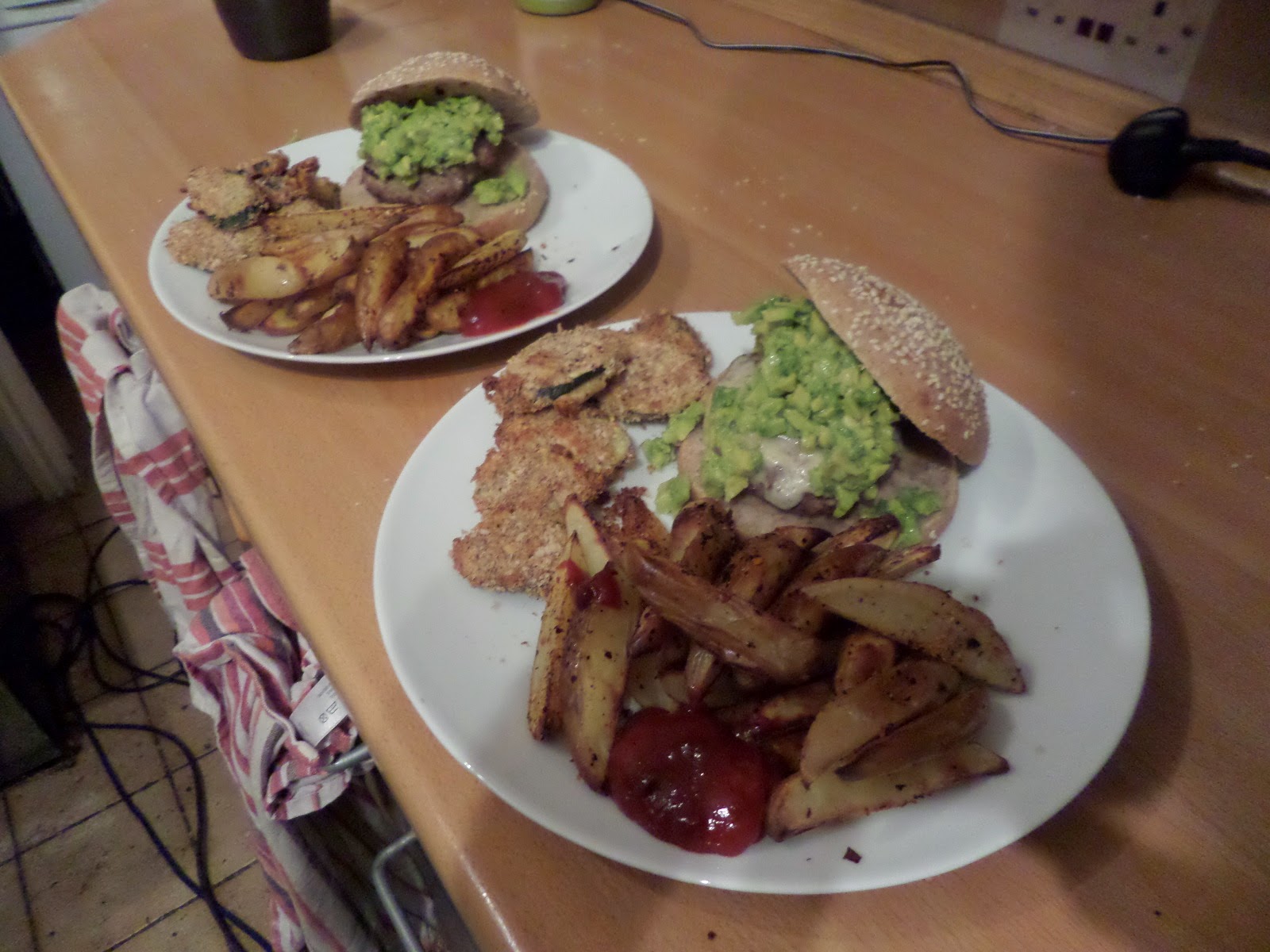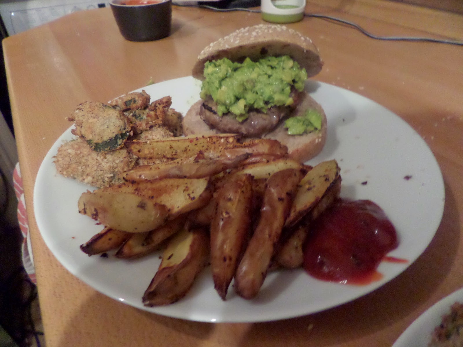 Then we added burgers, wedges, parmesan courgette slices, guacamole & chipotle ketchup.