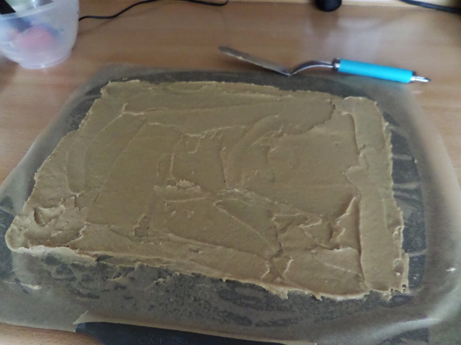 Using an offset spatula spread out half the mixture on each of the parchment-lined baking trays. It should be very thin.