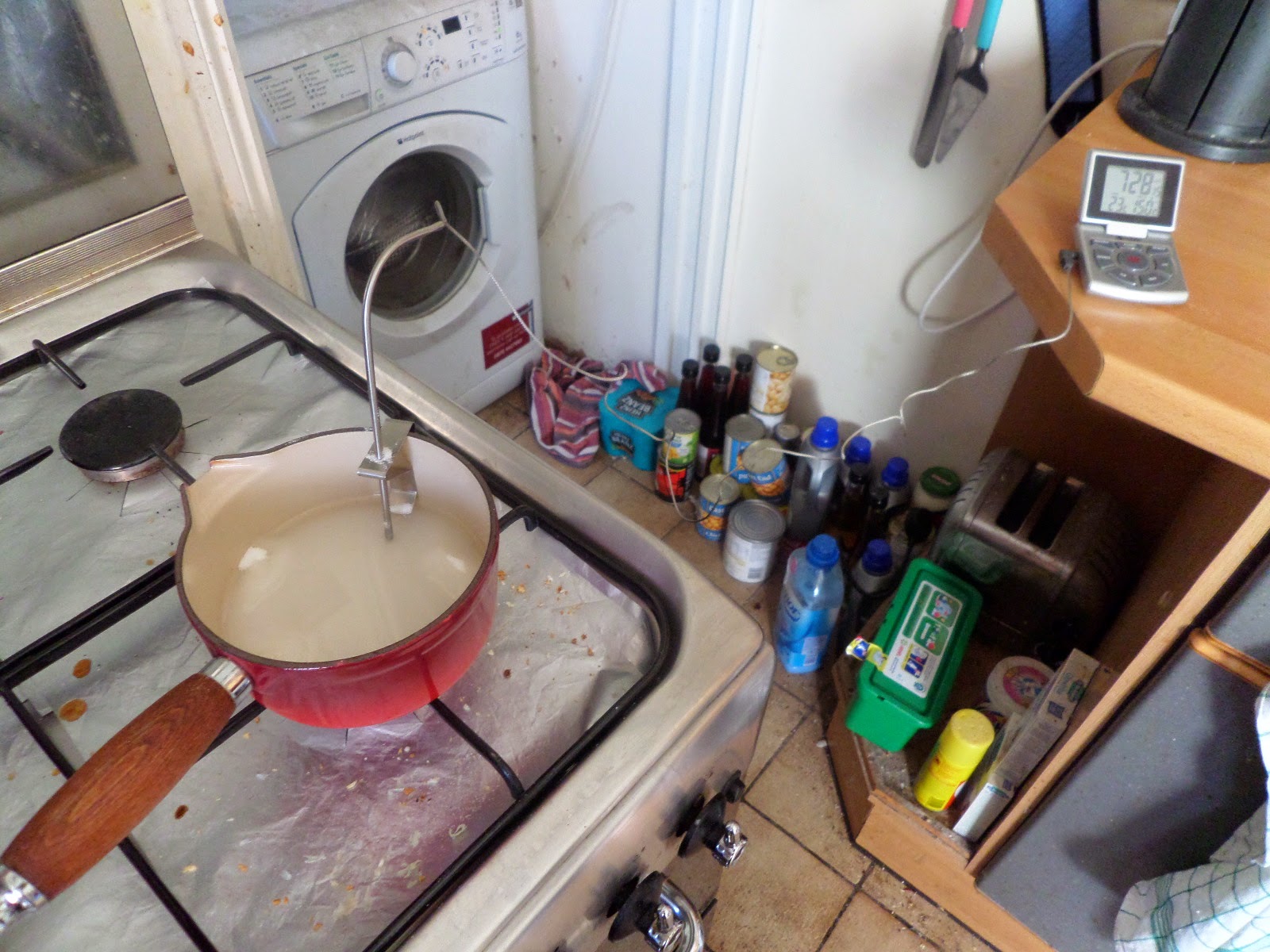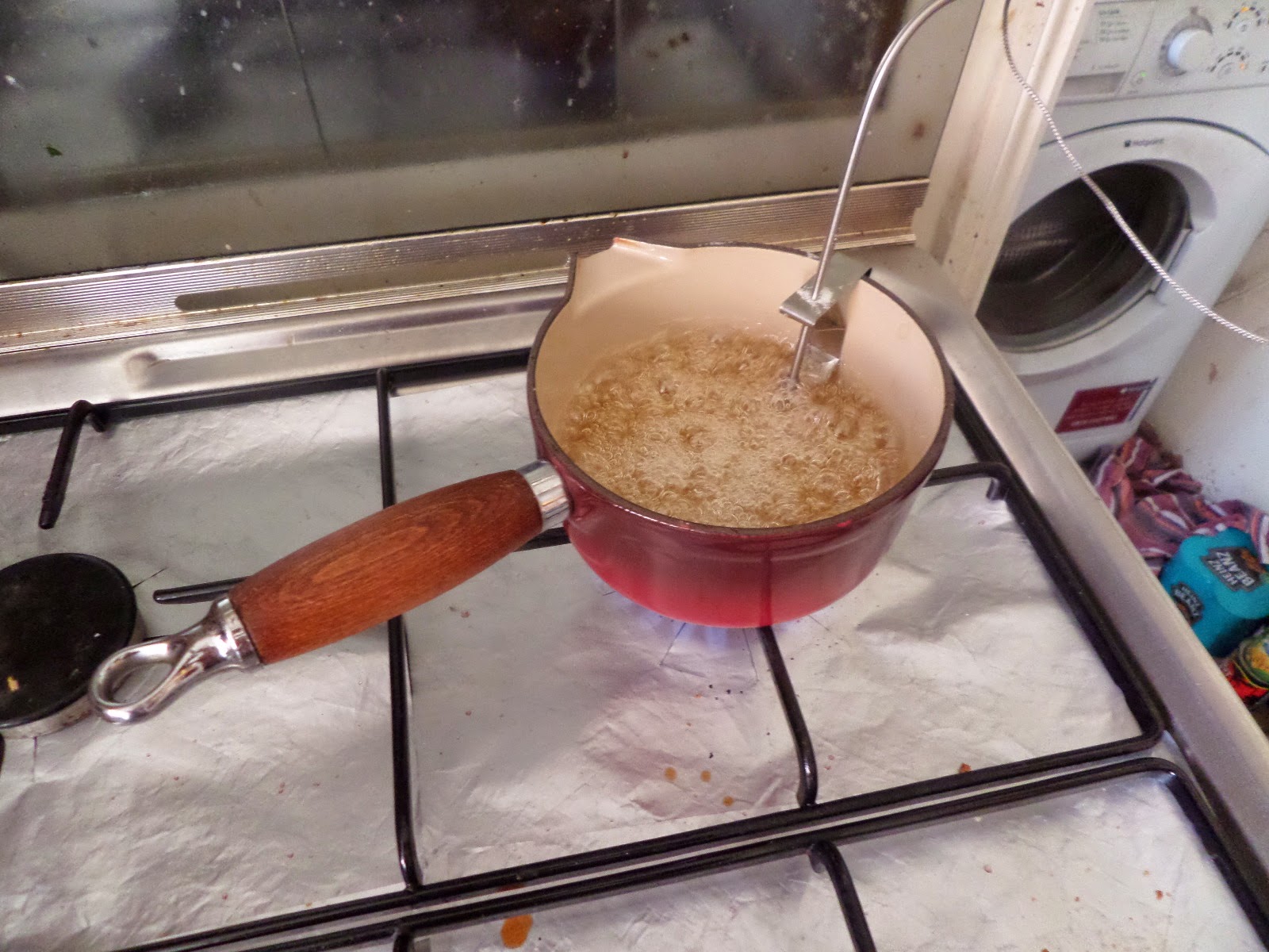 So I got all set up… then realised I’d probably need more heat than the small burner and switched to the back burned, and then fiddled endlessly with the probe to make sure it was still in the right place.