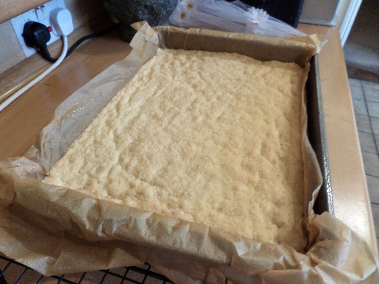 Oven to 160C fan. Sling-line a 20x30cm tin with baking parchment.